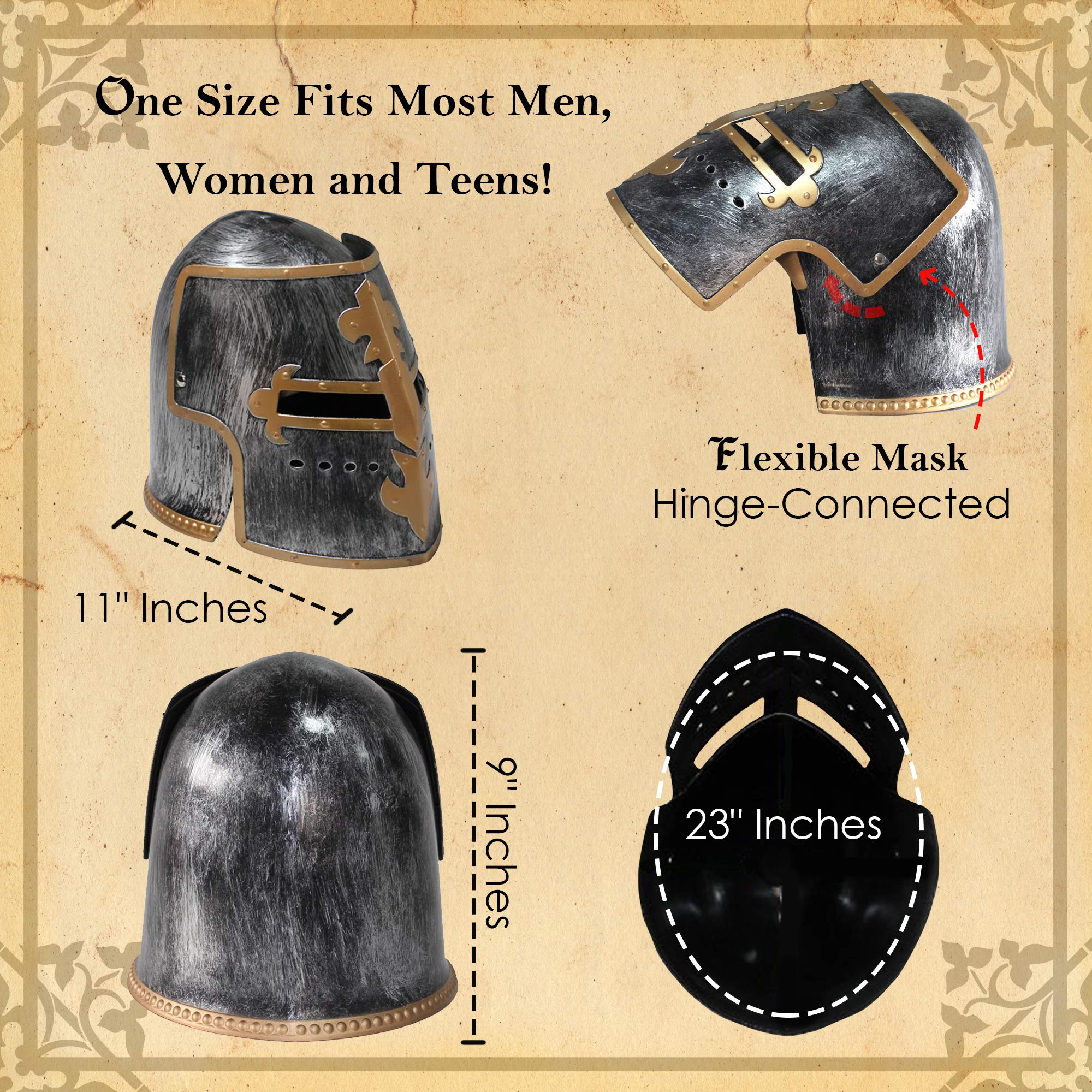 EVENT-READY STYLE: Whether for Halloween, cosplay conventions, Renaissance fairs, or theatrical performances, this knight helmet is a bold and striking choice to complete your warrior or knight costume ensemble.