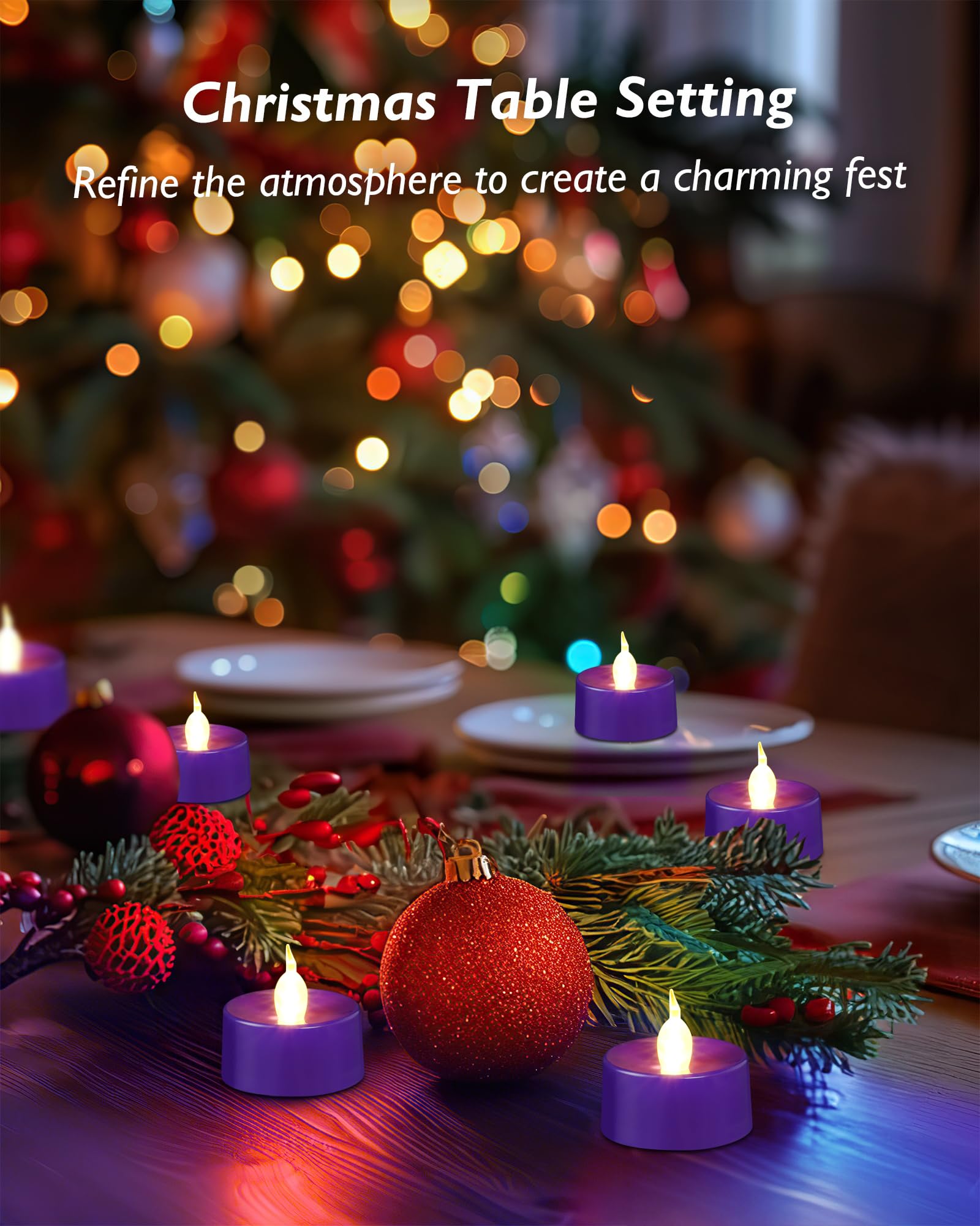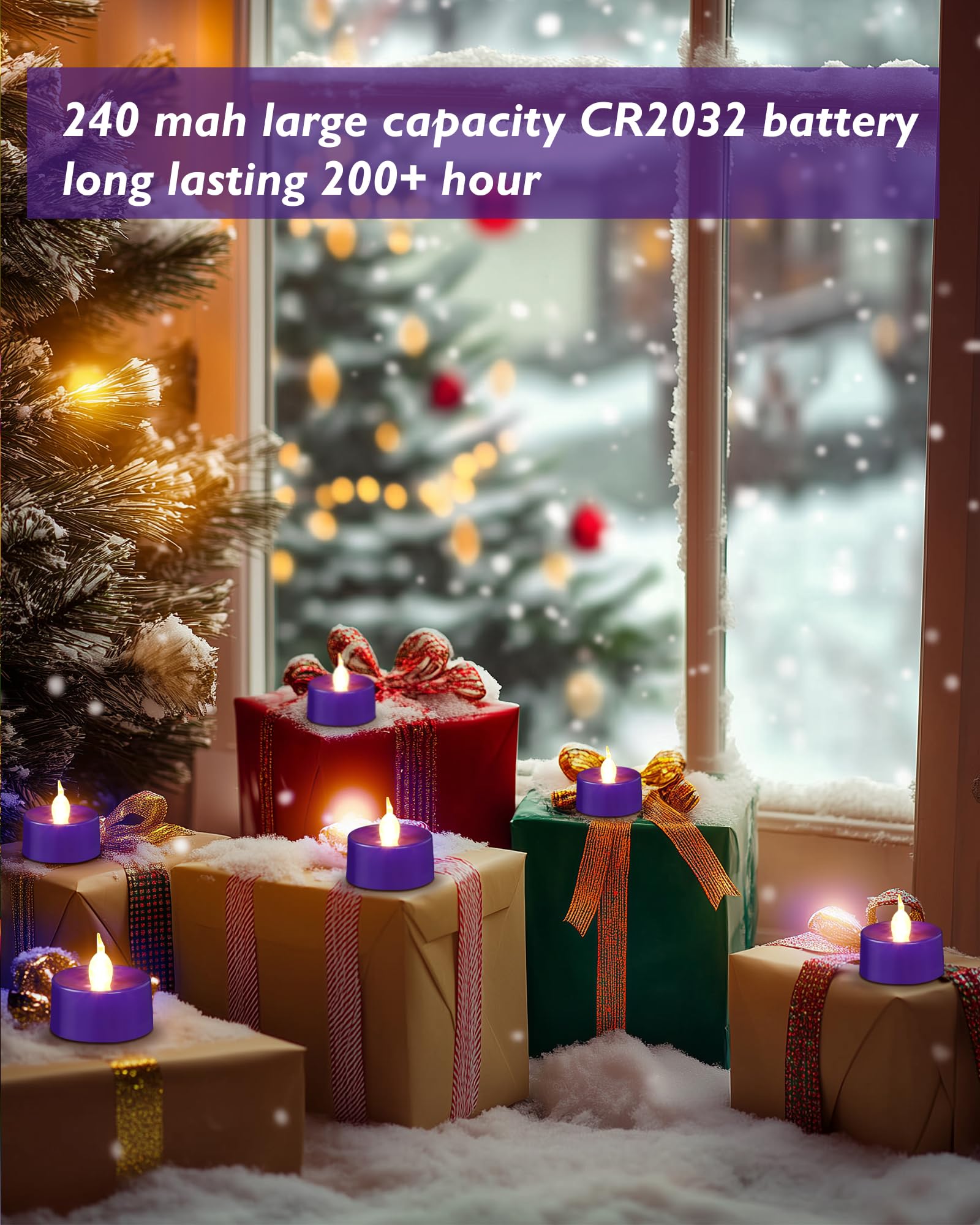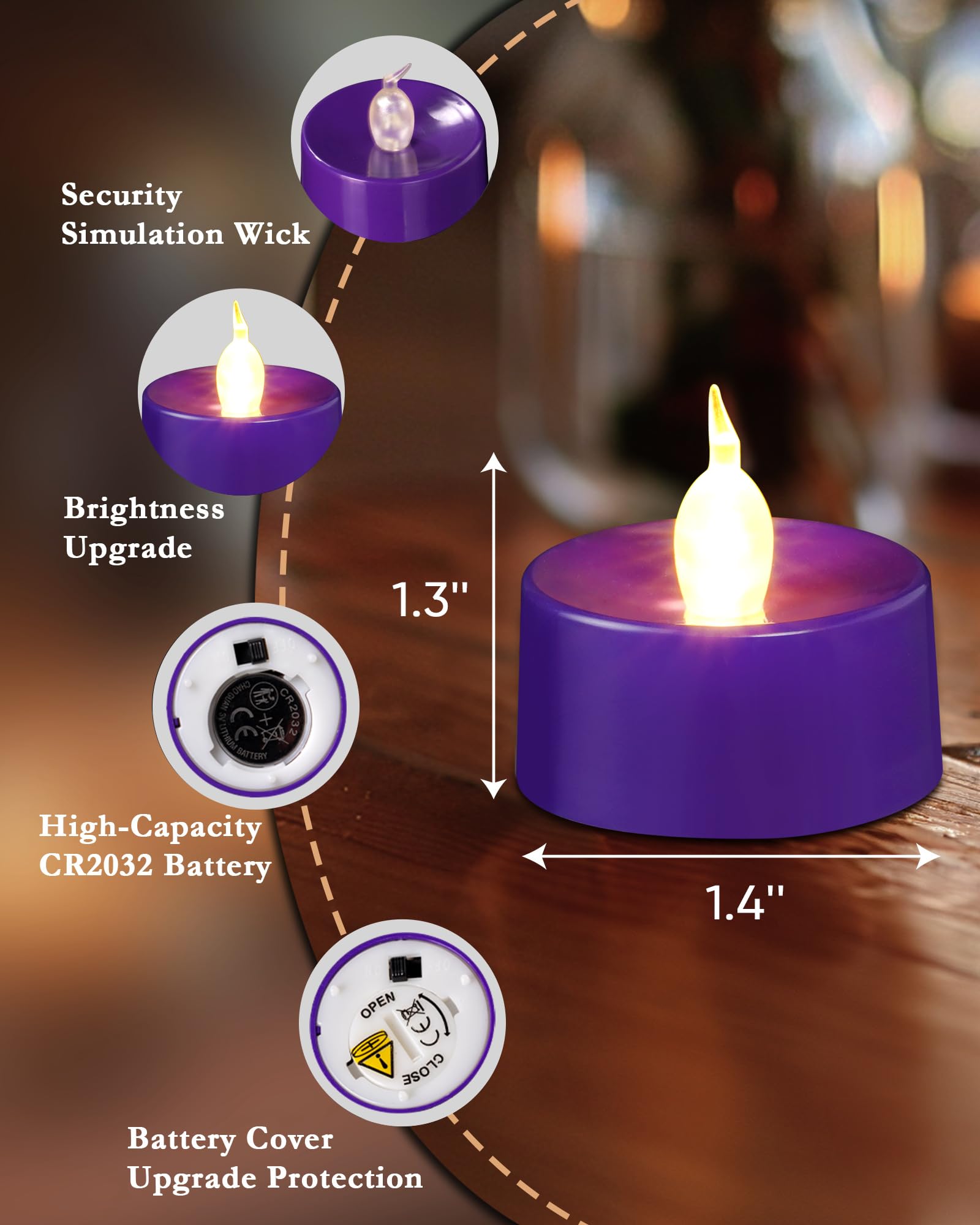 Capture The Magic of Festival: 24 Pack Purple candles create a vintage or mysterious atmosphere, ideal for holidays, purple-themed parties, and gothic weddings; And the bottom ON OFF upgrade, smooth switch, without worrying about being stuck
