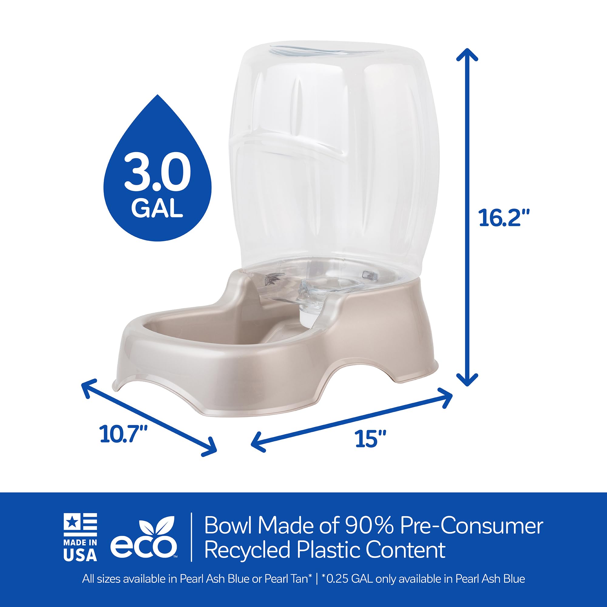 Petmate's Pet Cafe Waterer is suitable for both dogs and cats, accommodating larger breeds or multi-pet households with its 3-gallon capacity, designed to provide a longlasting supply of fresh water. This gravity water bowl for dogs accommodates pets of all sizes, holding up to 3 gallons to suit larger breeds or multi-pet households. The automatic cat water dispenser efficiently refills itself, minimizing the need for frequent refills, making it ideal for pet parents with a busy lifestyle. Its spill-free dog water bowl design features easy-grab cutouts, allowing for effortless lifting without spills, and a wide-mouth bottle that provides easy hand-washing. The pet water dispenser adds a touch of convenience to pet care, while. Choose Petmate's Pet Cafe Waterer for an efficient automatic water dispenser for dogs or an innovative cat waterer for your beloved pets.