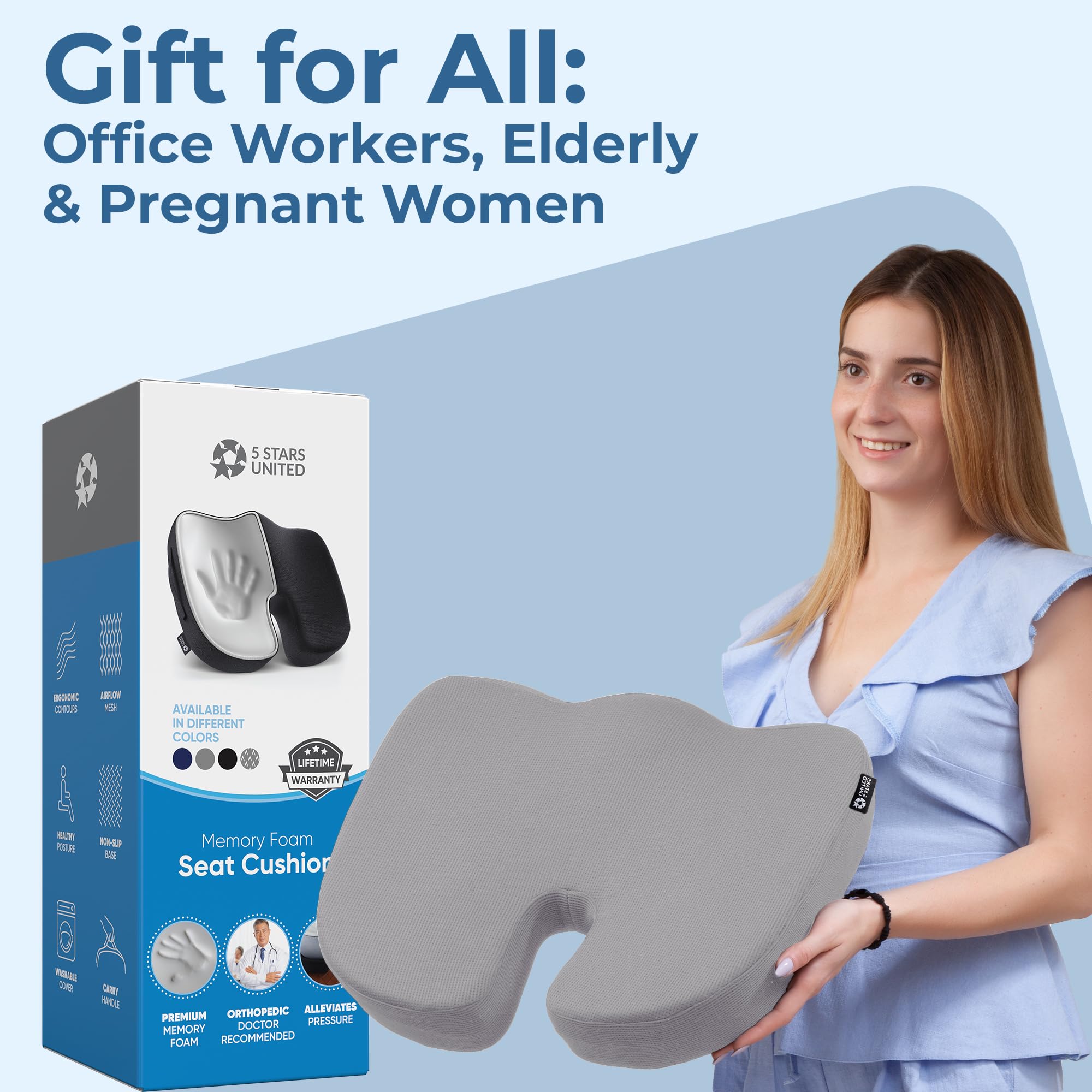 𝗙𝗶𝗿𝗺 & 𝗦𝘂𝗽𝗽𝗼𝗿𝘁𝗶𝘃𝗲: The orthopedic seat cushion should be firm enough. Our office chair cushion is a perfect mix of firmness and comfort. However, please allow yourself 1-3 weeks to adapt to a new feeling while sitting. Stay healthy with 5 Stars United sciatica pillow for sitting