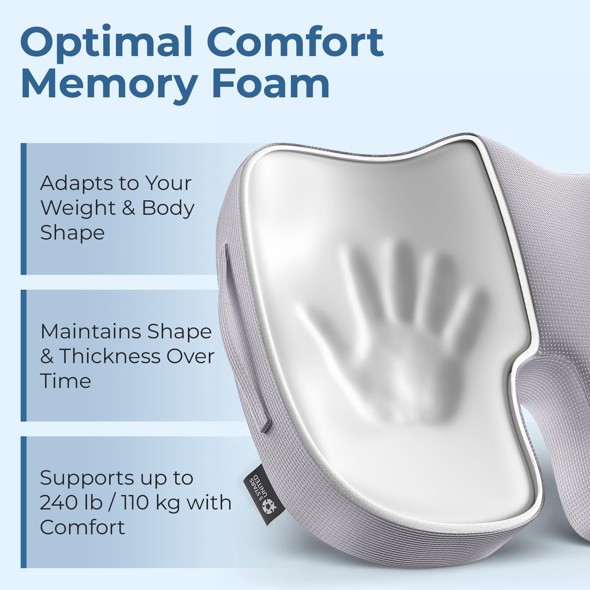 𝗪𝗼𝗿𝗸𝘀 𝘄𝗶𝘁𝗵 𝗔𝗻𝘆 𝗖𝗵𝗮𝗶𝗿 - This ergonomic seat cushion nicely fits most office chairs and school chairs. U-shaped contoured design rests your tailbone, avoiding compression. This pillow is also a good option to consider, if you move around a lot. Take it in your car, on a plane or a train. Great for office use, frequent travelers, sporting events. This cushion will help to reduce neck, shoulder, and low back pain. Perfect alternative to donut and hemorrhoid pillows. Best for Adults 150 - 220 lbs
