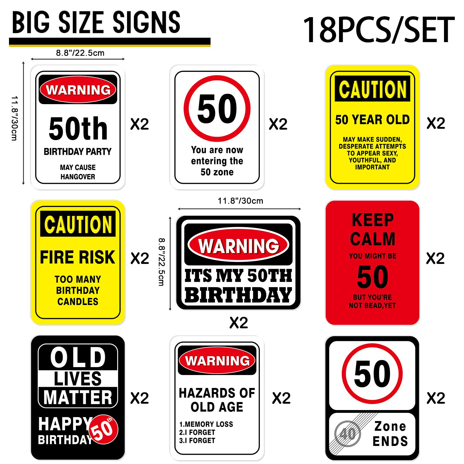 WERNNSAI 50th Birthday Party Decorations for Adults- 18PCS Wall Signs Happy Birthday Tags 50 Year Old Party Decor Caution Logos on Door Windows Yard Garden Banner Party Supplies Picture Props for Men/Women