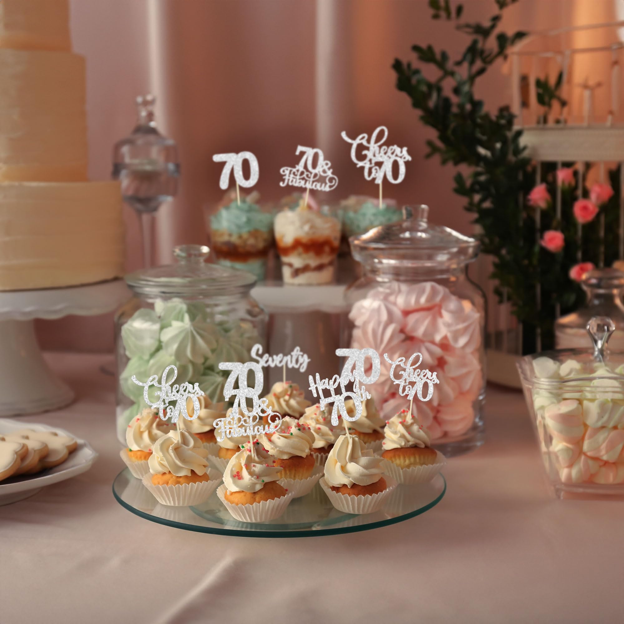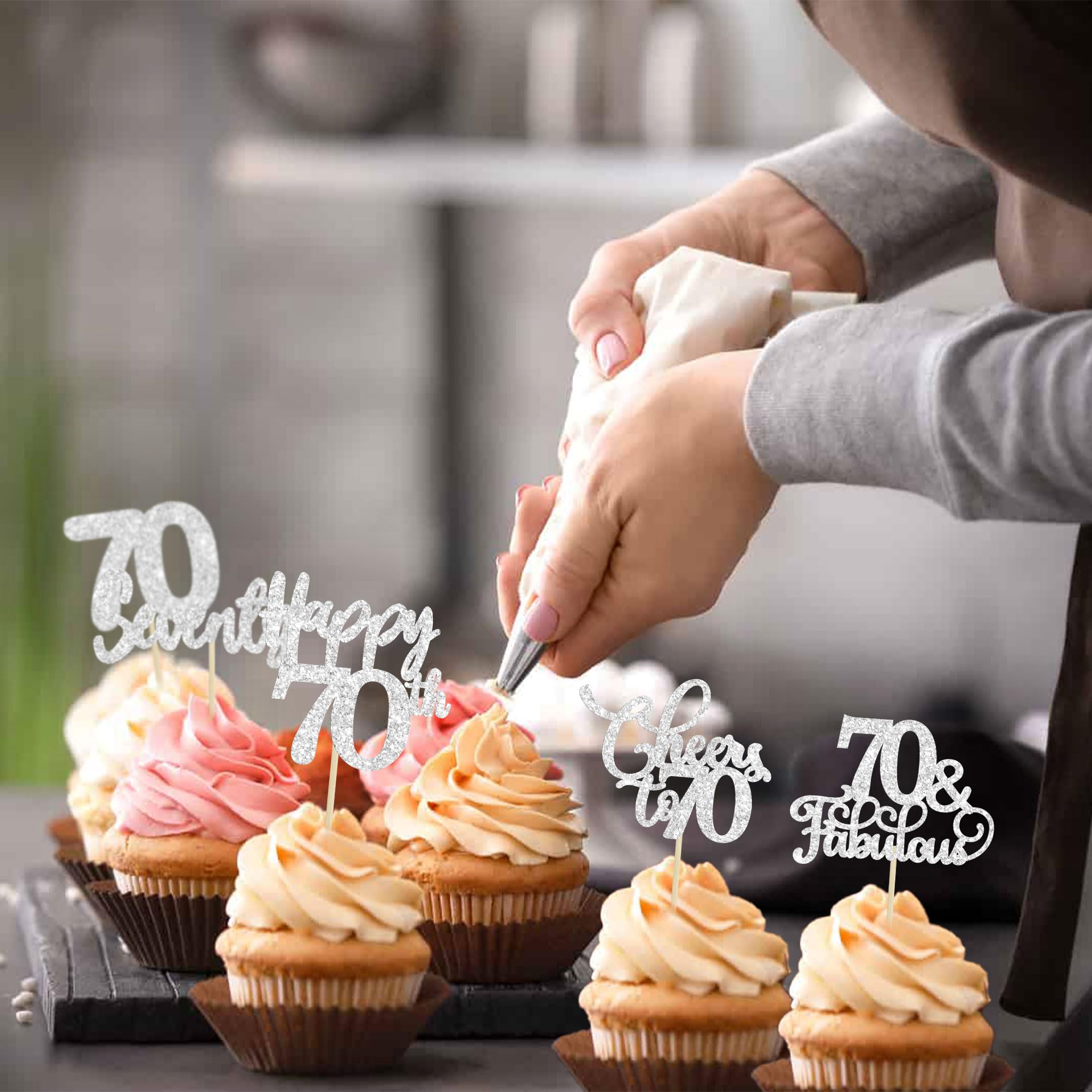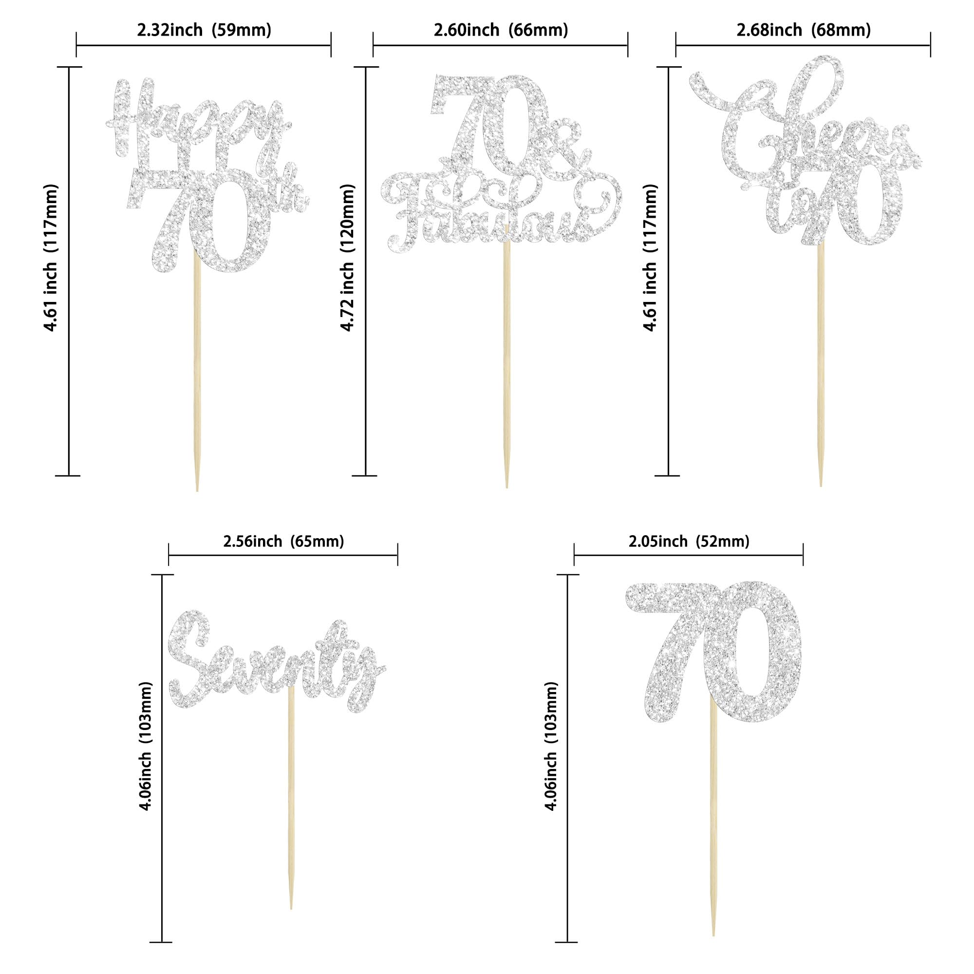 💖【100% Satisfaction Guarantee】Super value suit cupcake toppers for you, just take them to decorate your 70th Birthday theme party! Our highest priority is your satisfaction. These cupcake toppers are not and intended for decoration only, please do not use it in the oven or microwave.