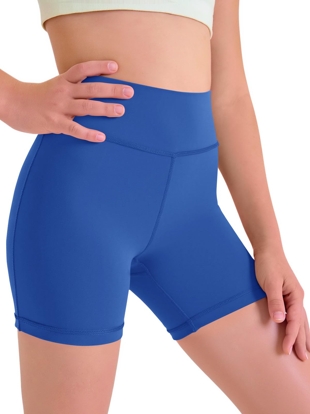 Elastic Waistband: The elastic high-waisted design provides additional coverage around the waist and lower abdomen, offering support during movements and reduces girls bike shorts slipping down. The rigorous knit fabric ensures durability and non see through