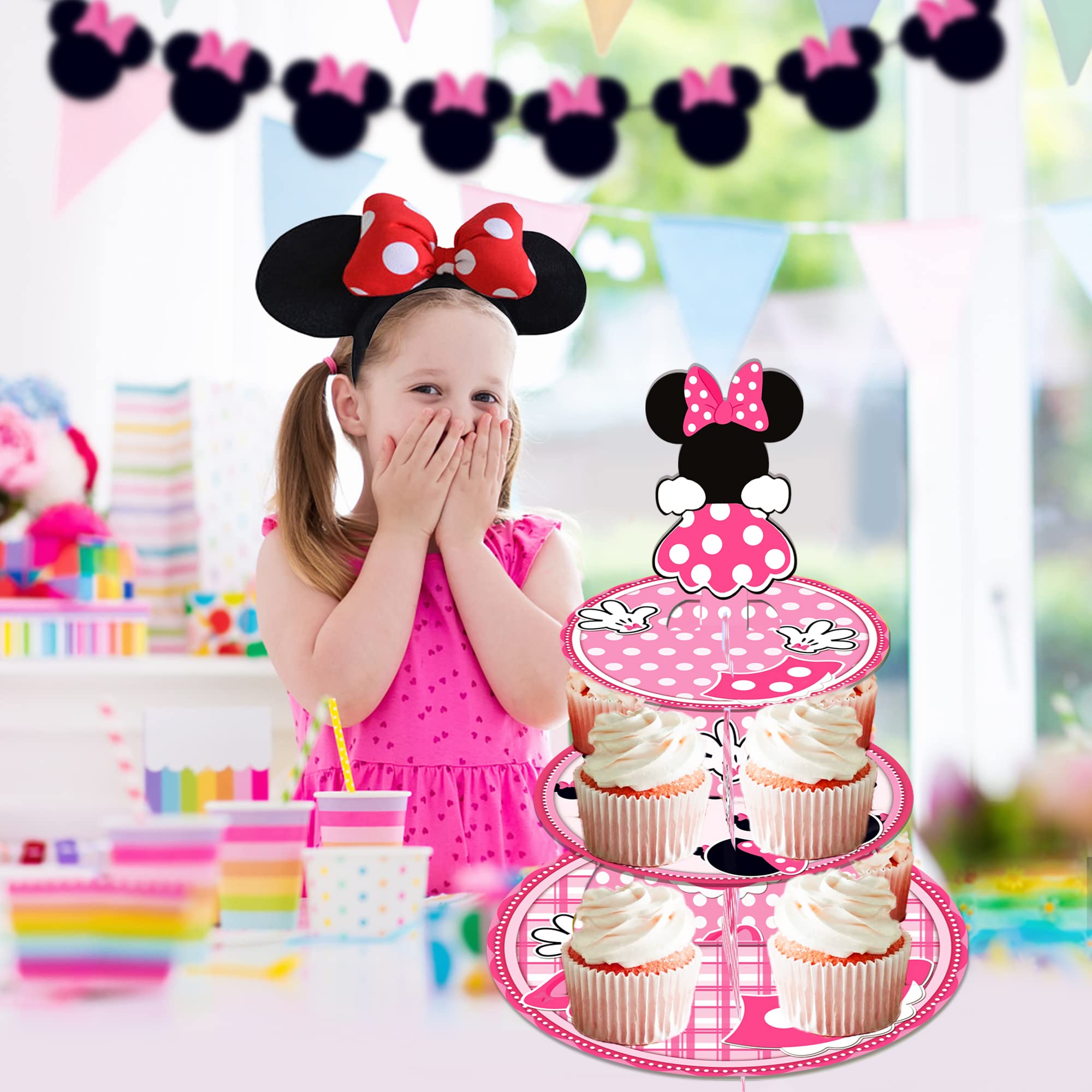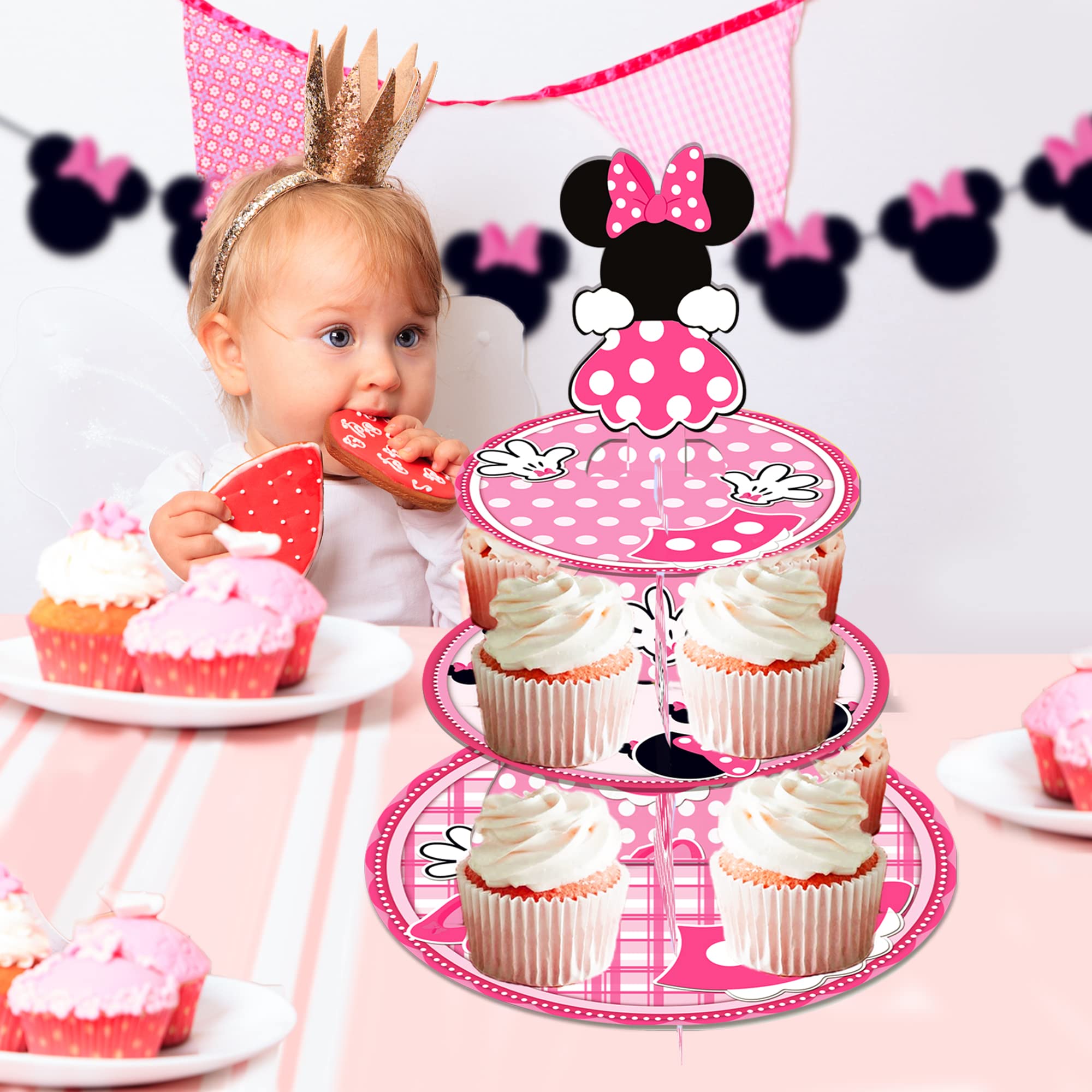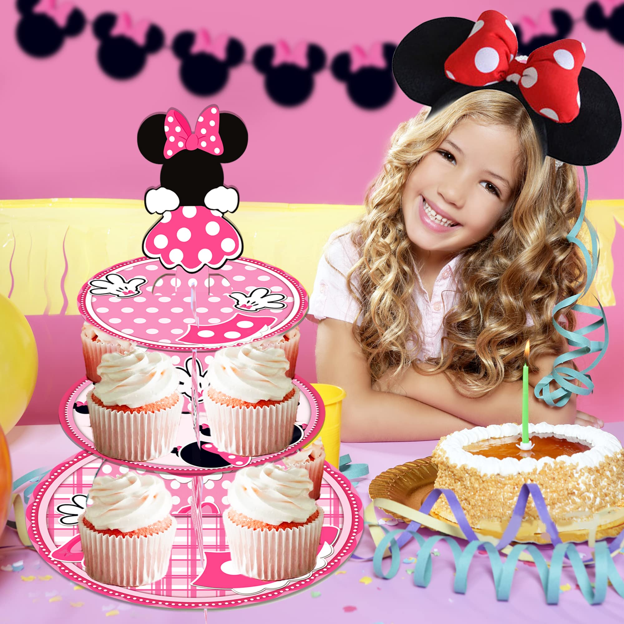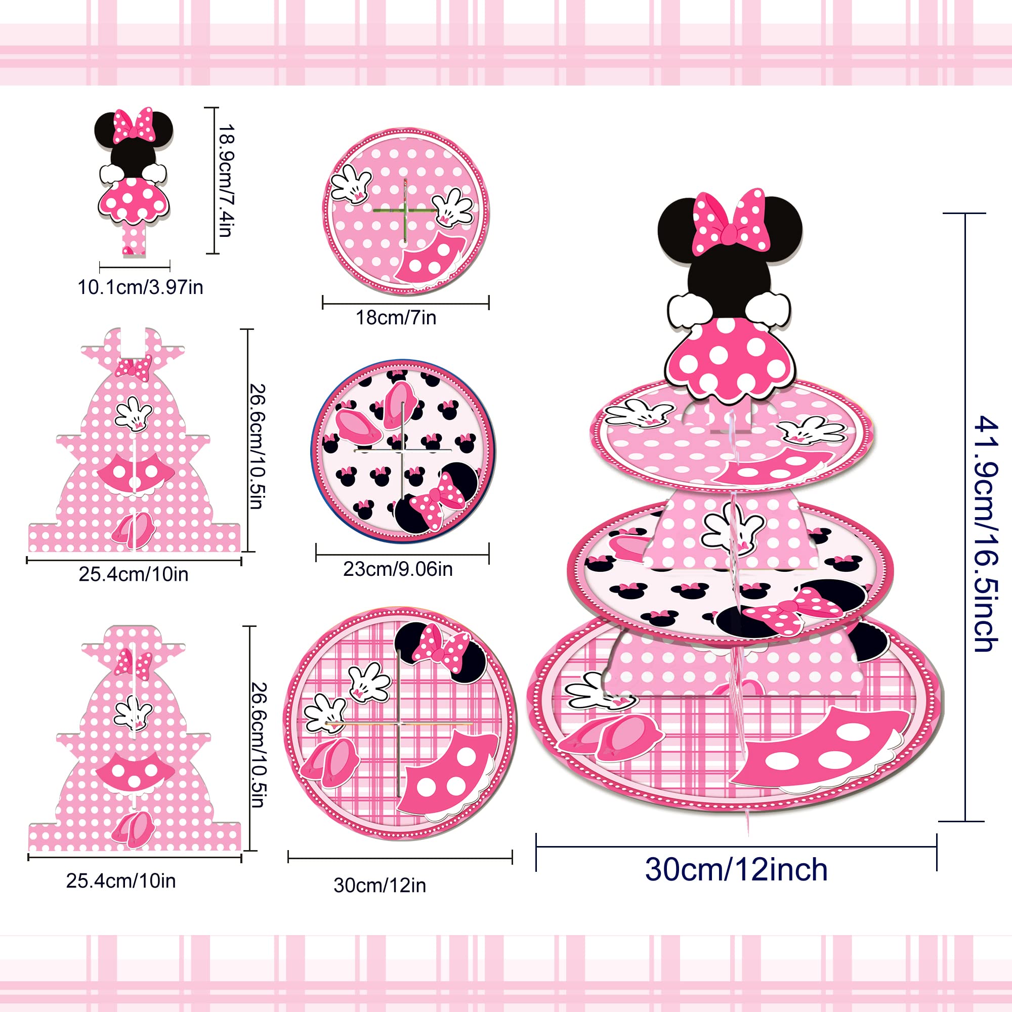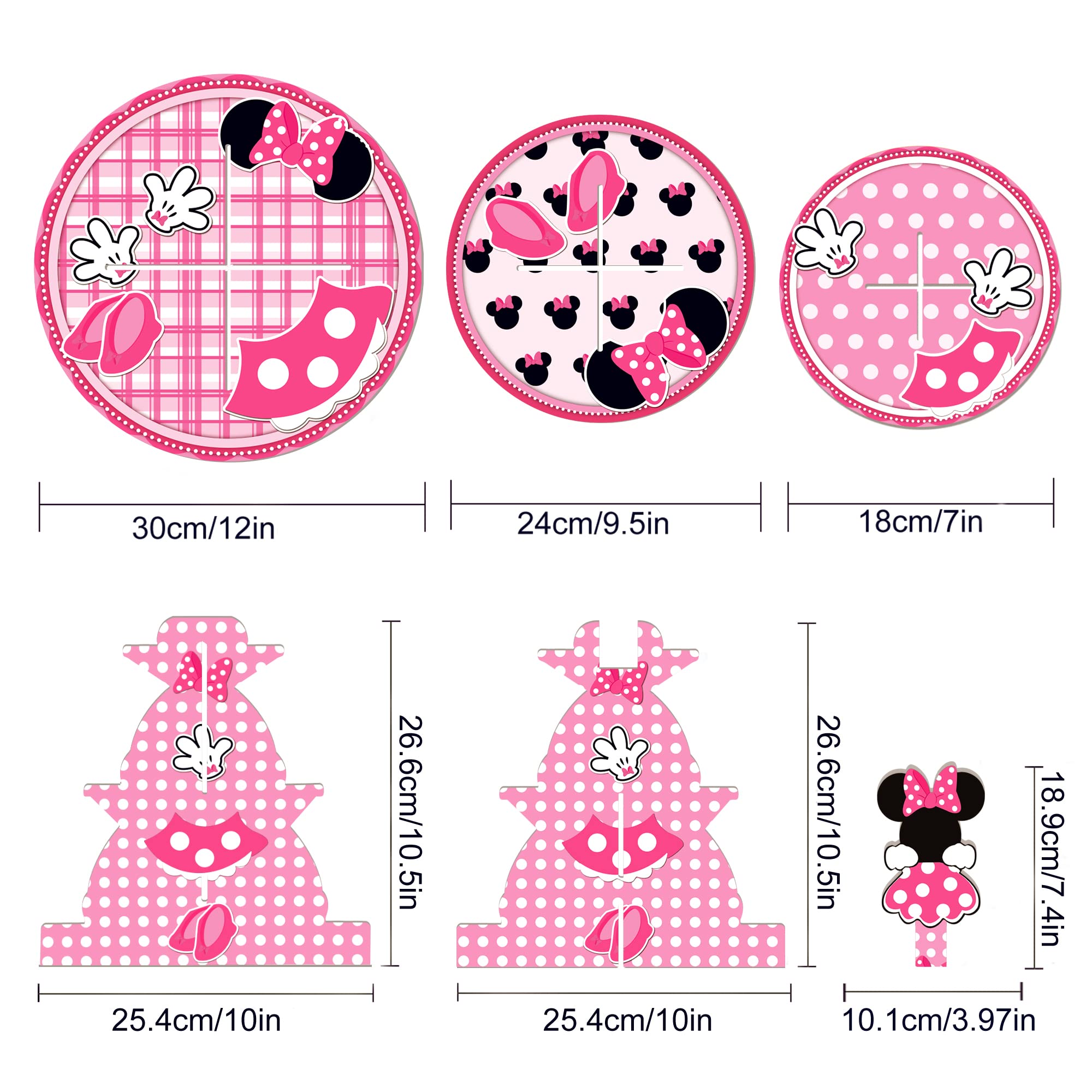2.Unique design:Perfect for your birthday parties and Pink Minnie themed party decorations, this cake stand designed by Adorable Pink Minnie themed elements is sure to impress your guests.