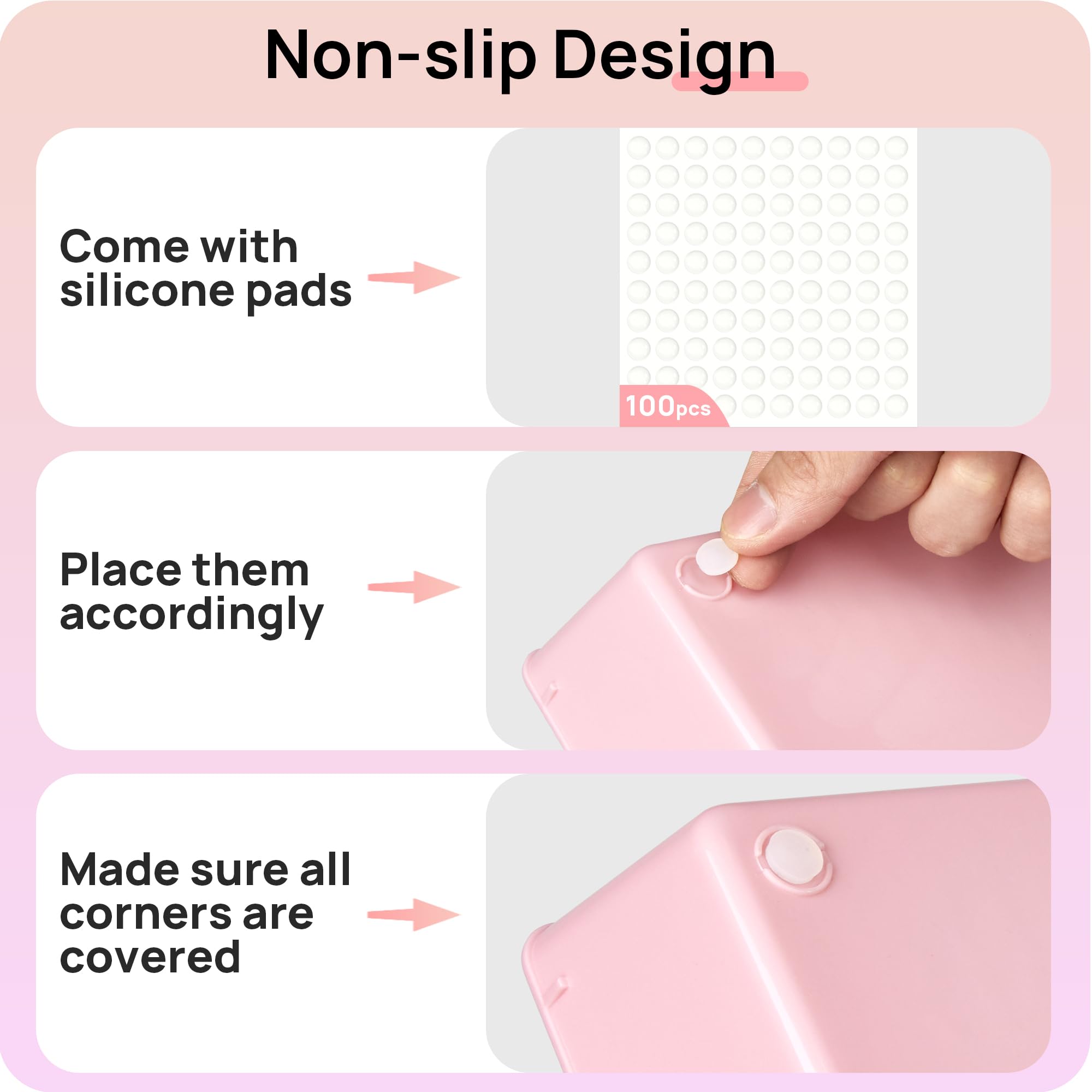 【Non-Slip and Durable】Extra 200pcs silicone pads are included, just stick them on the bottom of the plastic trays for non-slip. Made of durable and clear plastic, so you can see what’s in it without digging around or making a mess, help you get a neat lifestyle.