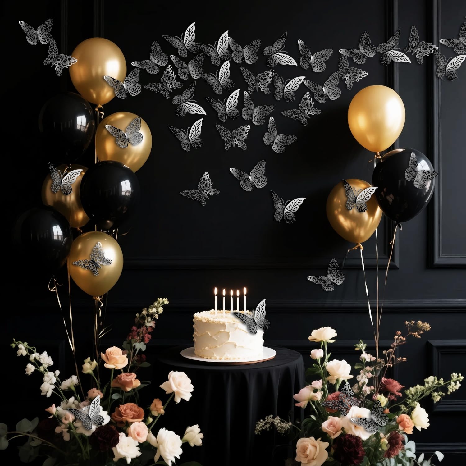 What You Get - 48pcs new design metallic butterfly decors in 4 styles. Each style has 3 sizes in 12cm (4.72) of large, 10cm (3.93”) of medium and 8cm (3.15”) of small, and every size have 4 pieces. The package also contains 48 pieces of removable double-sided adhesive.
