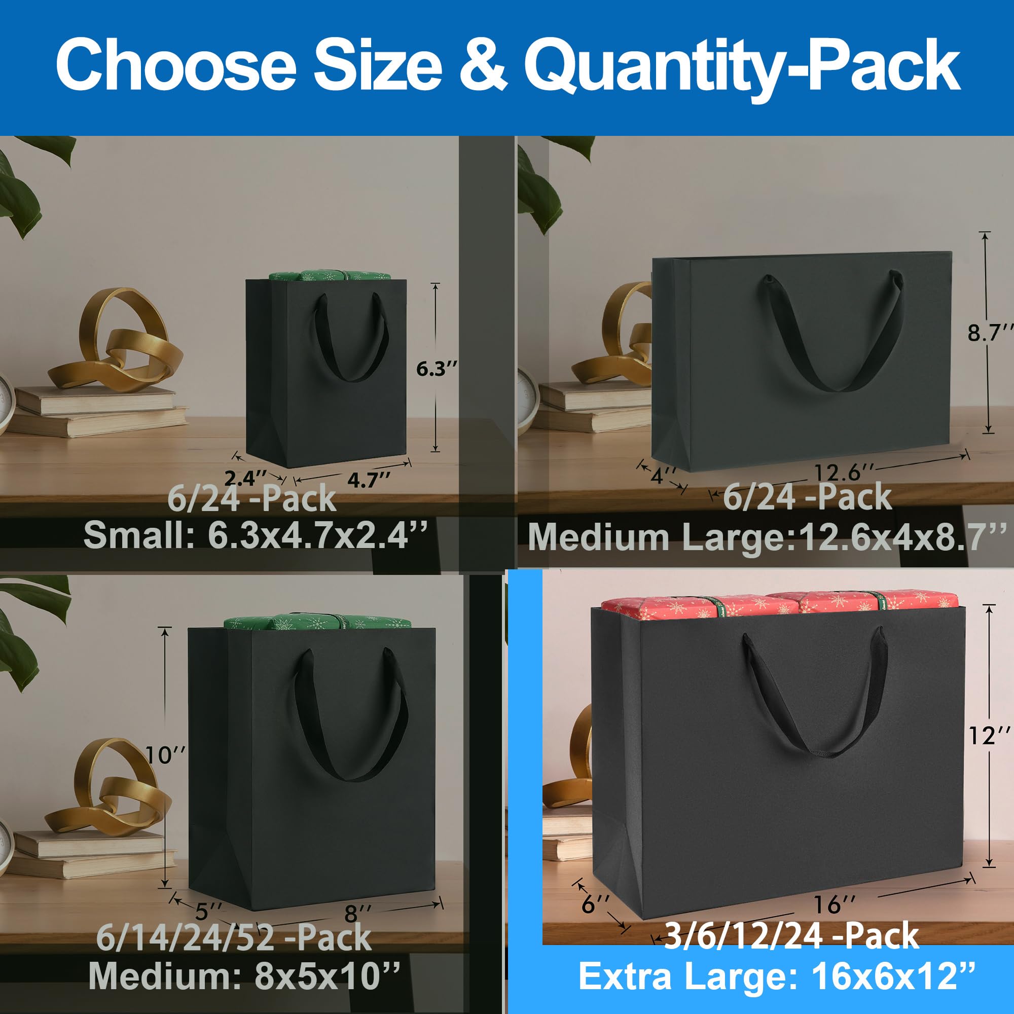 Argivean Black Gift Bags Extra Large: 12pcs 16x6x12 Inch Gift Bags With Handles For Wedding Party Birthday Business