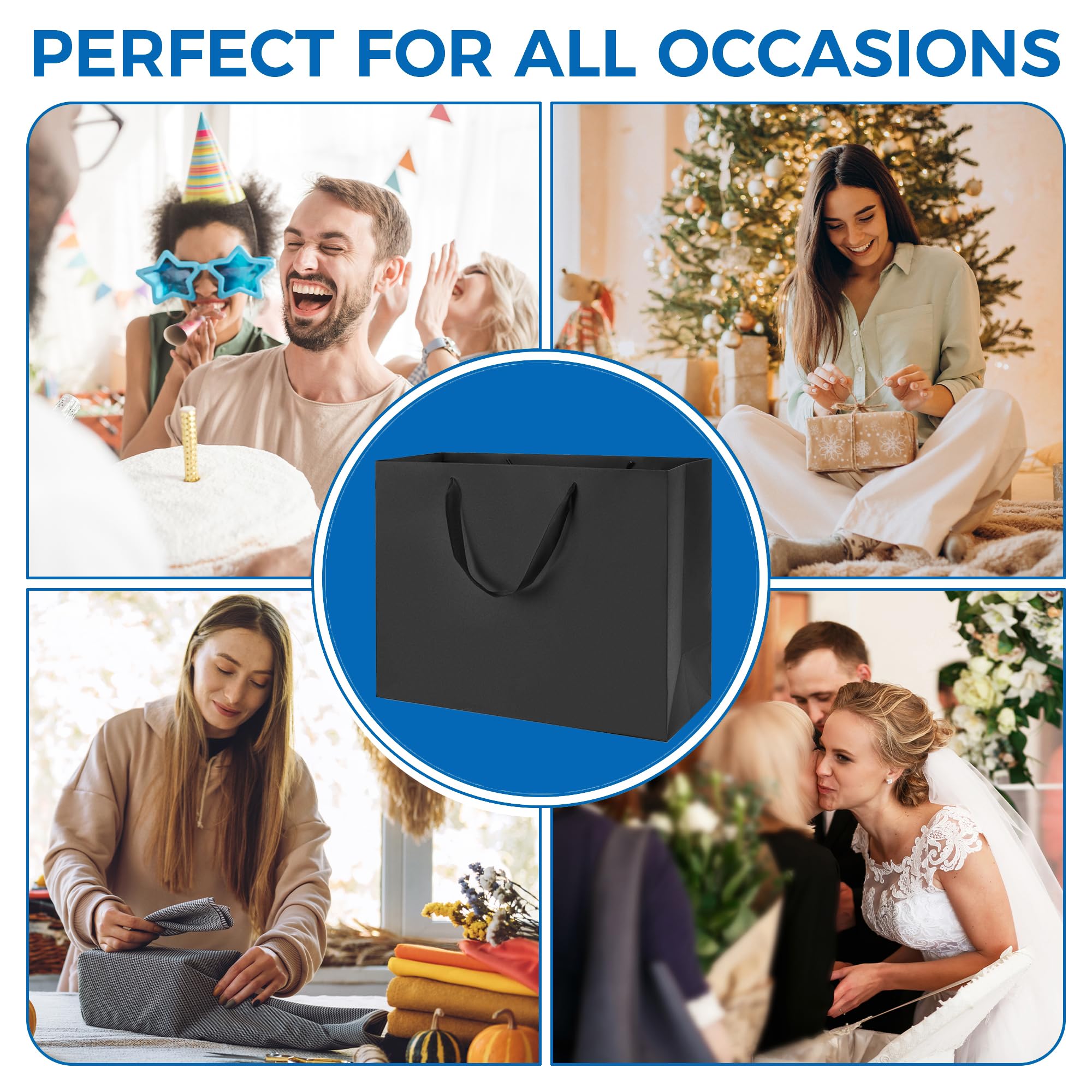 Perfect for Any Occasion: Black gift bags are good ideal for weddings, birthday, party, holidays, business, craft projects, retail and bridesmaid. These black gift bags with handles stylishly and conveniently meet all your gifting requirements.