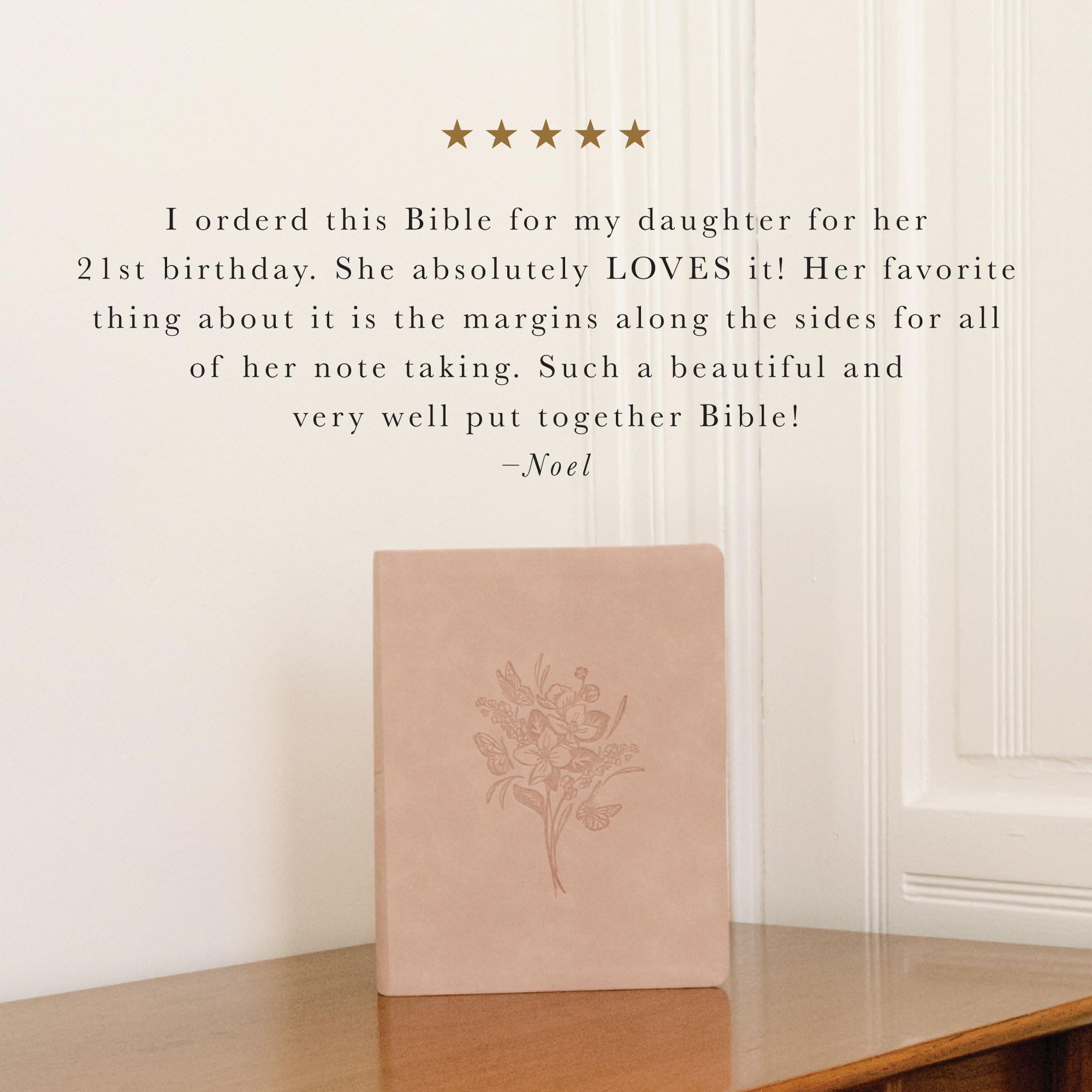Hosanna Revival offers beautifully designed Bibles, notebooks, and other faith-based paper goods that make engaging with Scripture easier and more meaningful. Our soft and delicate suede Shiloh Bible is inspired by the town of Shiloh in the state of Georgia, where the neighboring Callaway Gardens house the beautiful Cecil B. Day Butterfly Center. In the same way that butterflies undergo an intricate transformation to reach their full beauty, we pray that this Bible works in your heart to transform you from the inside out. The back features this beautiful verse from Matthew 11:28: “Come unto me, all ye that labor and are heavy laden, and I will give you rest.” Product Details: Translation: King James Version Format: Leather-like, softcover with lined notetaking margins Cream-colored Bible paper Two satin ribbon markers Smyth-sewn binding Jesus's words in red Font size: 9.5pt Page count: 1,370 Dimensions: 9.75” x 7.75” x 1.5” Weight: 47oz KING JAMES VERSION (KJV): Cherished for its poetic language and enduring legacy, the KJV offers a timeless translation trusted by generations for study, worship, and personal devotion. NOTETAKING & JOURNALING BIBLE: Wide margins throughout provide ample space for writing prayers, sermon notes, or Bible journaling reflections. PREMIUM COVER DESIGN: Features an originally hand-designed leather-like cover with a debossed floral design, combining durability with elegant beauty. PERFECT GIFT BIBLE: A meaningful keepsake for women, men, or students—ideal for birthdays, graduations, confirmations, and other faith milestones. HOSANNA REVIVAL EXCLUSIVE: Thoughtfully designed inside and out to inspire a deeper connection with Scripture and encourage daily time in God’s Word.
