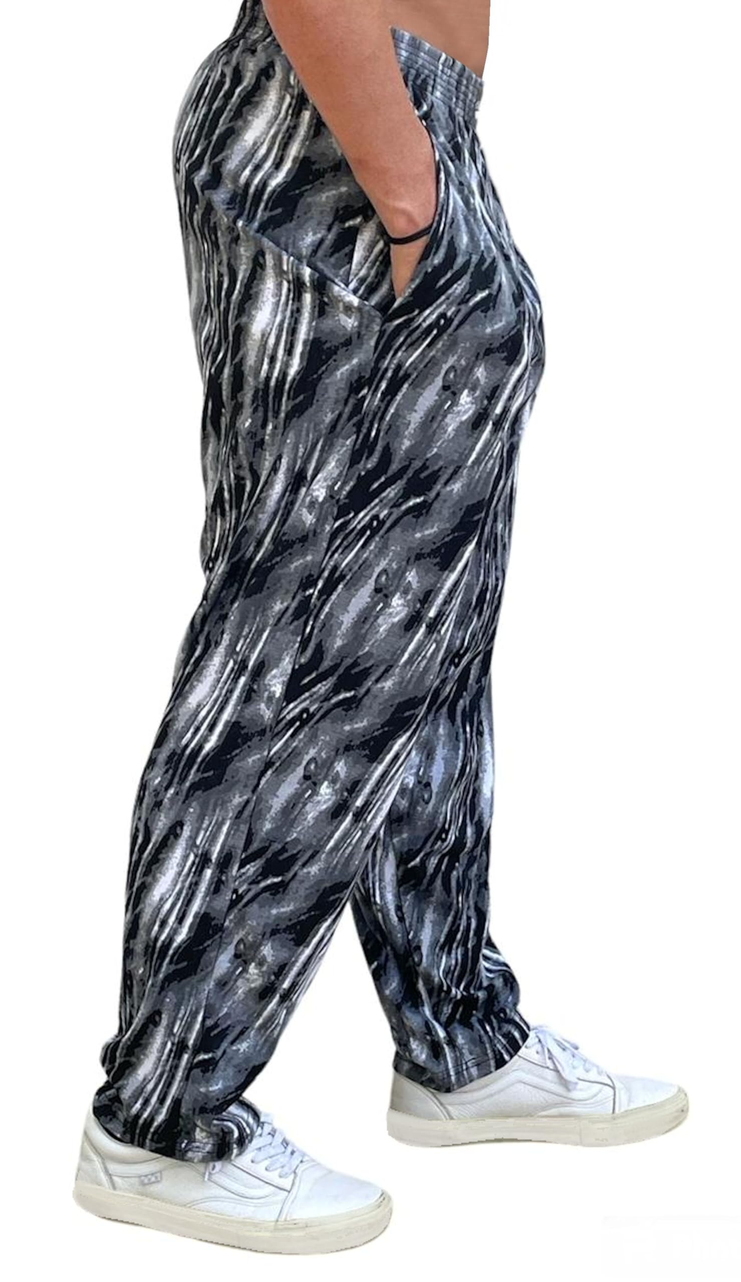 Old school comfortable relaxed fit Two inch elastic waistband. Two side front pockets tapered to the ankle. Two side seam pockets. Perfect for weightlifting and bodybuilding power lifting and muscle sports.