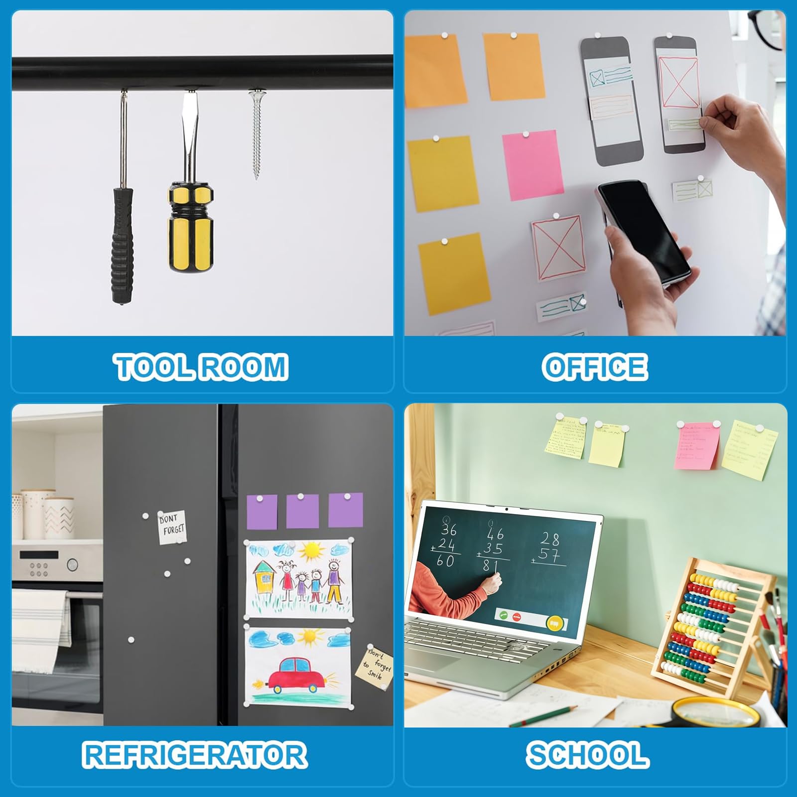 【Widely used】 Small strong magnets have strong adsorption capacity and can adsorb various items from any place with iron or steel, such as home, kitchen, office, garage, cabinet, refrigerator, etc.