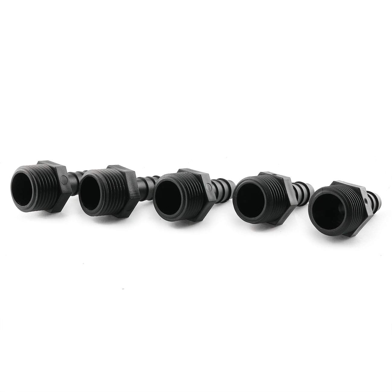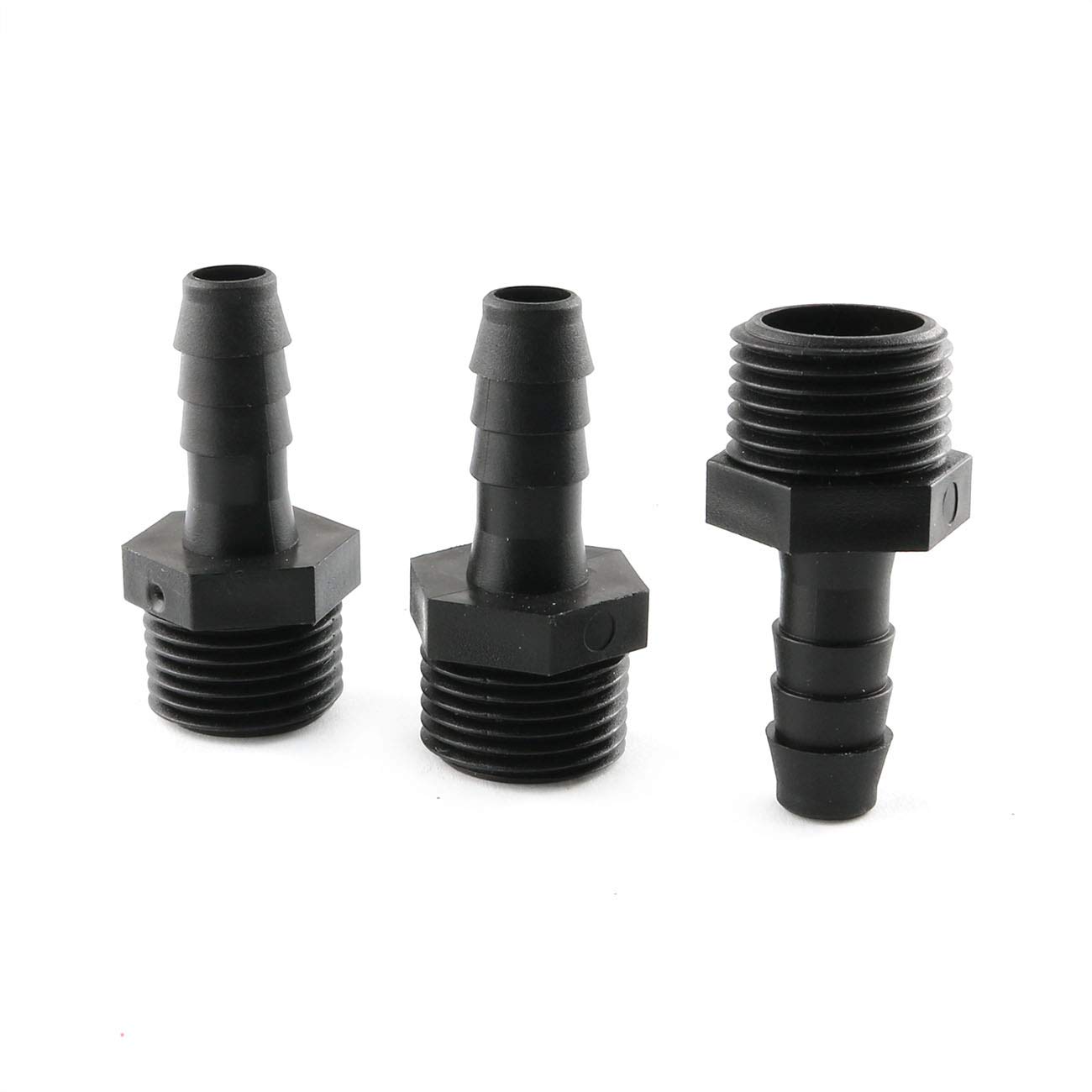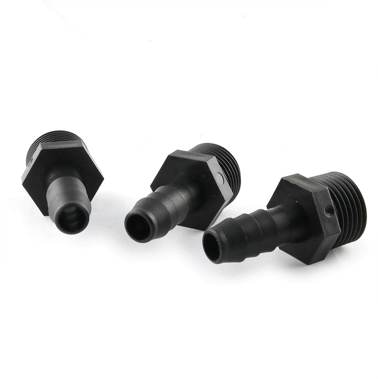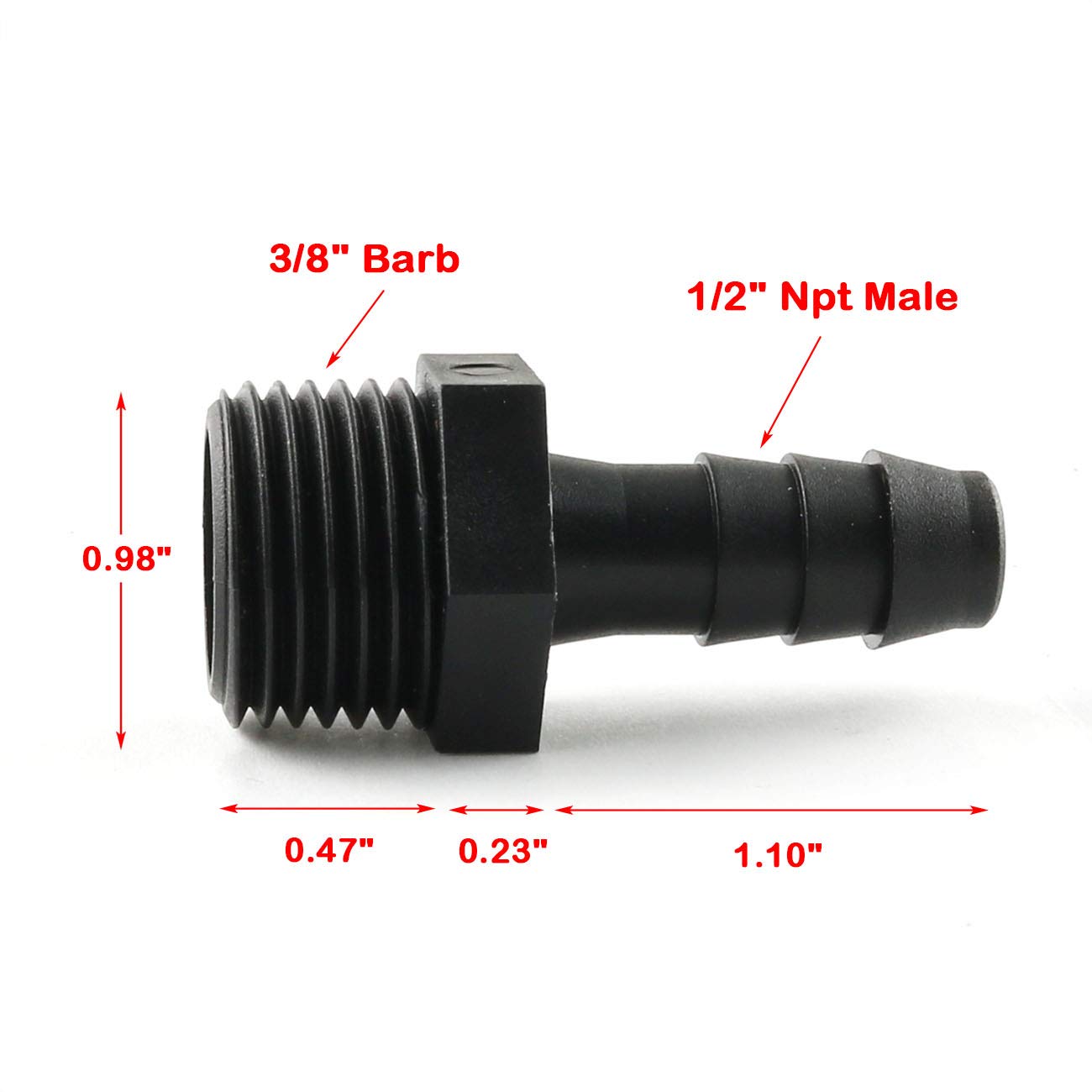 Material: plastic polypropylene. Temperature range: -4 to 248 F; maximum pressure: 100 PSI. The package includes: 5 3/8" barb x 1/2" NPT male connectors. Adapter for connecting different types of pipes or hoses. One end is connected to the hose, and the other end is connected to the NPT internal thread connection. Glass fiber reinforced polypropylene has the characteristics of rigidity, light weight, dimensional stability, heat resistance, corrosion resistance, a large number of chemicals and high impact resistance. The whole hex nut is used to tighten the joint with a wrench. The pipe can be used for water, gas, oil and fuel, especially hoses. Made of high-quality polypropylene, used to connect various pipes; corrosion-resistant.