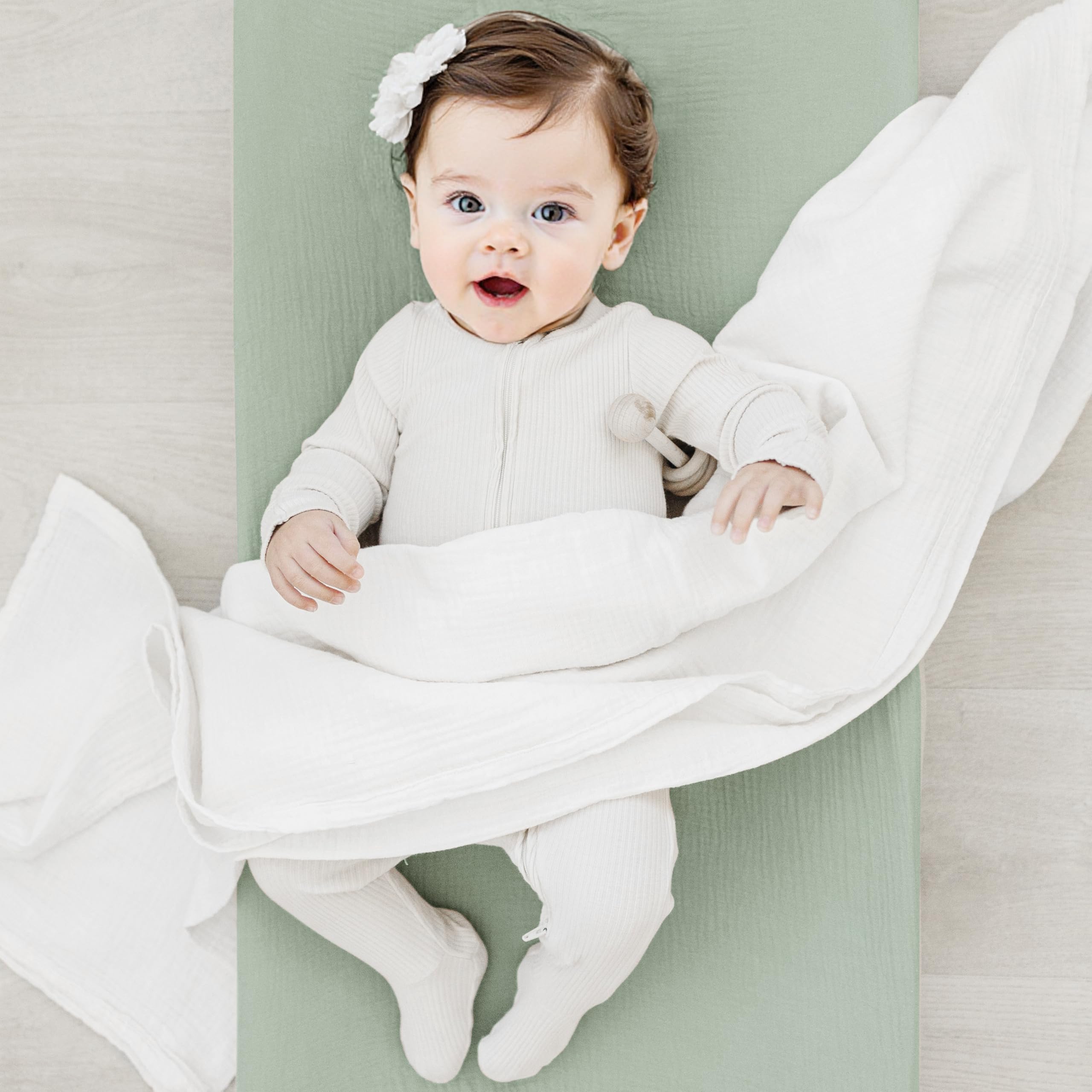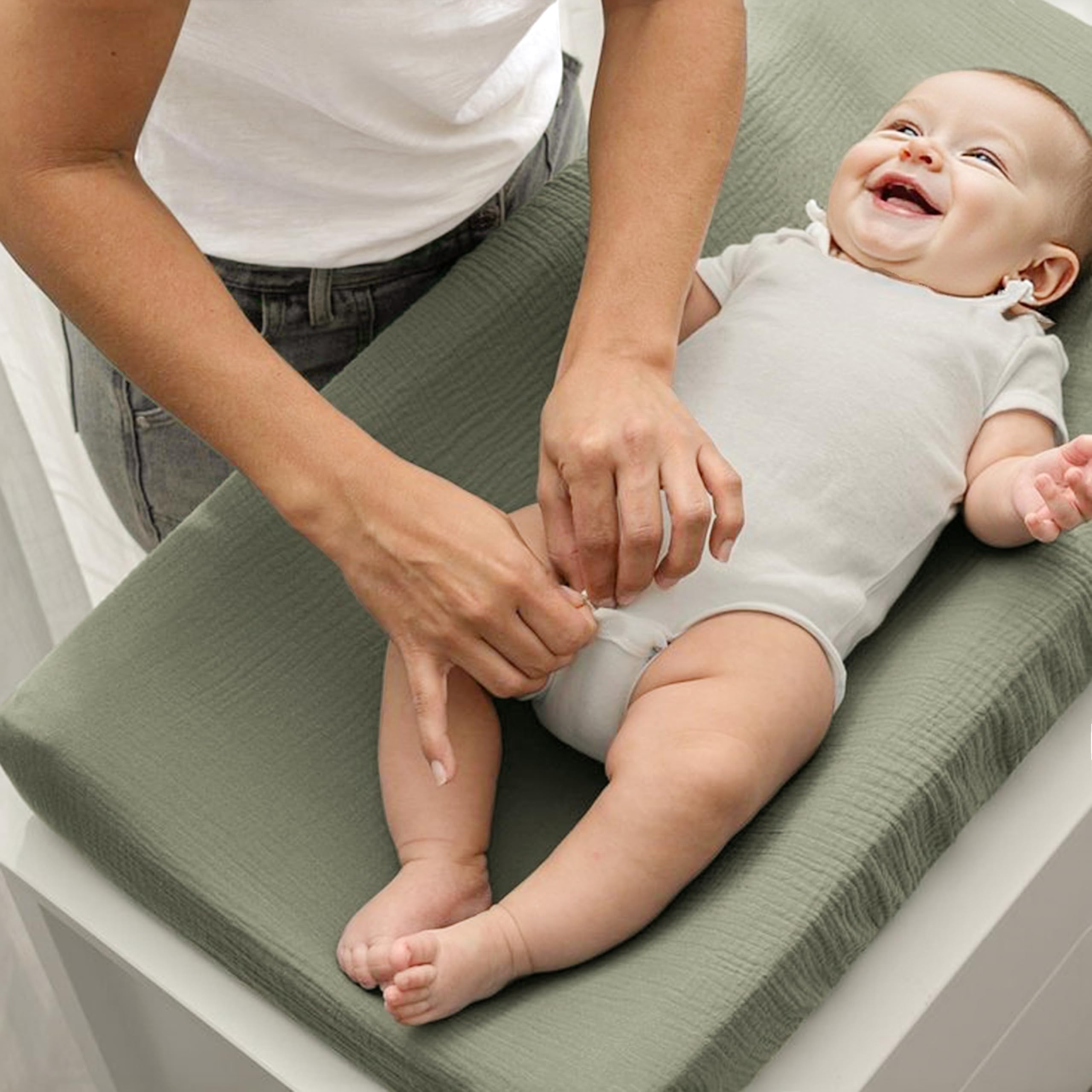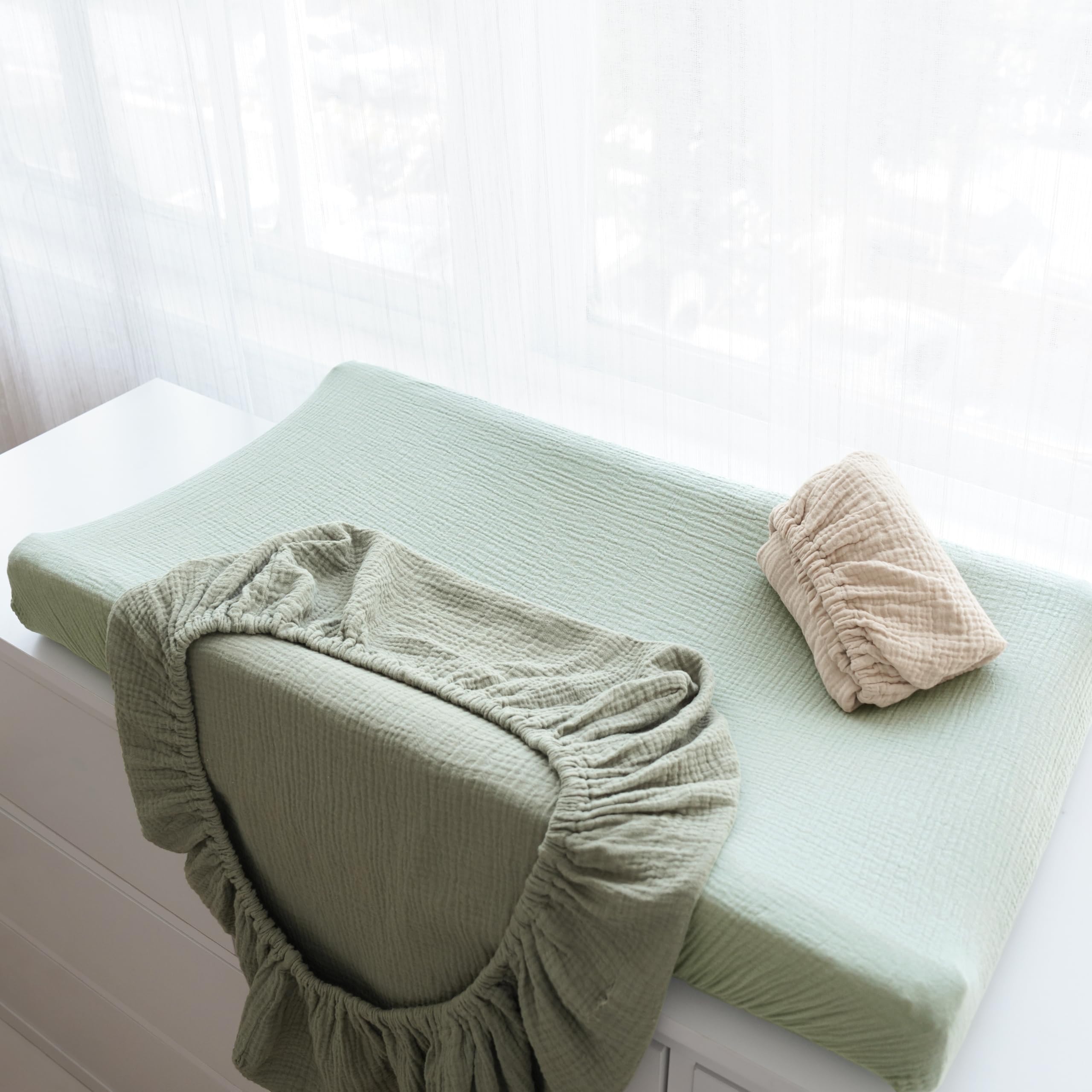 Crafted from 100% breathable muslin cotton, our changing pad covers provide the perfect combination of comfort and functionality for your baby's delicate skin. The set includes three beautifully designed covers that make diaper changes easier while complementing any nursery decor. Why Choose Our Covers? Superior Comfort: Breathable muslin keeps baby comfortable during changes Secure Fit: Elastic edges prevent slipping and bunching Stylish Designs: Neutral prints suit any nursery theme Durable Construction: Withstands frequent washing while staying soft Versatile Use: Fits most standard changing pads and bassinets Give your baby the comfort they deserve while making diaper changes easier with these premium muslin changing pad covers.
