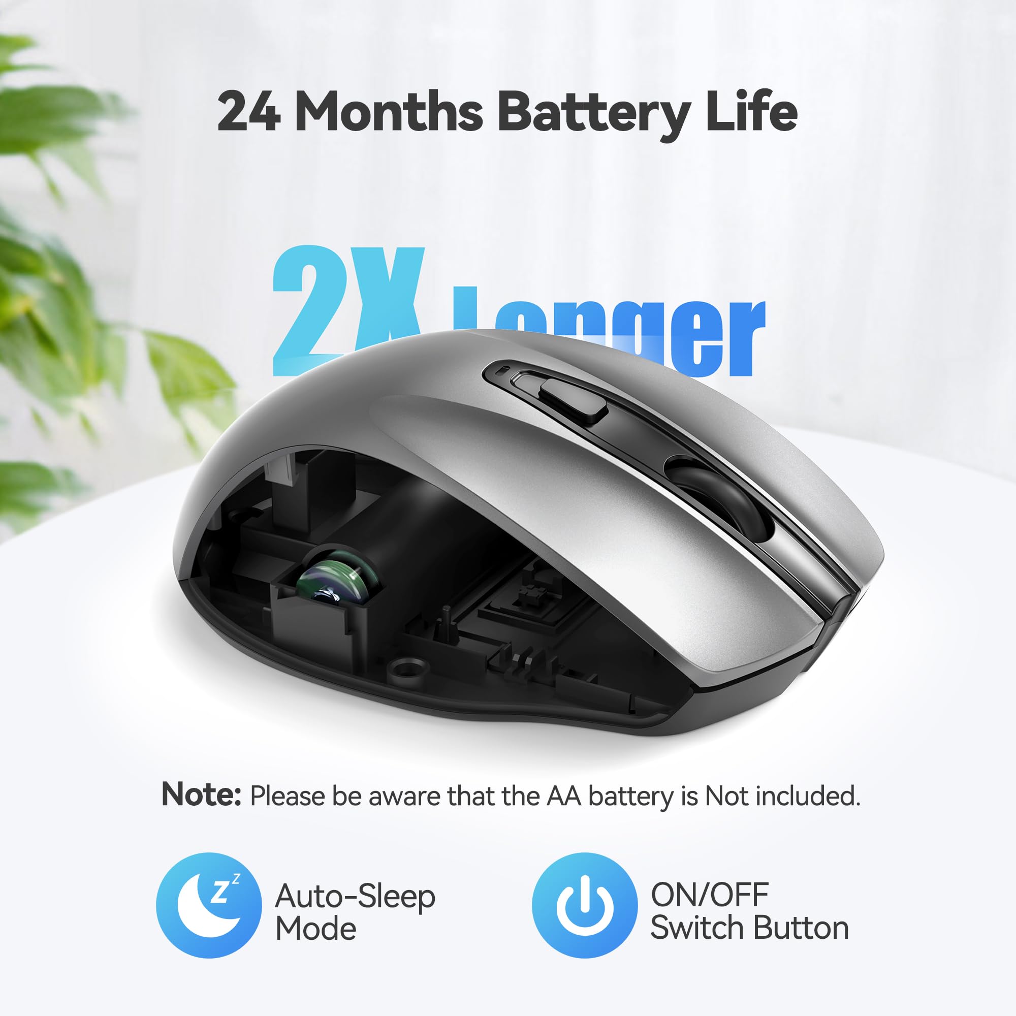 24 Months Battery Life - Combined with a power-saving mode and on/off switch, this efficiently engineered mouse grants you up to 24 months of battery life.