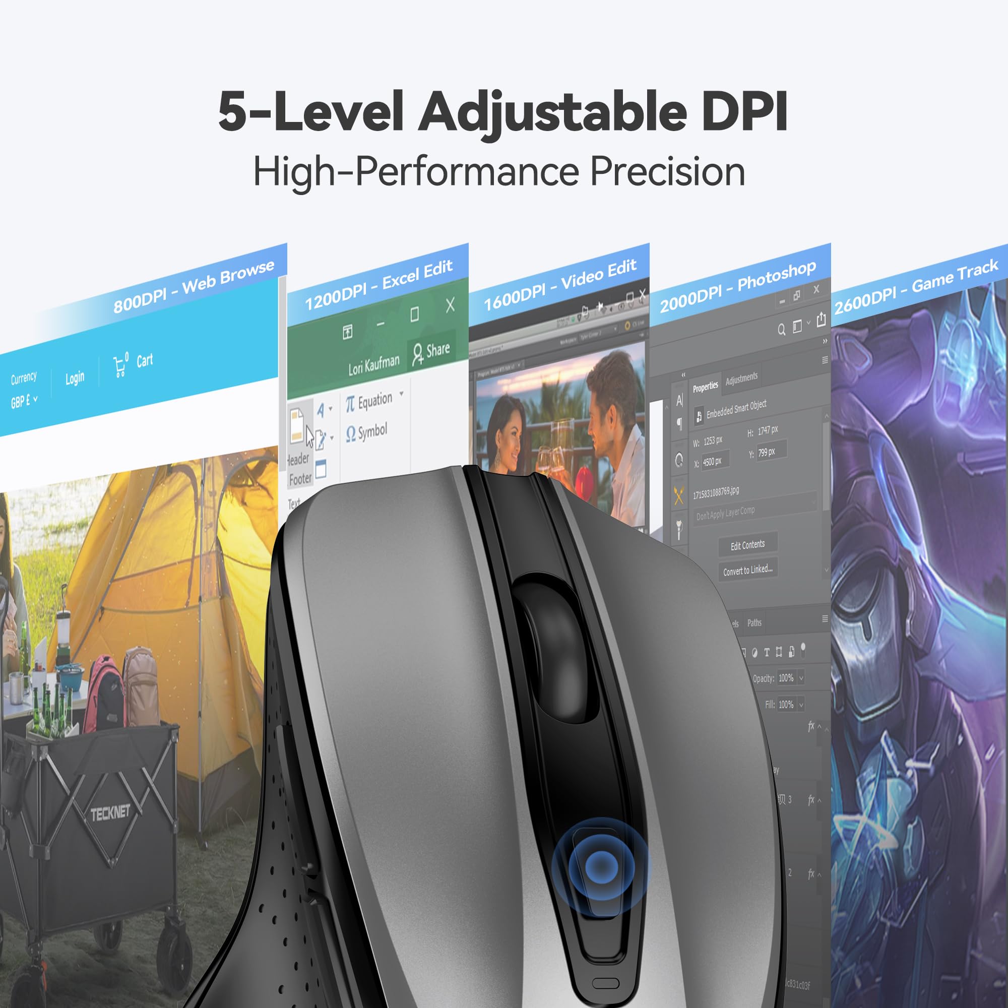 Advanced Optical Tracking - Featuring 5-level adjustable DPI (800/1200/1600/2000/2600), this mouse provides high-performance precision and smart cursor control on most surfaces. ( Glass surface is Not included )