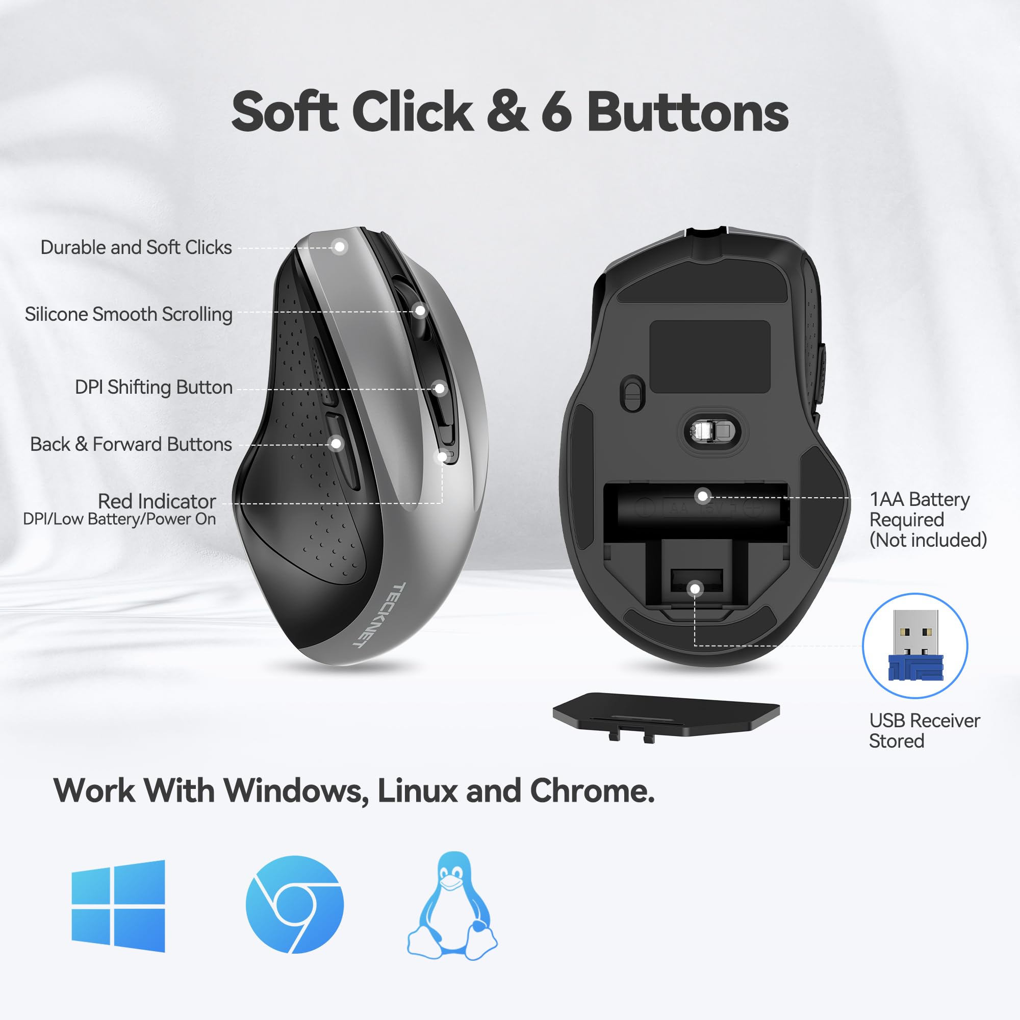 Plug and Play - Simply plug the USB-A mini-receiver into your Windows, Mac, Chrome OS, or Linux computer and enjoy seamless connectivity up to 49 feet.