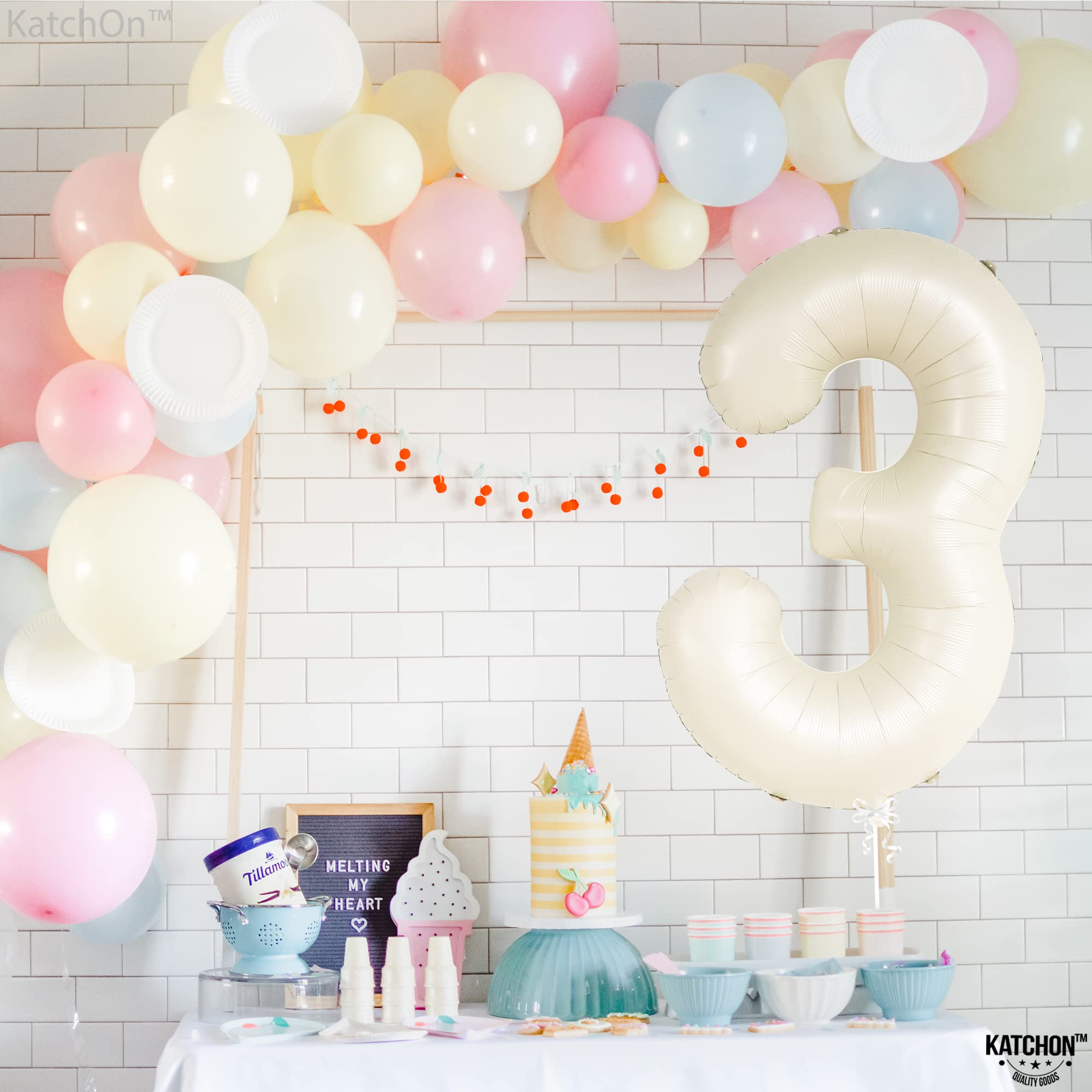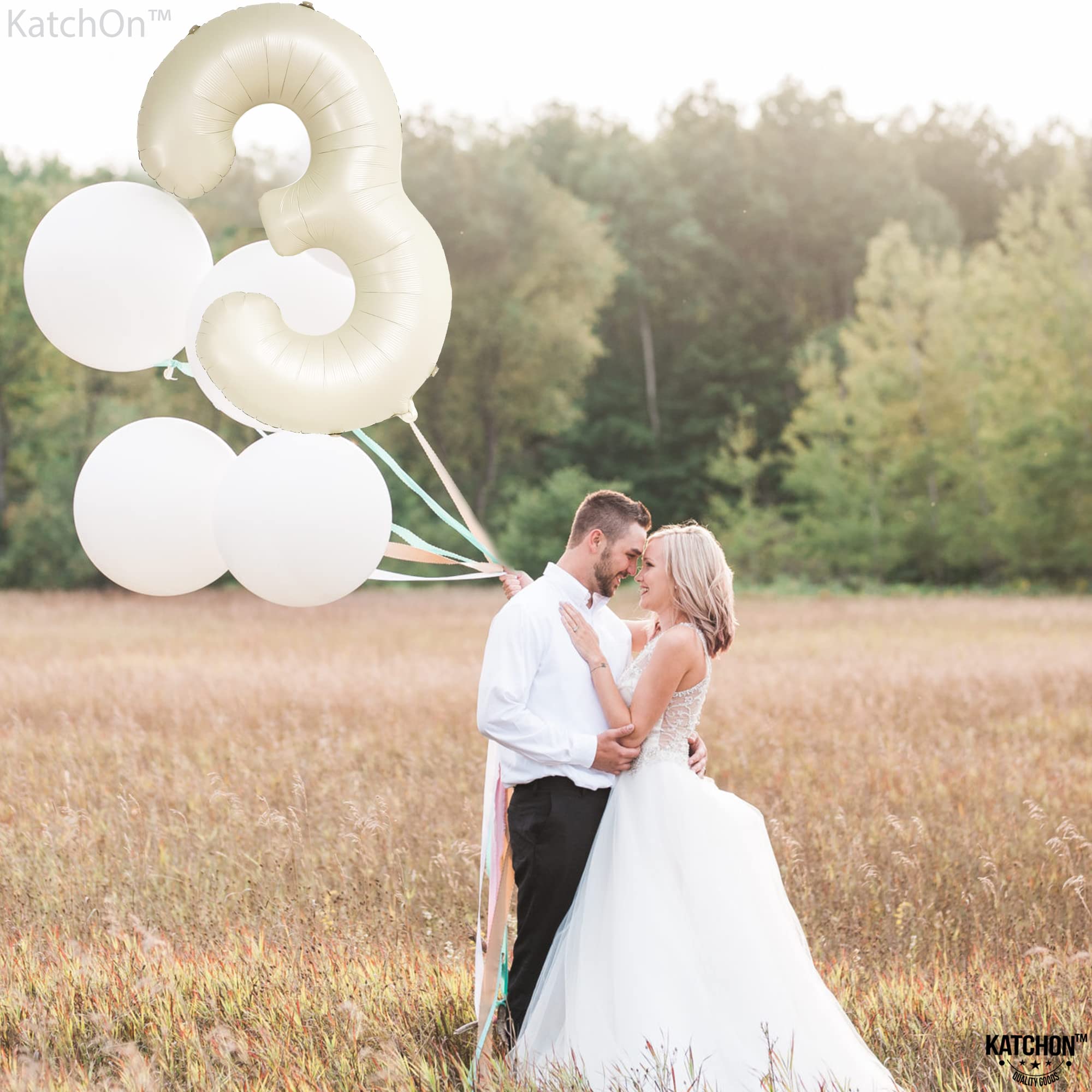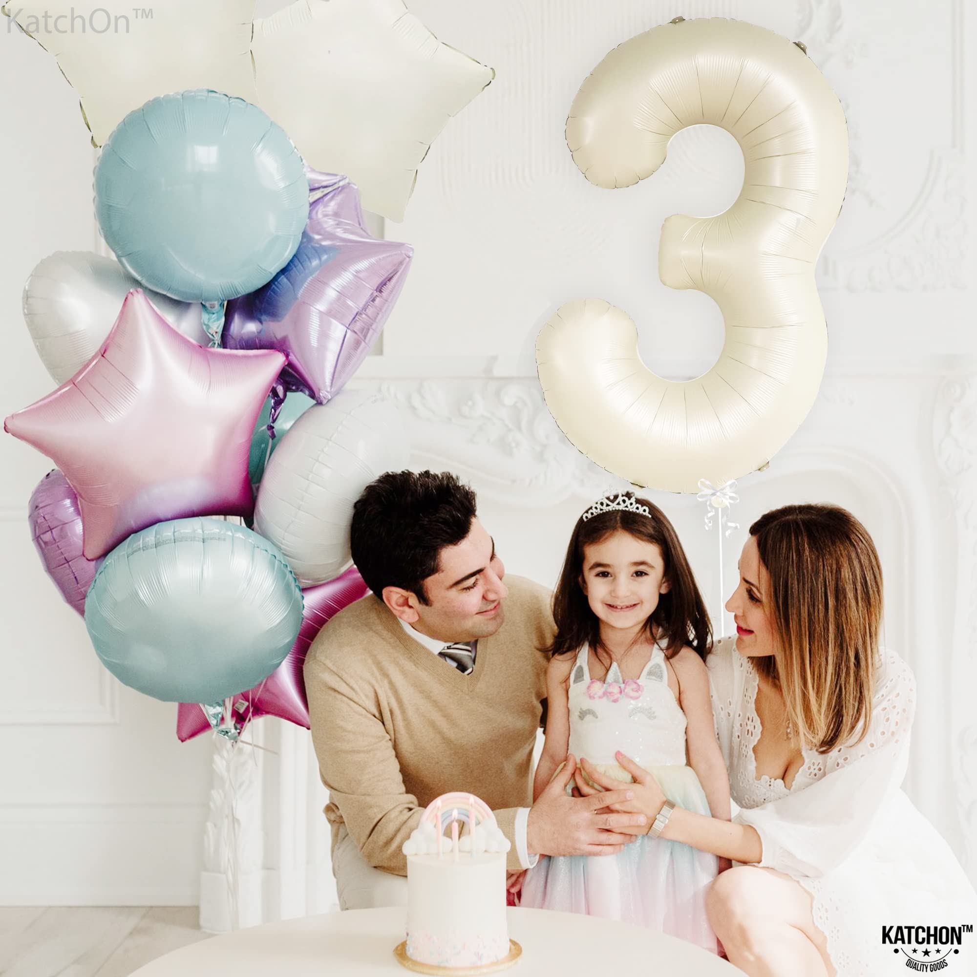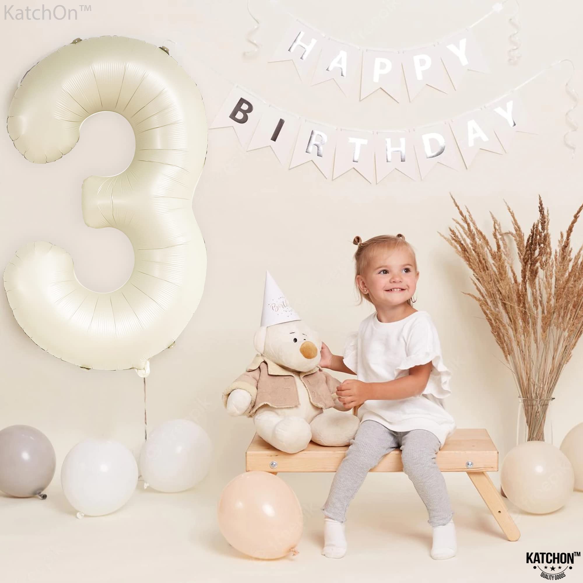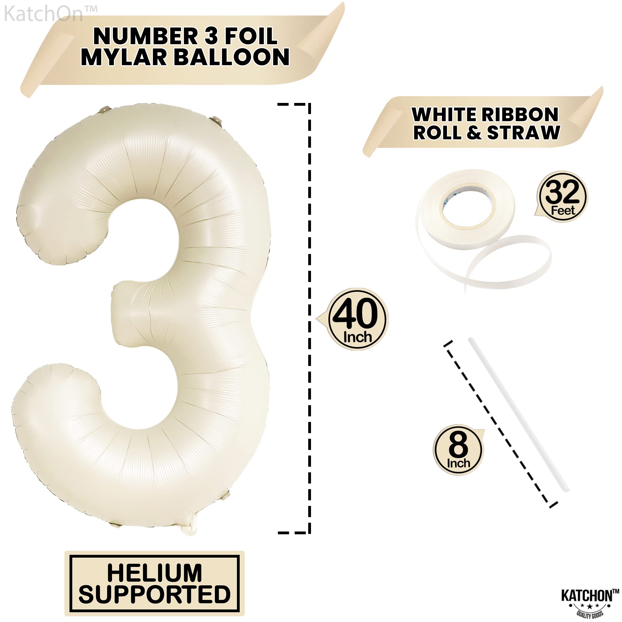 LARGE SIZE - 40 INCH | BEAUTIFUL CREAM WHITE BIRTHDAY BALLOONS : This Cream white number 3 balloon 40 inch is the party complement you shouldn’t miss. Add a great impact to your decoration with this gaint 3 Birthday Balloon Mylar Comes with, 1 White Ribbon and 1 Straw to Inflate balloons. Pair this 3 balloon number with other number balloons to create double digits to make up any age or number for your occasion. Perfect 3rd birthday decorations for boys and girls, Anniversary and many more.