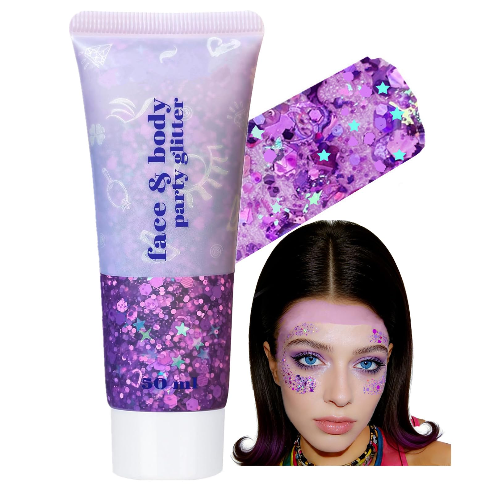 Easy-on,easy-off:Has a stick adhesive,goes on smoothly with a quick swipe of a finger or brush after easy squeezing out.Can be applied over face paint designs or body shimmer without smearing them.For ultimate glitter effect apply in layers letting each layer dry before applying the next.Easily remove with soap and water.