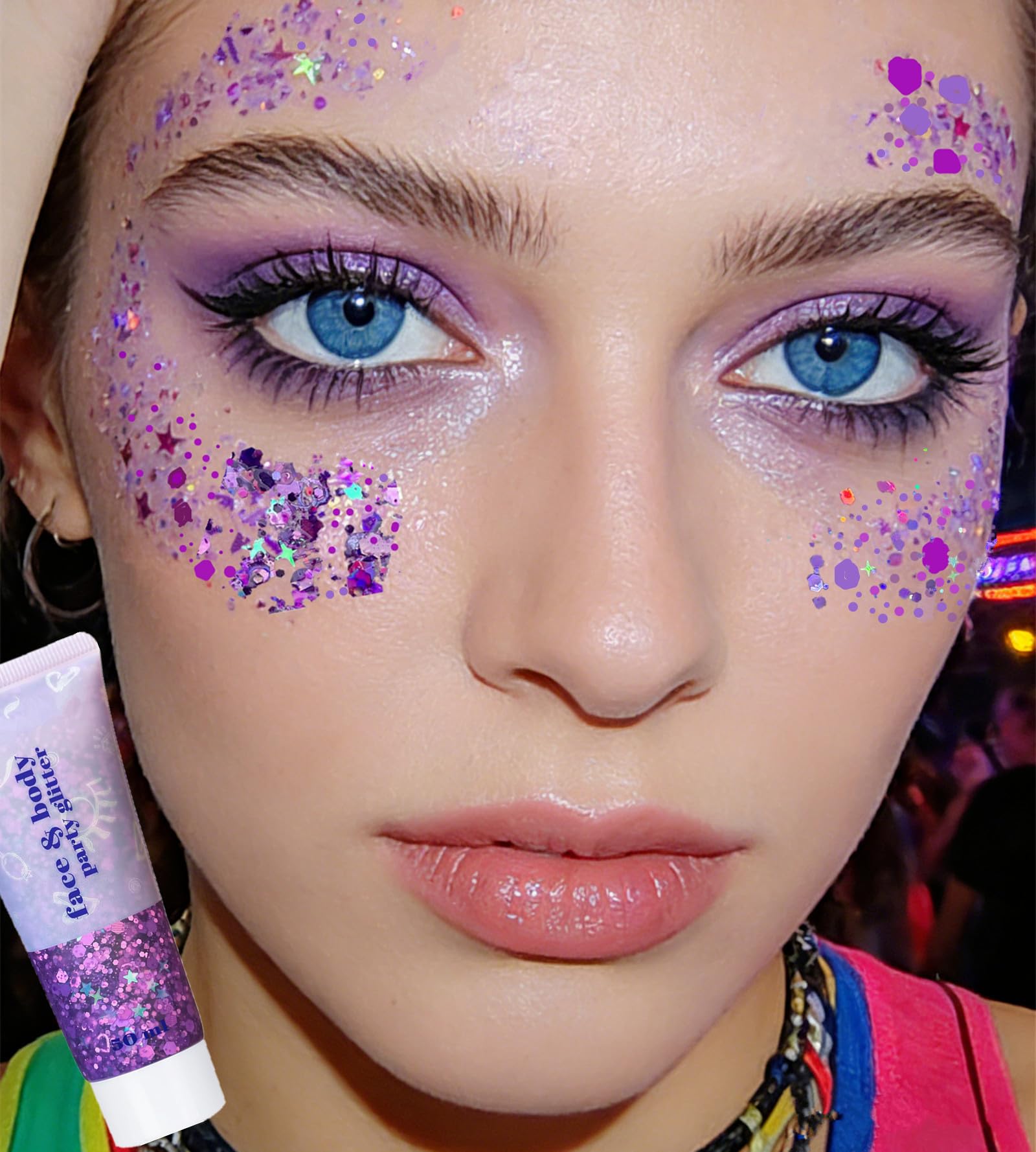 Halloween Glitter Makeup Wildly Use:This cosmetic chunky and fine glitters can be used to either complement your makeup look or just add some sparkle to other parts of your face and body.Great for face, body, eyeshadow, lips, cheeks, hair, nail art, and more.Great accessories for Singer Concerts,Music Festival,Rave,music festivals, weddings, parties, parades, football tailgates, and on stages around the world.