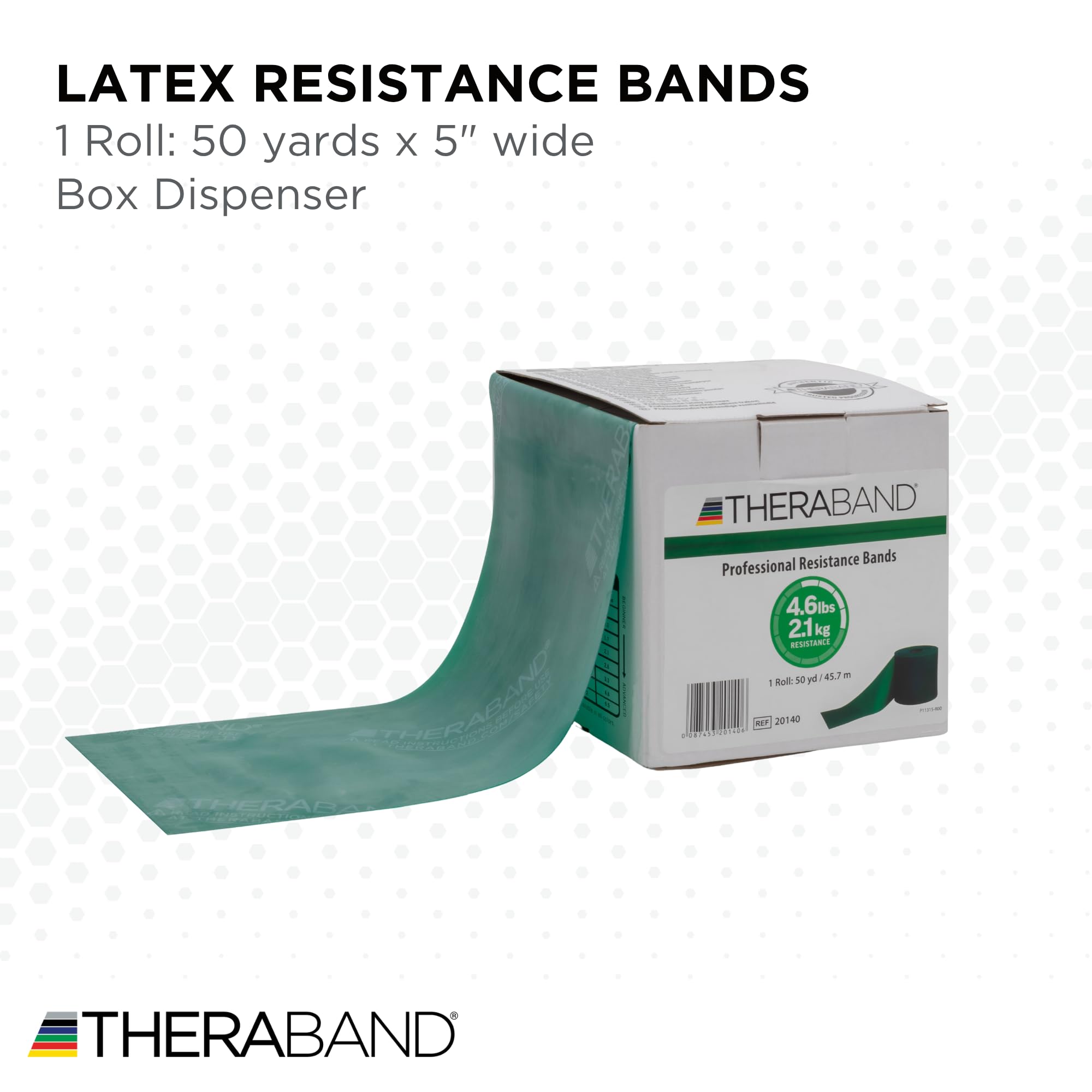CUSTOM RESISTANCE FOR EVERY ROUTINE The THERABAND 50-Yard Resistance Band Roll delivers professional-level performance in a convenient, cut-to-length format. Whether you're building strength, enhancing flexibility, or progressing through rehab, this latex band adapts to your needs with a simple snip of the scissors. DESIGNED FOR VERSATILITY & COMFORT Crafted from durable, clinical-grade latex, each band is flat and wide, providing secure contact and more comfort against your skin during movement. No bulky handles means full control over grip, making it easier to switch between standing, seated, or floor-based exercises. SIMPLIFY YOUR WORKOUT SETUP From home gyms to physical therapy offices, this dispenser box keeps your bands organized and ready to go. The color-coded resistance levels remove any guesswork, helping you track progress and choose the right band at a glance. TRUSTED BY PHYSICAL THERAPISTS Used in rehab clinics and fitness centers worldwide, THERABAND is the name professionals trust for quality and performance, helping you move better, feel better, and stay stronger.