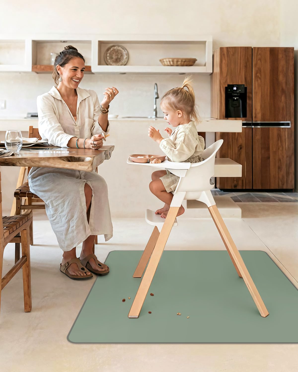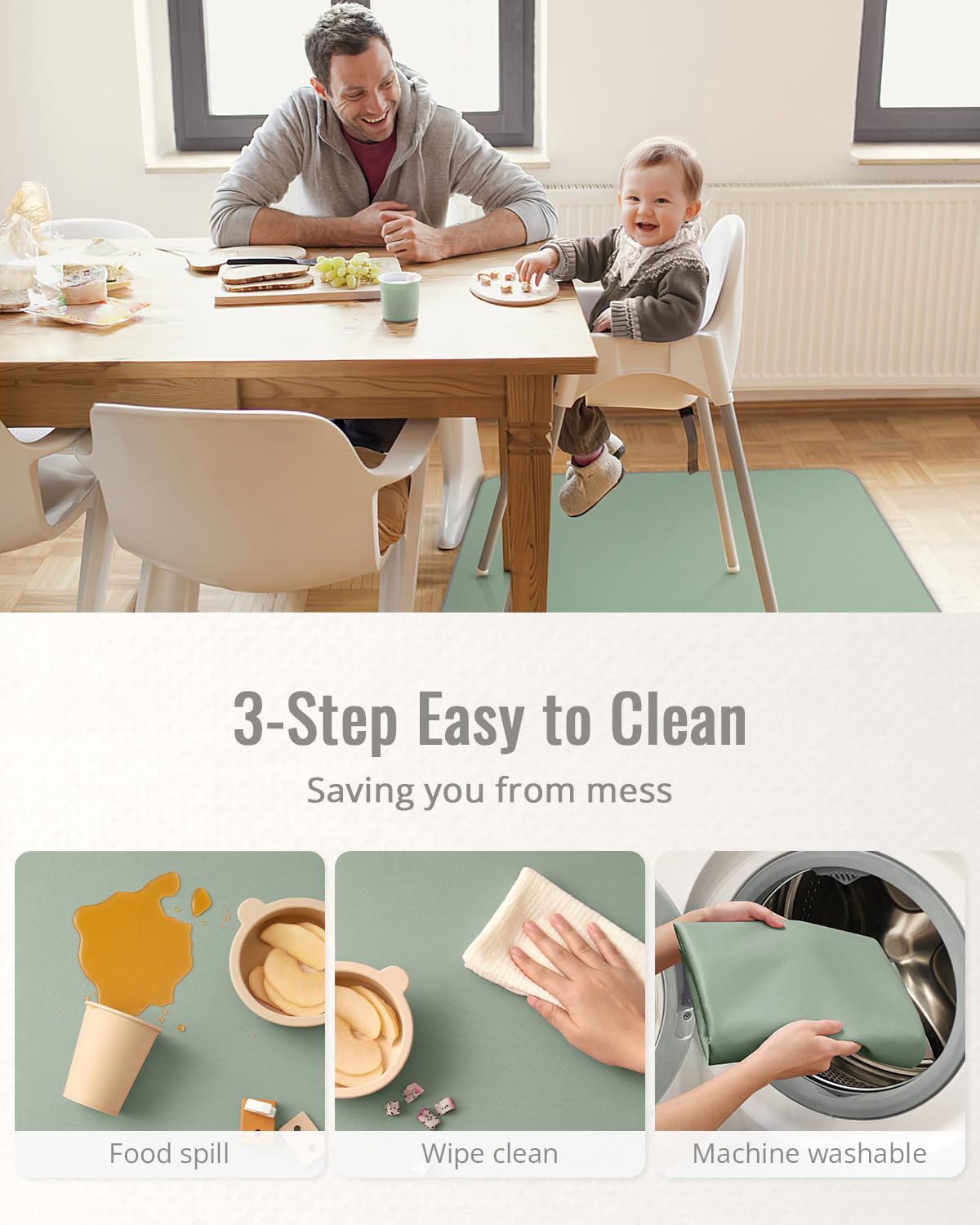 Anti-Slip Bottom: The high chair mat features anti-slip dots on the bottom that keep the mat in place. The splat mat is not easy to move on the floor, keeping the safety of the baby and mom