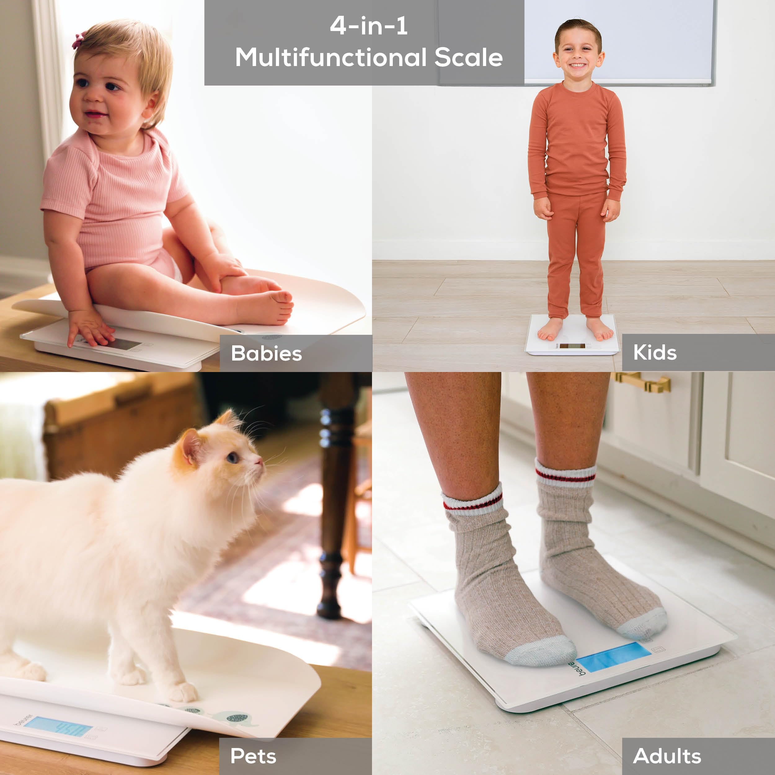 4-IN-1: For babies, pets, toddlers, and adults, the tray slides off to switch between uses, a smart and sustainable option to monitor body weight and growth measurement from newborn to adult