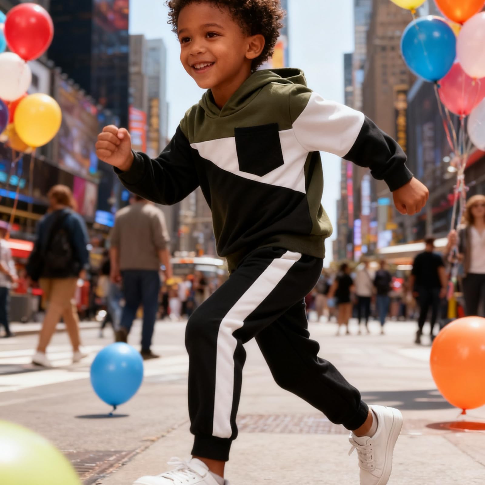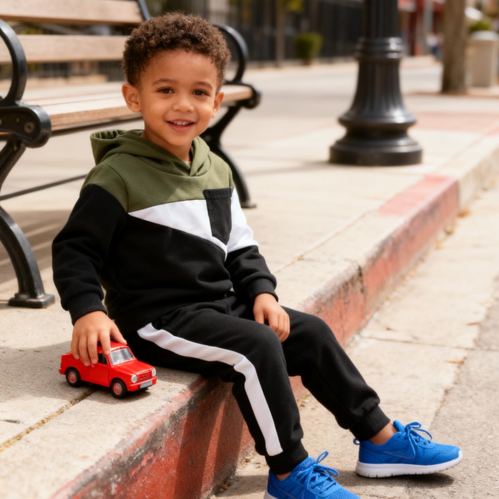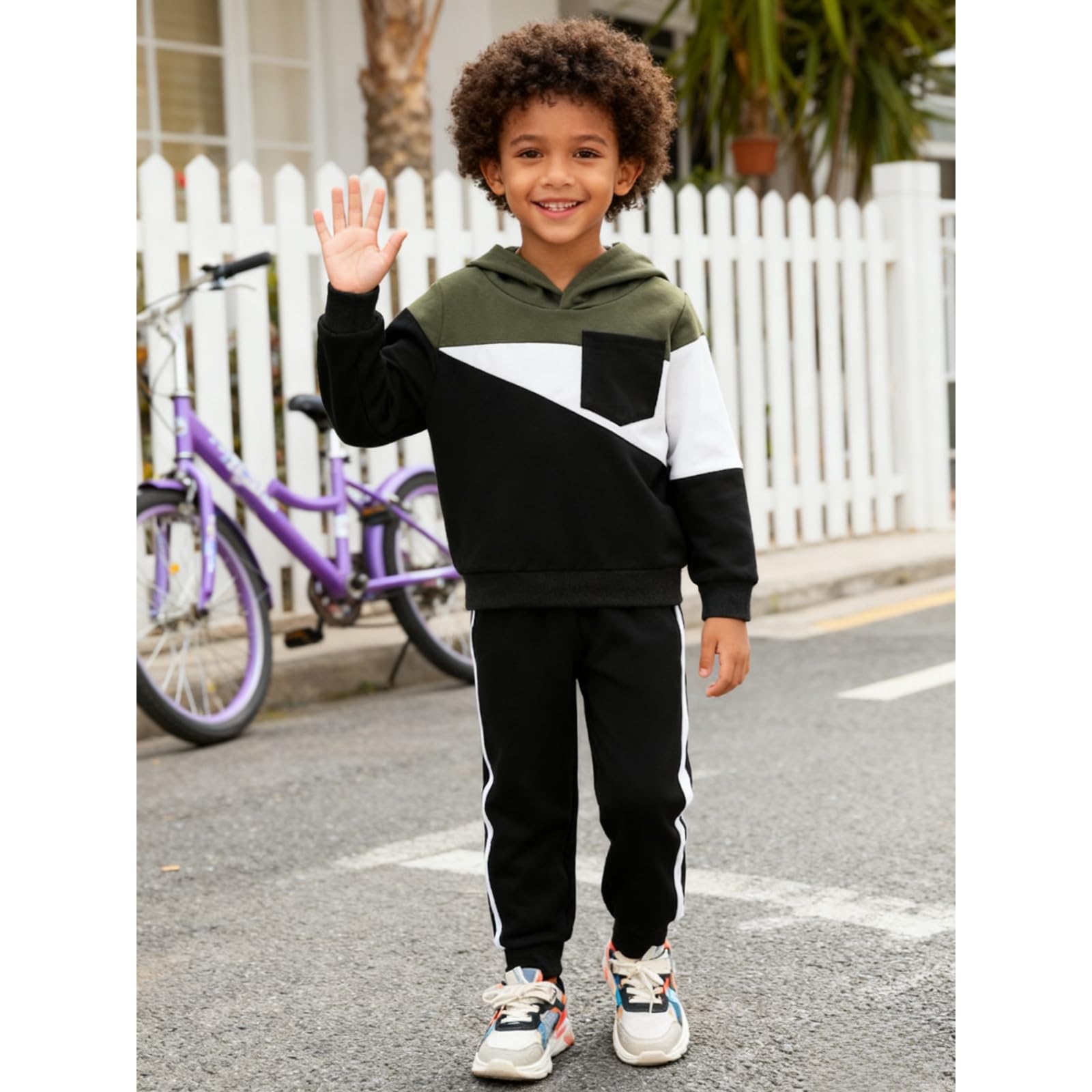 This set includes one Colorblock Hoodie with a hood and one pair of coordinating pants, offering a complete and stylish outfit for your toddler. Perfect for casual wear, special occasions