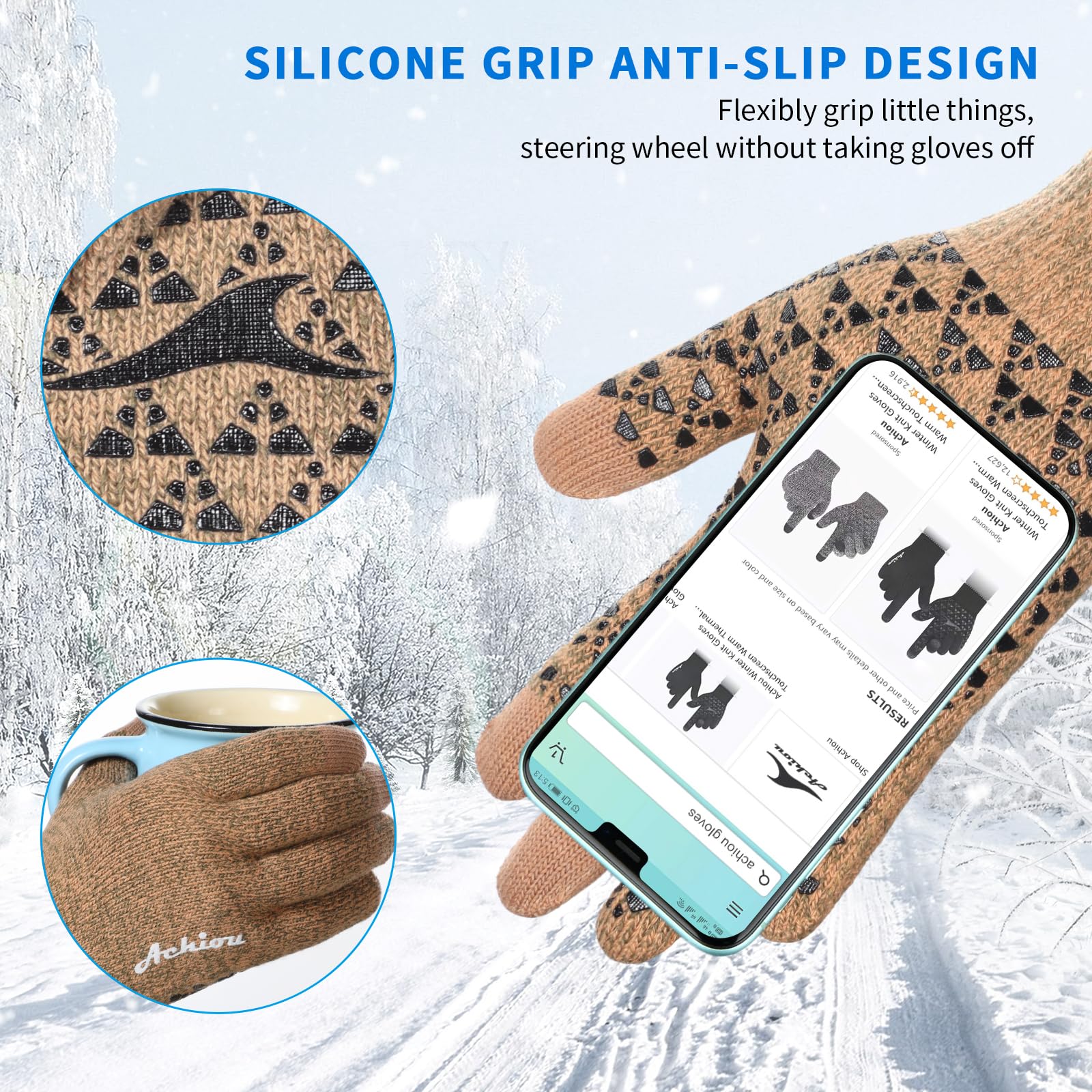 Convenient & Breathable Material : Living in the technology age, Achiou winter knit gloves let you use your phone without having to expose your hands. Breathable material allows the gloves to ventilate in order to decrease sweat accumulation.