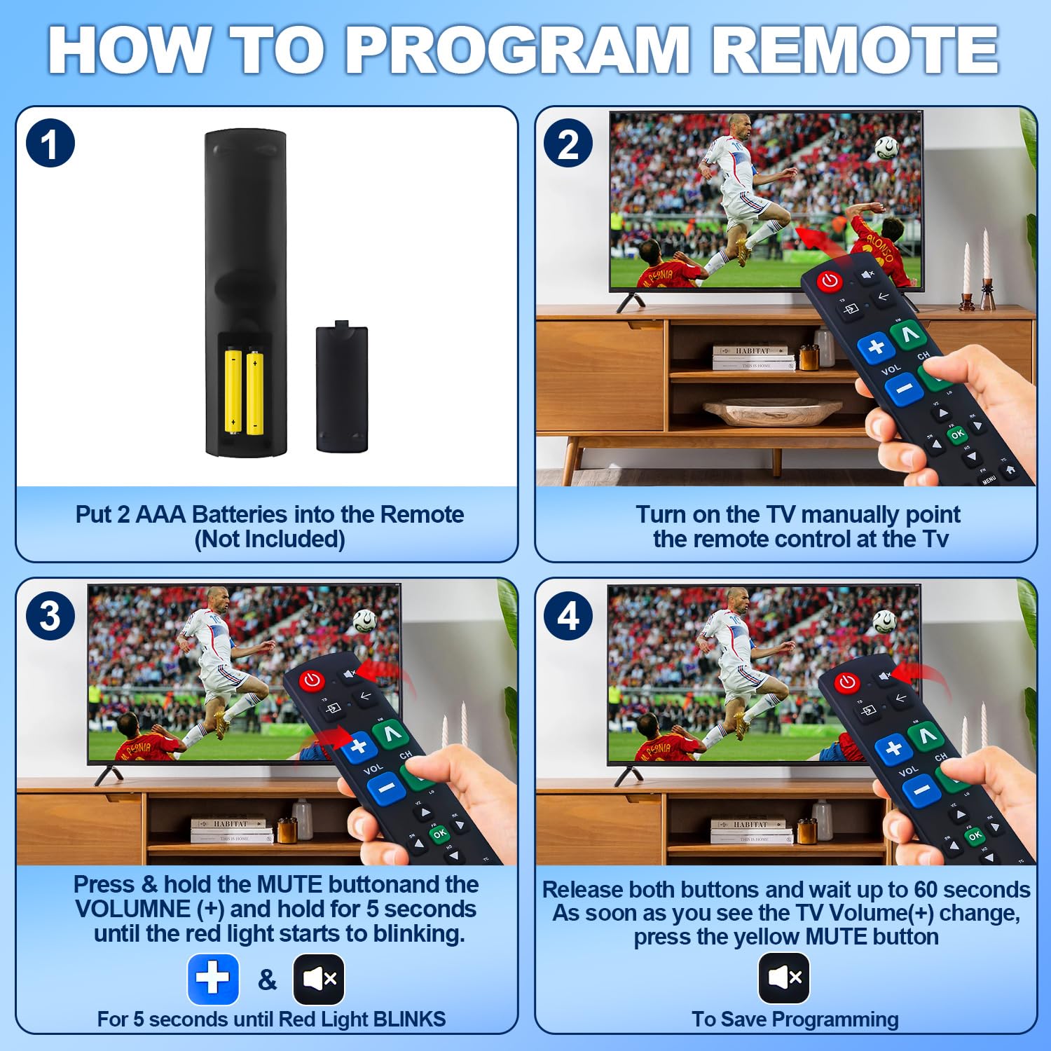 【No Programming Needed】Simply insert the batteries and start using the remote with your Samsung TV - no setup or pairing required