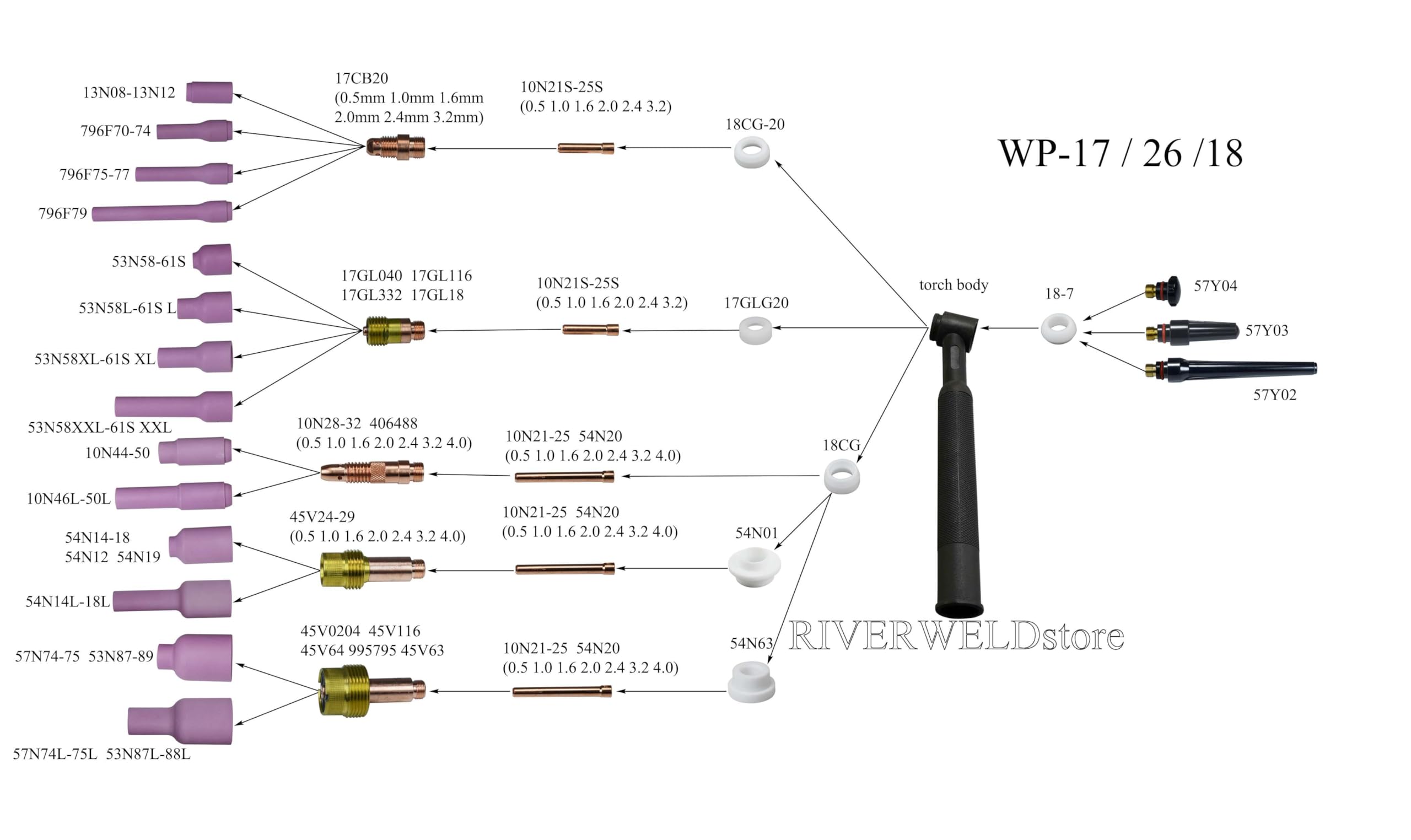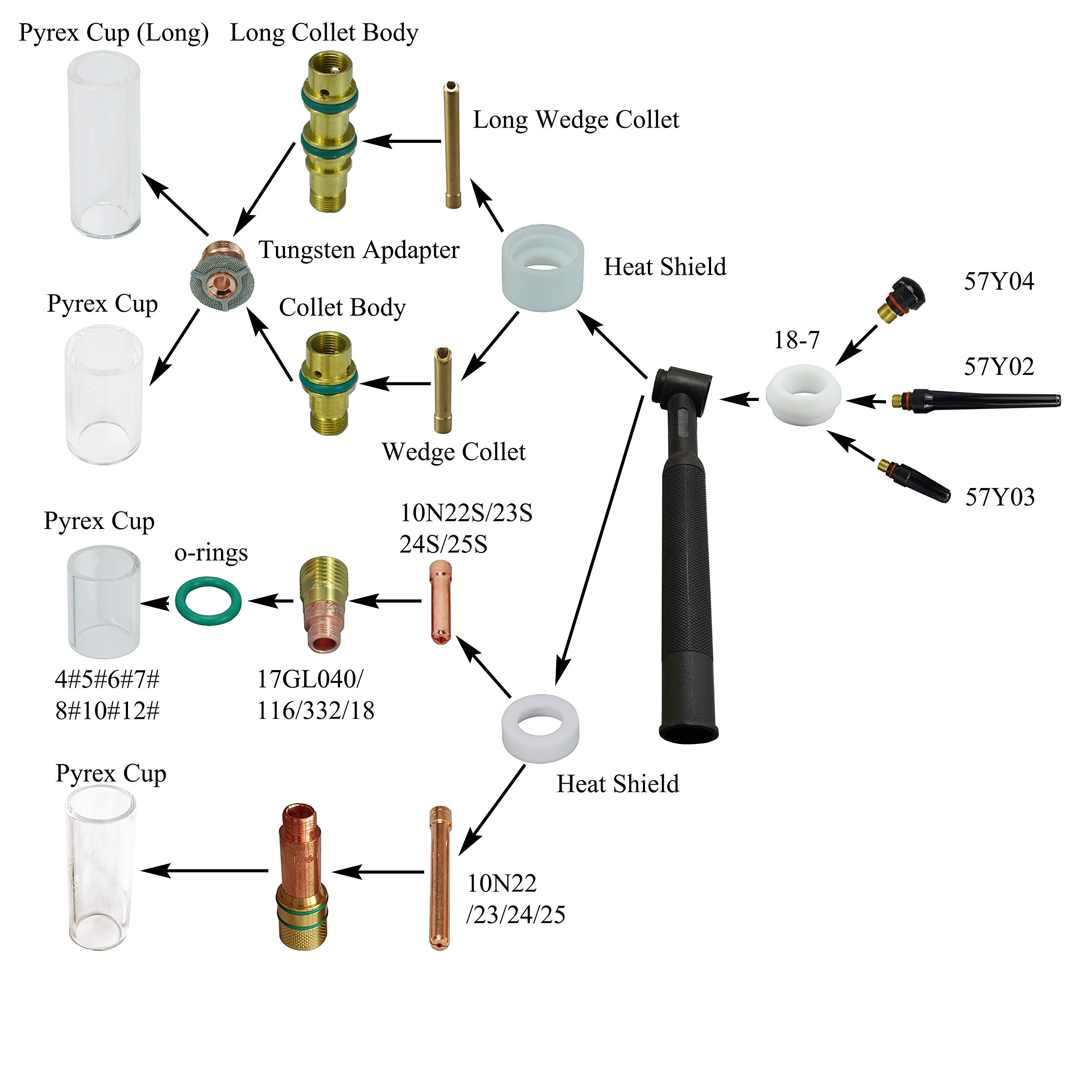 Work with 10N series tig collet and 57N 53N series ceramic cup