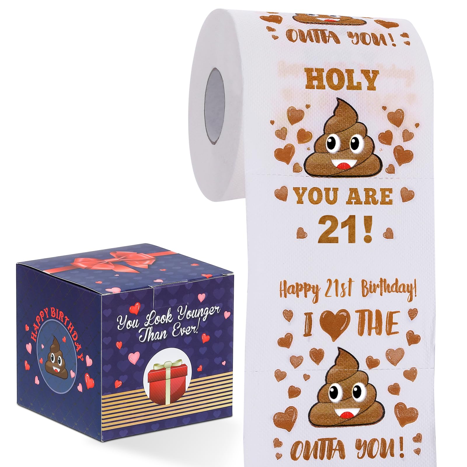 ★2 Funny Pattern Design - (1)Holy XXXX, YOU ARE 21! (2)Happy 21st Birthday, I LOVE THE XXXX OUTTA YOU! Images are on every sheets of roll with no-smudge ink printing.(not just top sheet like others). Papers are made of biodegradable material.