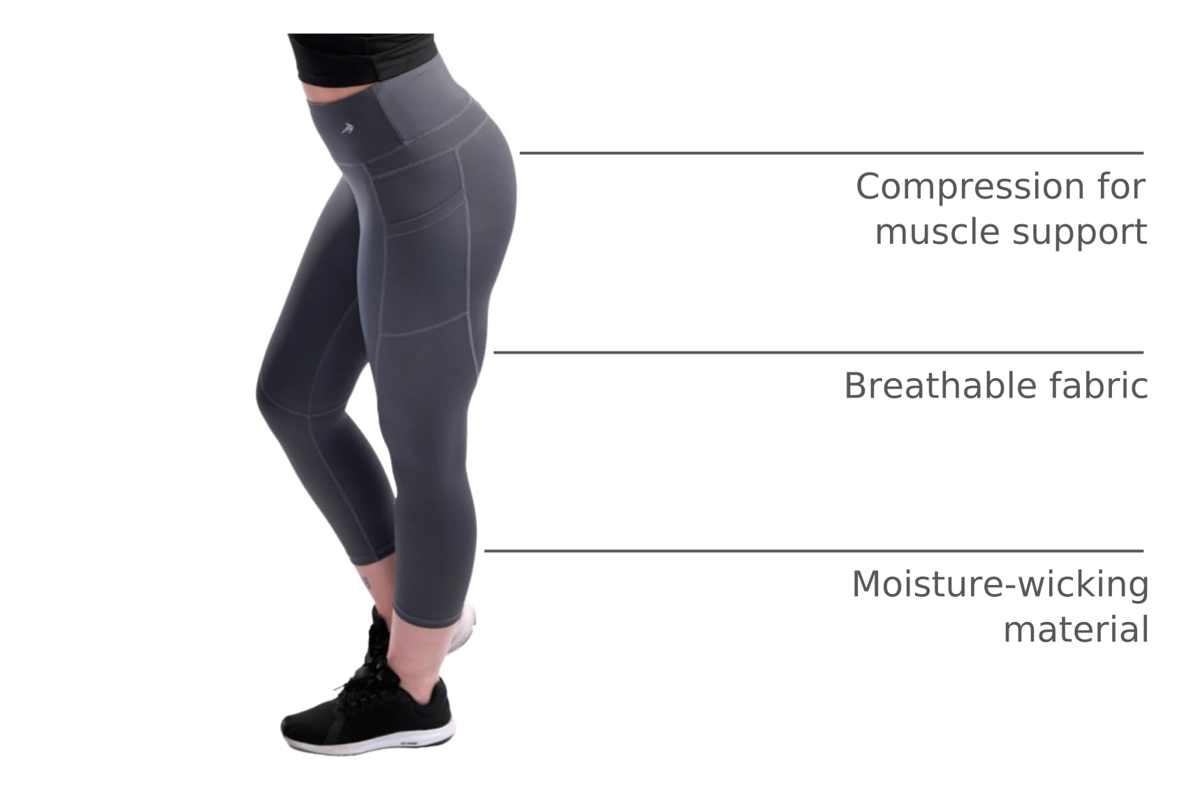 Versatile Compression Capris for Active Women: These high-waisted compression leggings with pockets are the ultimate blend of style and function. Ideal for yoga, running, or gym workouts, they provide comfortable yet firm support, perfect for women seeking tummy control leggings for both exercise and casual wear.