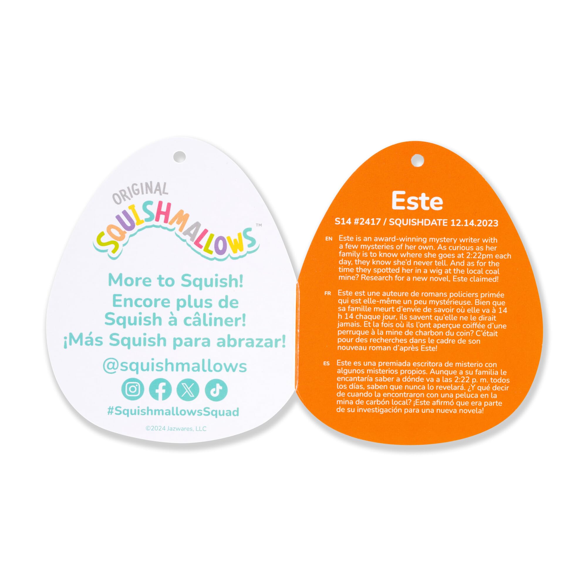 Each Squishmallows comes with a unique name and bio. Este is an award-winning mystery writer!