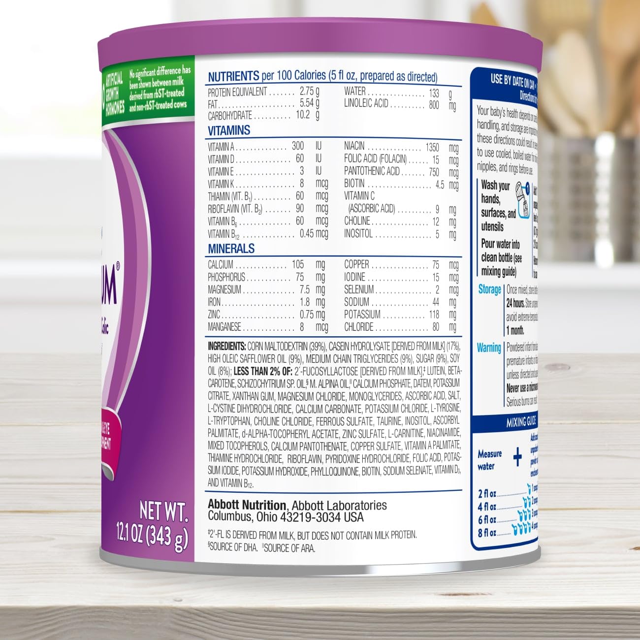Similac Alimentum infant formula with 2'-FL HMO is the first and only hypoallergenic infant formula with 2'-FL HMO, a unique immune-nourishing ingredient. It starts reducing colic symptoms due to protein sensitivity in most babies within 24 hours,† so your baby can start feeling better today.† * Due to protein sensitivity. † Based on a clinical study with Alimentum Ready to Feed without DHA, ARA, 2'-FL HMO, lutein, and beta-carotene. A crossover clinical study of infants experiencing colic symptoms due to cow’s milk protein sensitivity showed 5 of 6 infants initiated on Alimentum during the first week achieved a reduction in excessive crying. Data on File, Study AC84, August 2004. Abbott Nutrition, Columbus, Ohio.