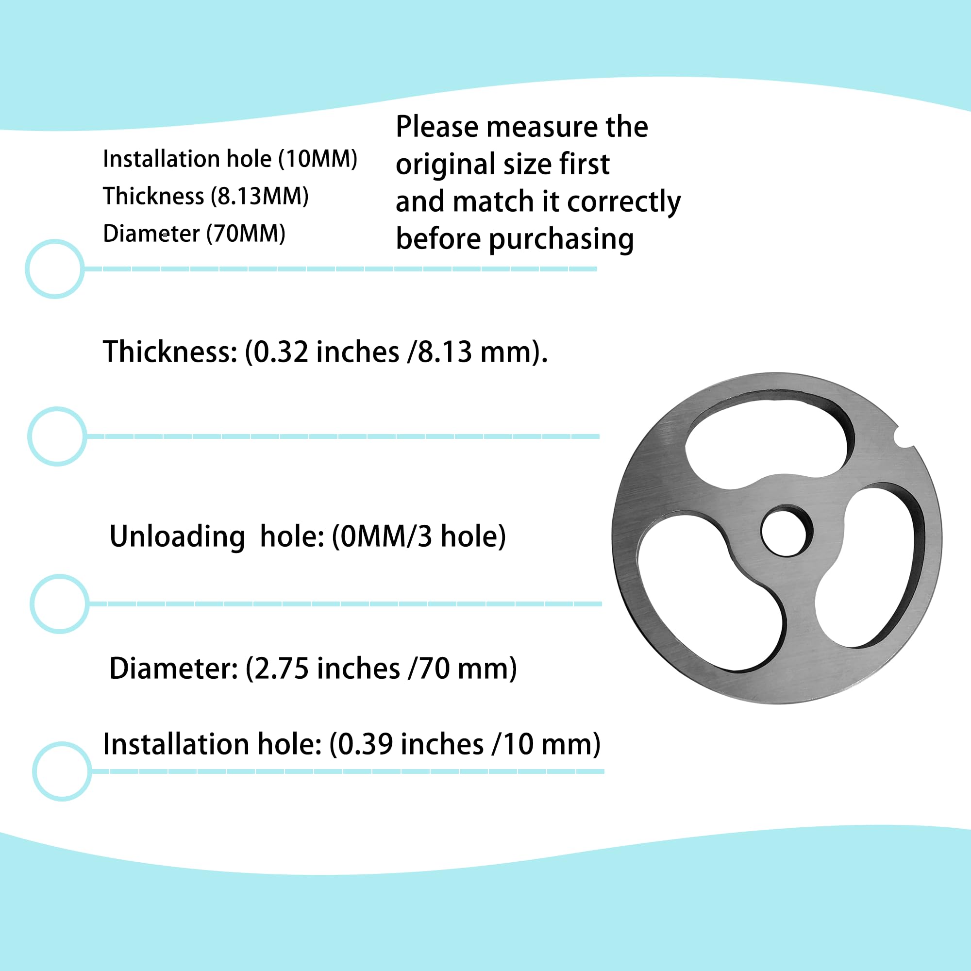 Please measure the original size first/match correctly Installation hole (10MM) Thickness (8.13MM) Diameter (70MM)