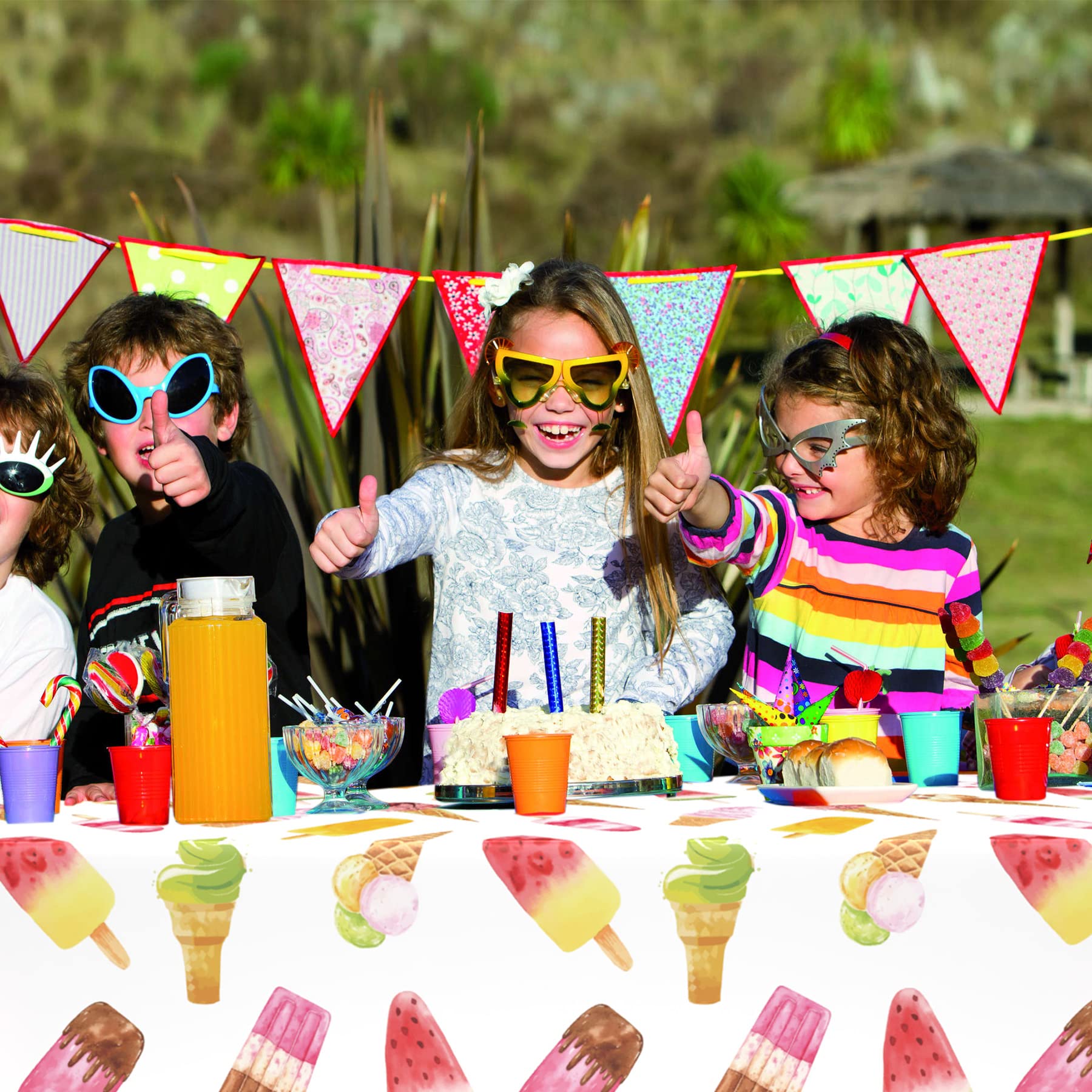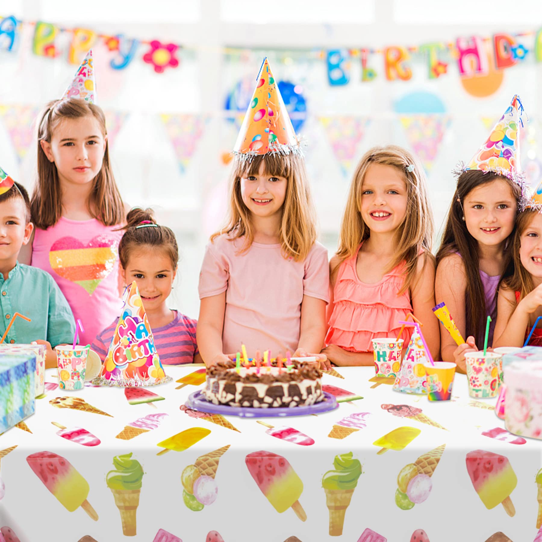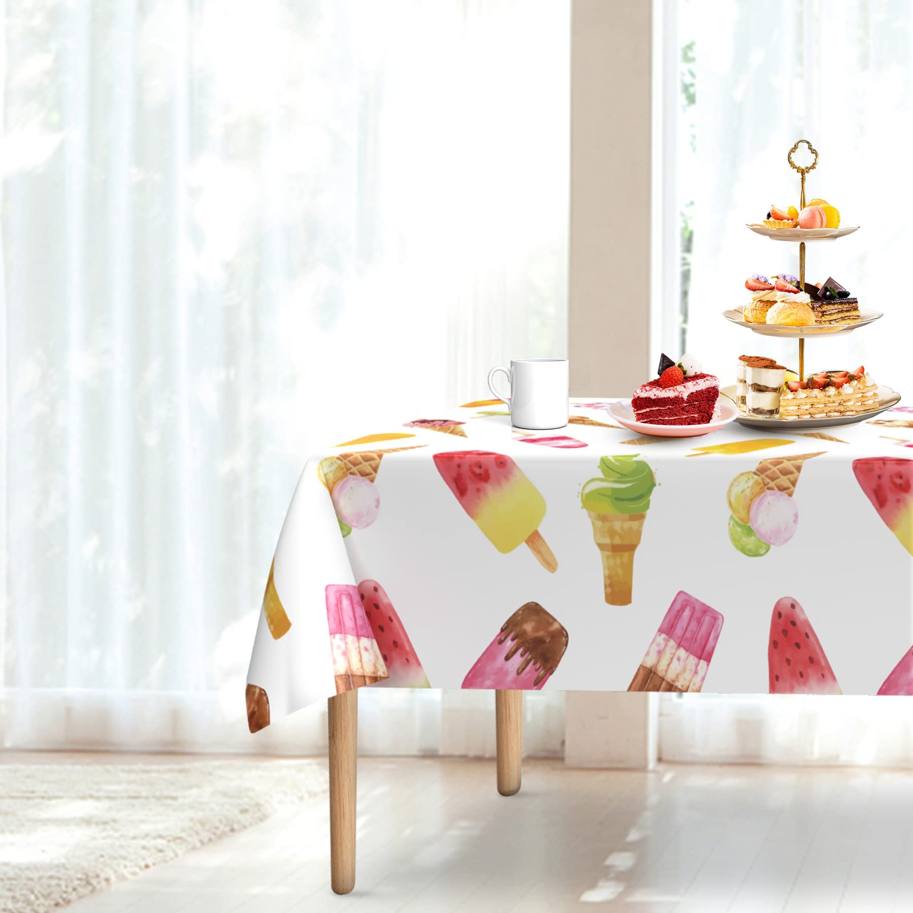 Beautiful Design: The ice cream tablecloth is designed with watermelon, ice cream, popsicles and other elements, blended with brilliant colors. Bright and vivid, adding more party atmosphere to your party. It is the perfect choice for ice cream party decorations