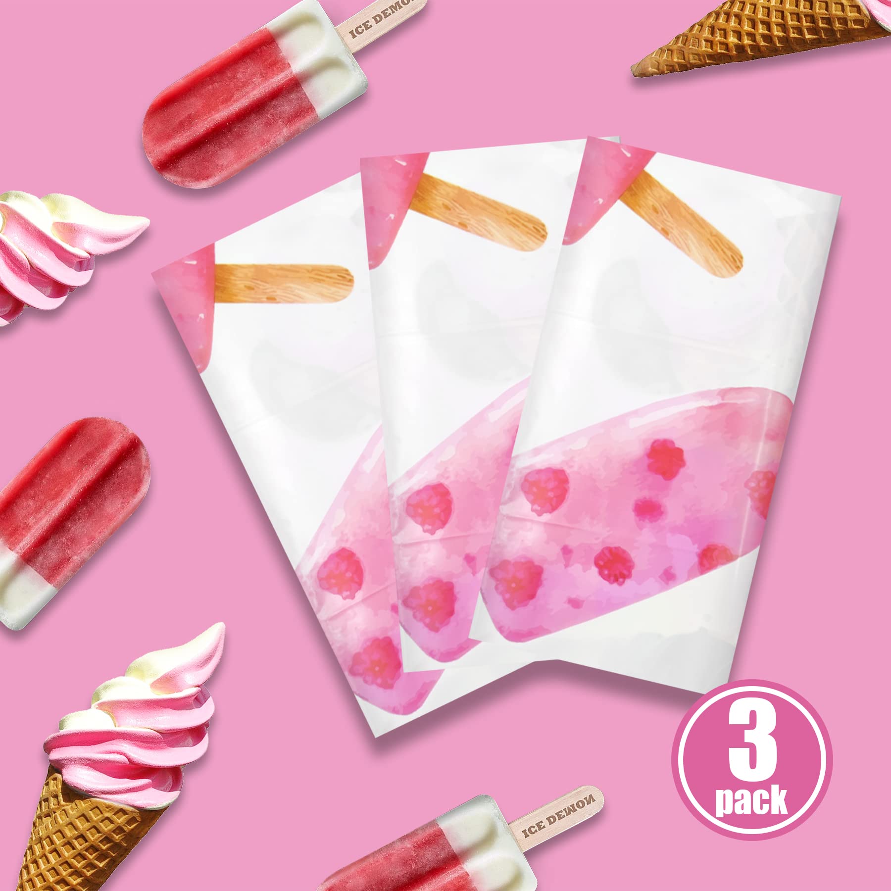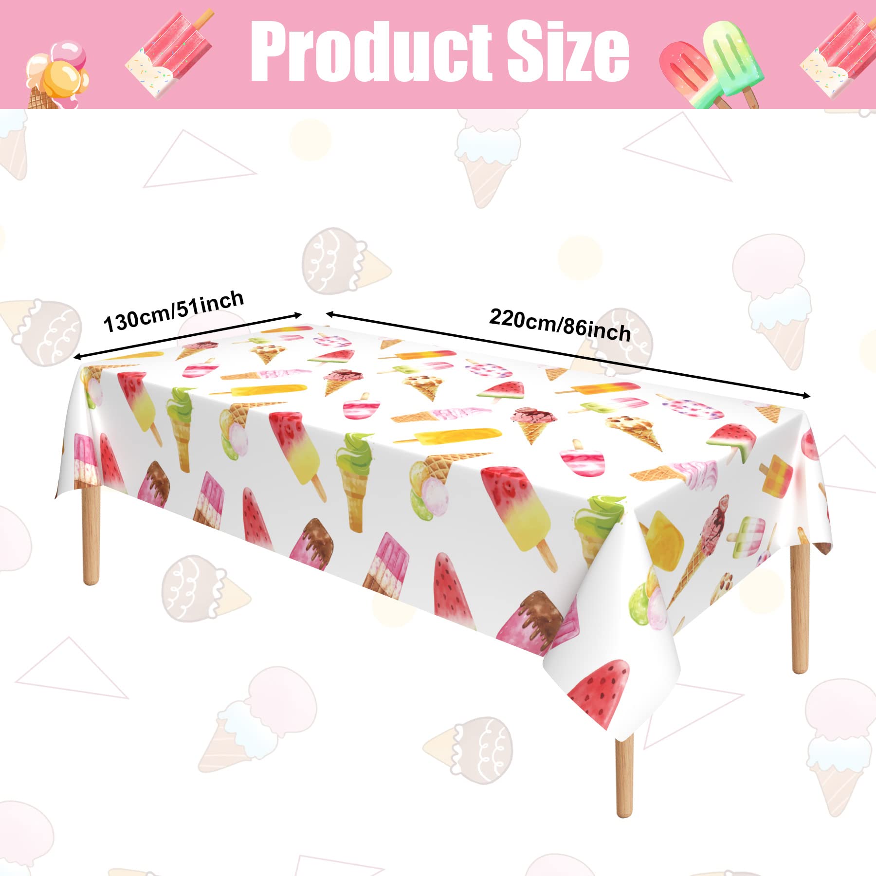 Tablecloth Package: Our package contains three ice cream tablecloths that can meet your daily or holiday party use needs. You can also use the tablecloths as backdrops to decorate your party