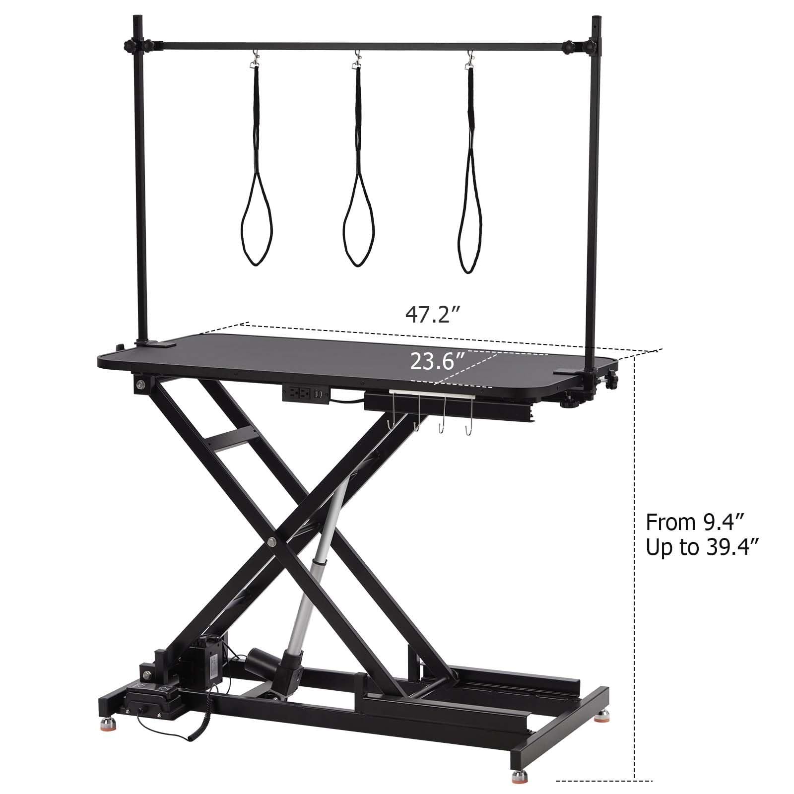 【STURDY & HEAVY-DUTY】— Our 47.24" L x 23.6" W electric dog grooming table for large dogs supports pets up to 264.5 lbs, featuring a stainless steel frame and reinforced grooming arm ideal for professional and home use