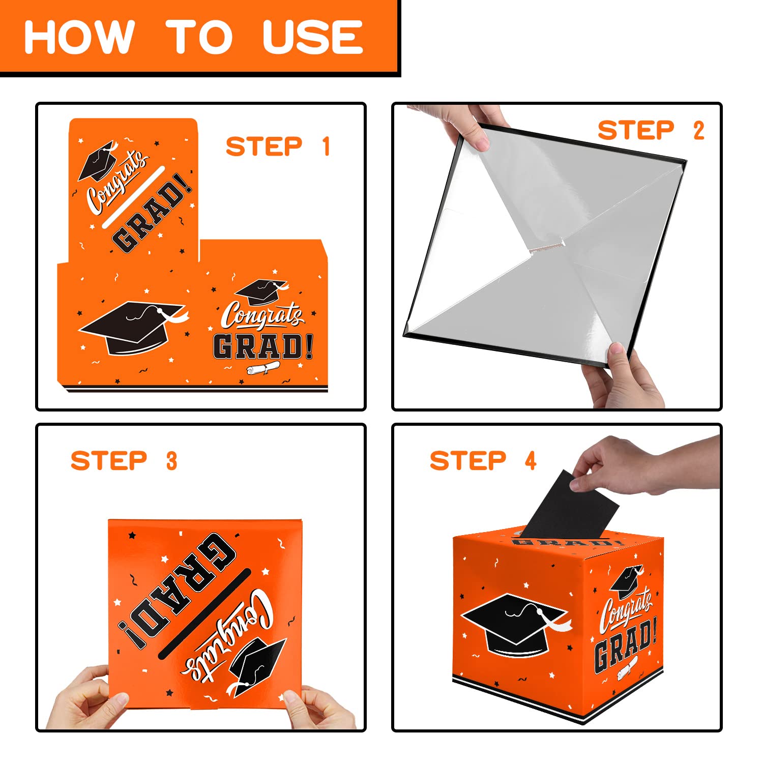 GRADUATION BOX DECORATIONS: decorate your party more unique and beautiful by using the box. It’s easily to fold and prepare for the best party by our party supplies. A little simple decoration can make your party to attract the attention of all guests.