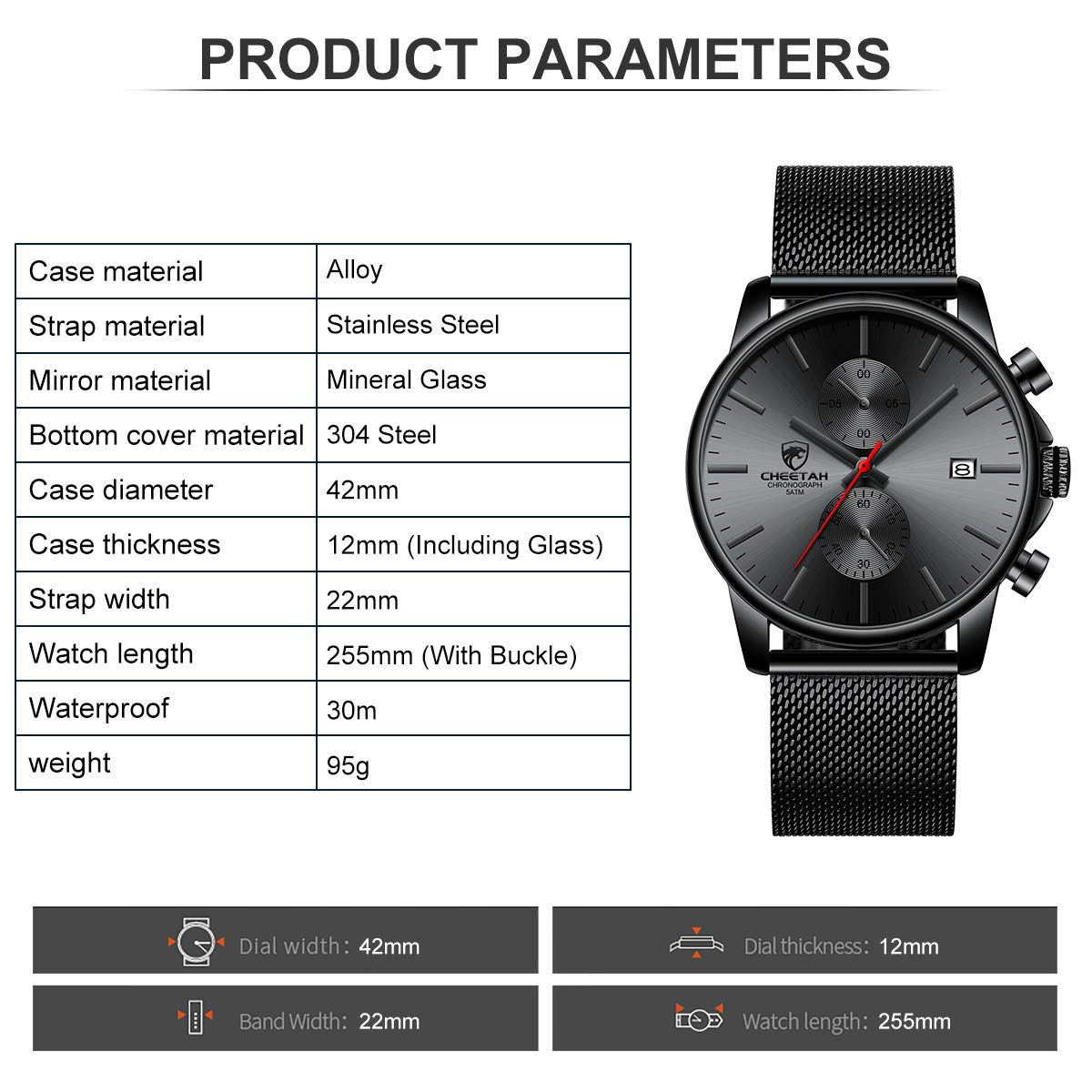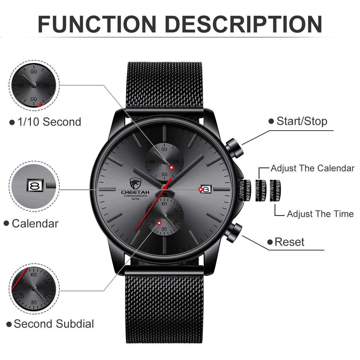 ⌚Sports chronograph: Multifunctional sub-dial can work, chronograph, calendar, run seconds. Provide you with multi-function purpose use.