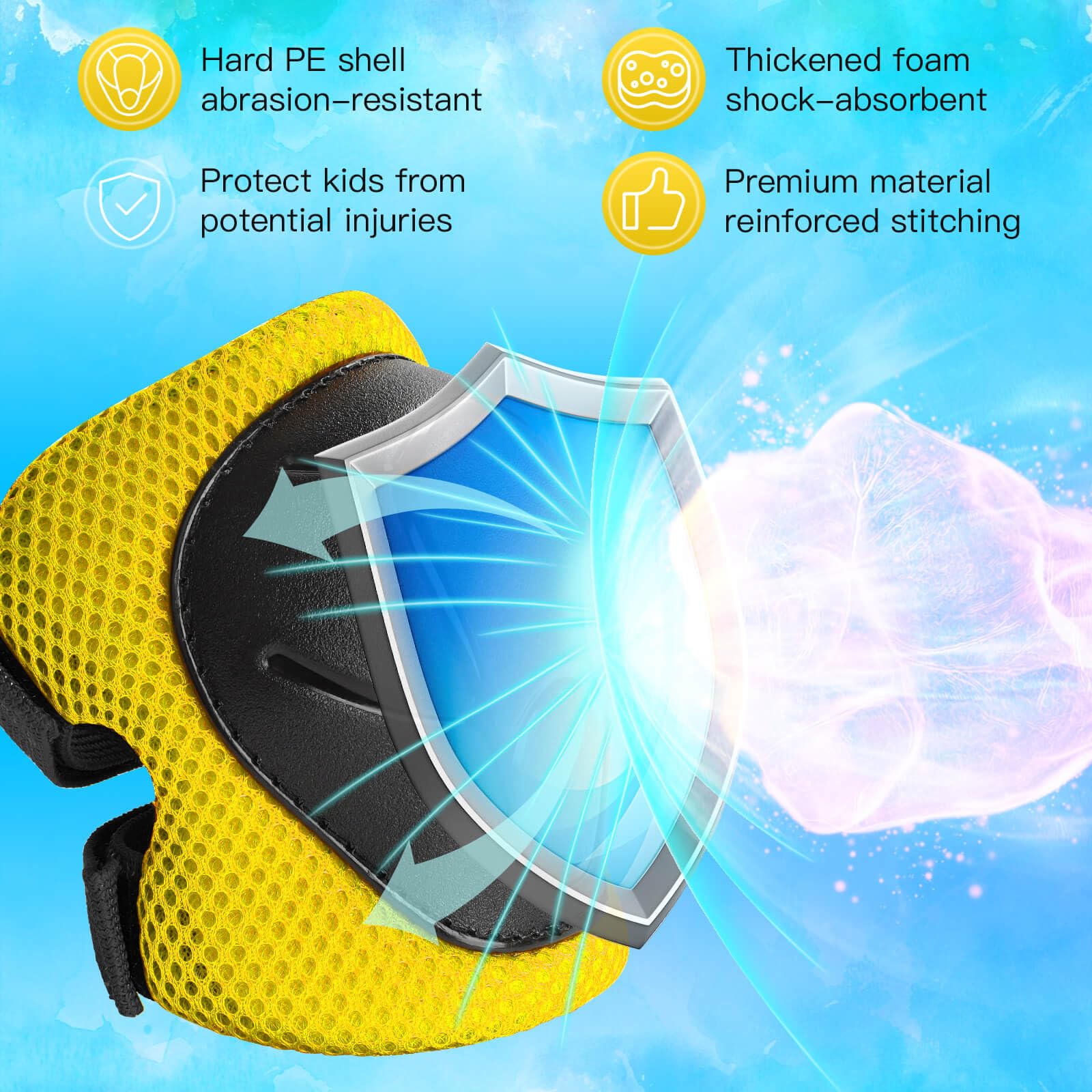【 Comfortable & Durable 】Made of anti-scratch high-hardness PVC shell for hard protection, and soft sponge material for impact buffering, while make your kids feel comfortable in wearing.