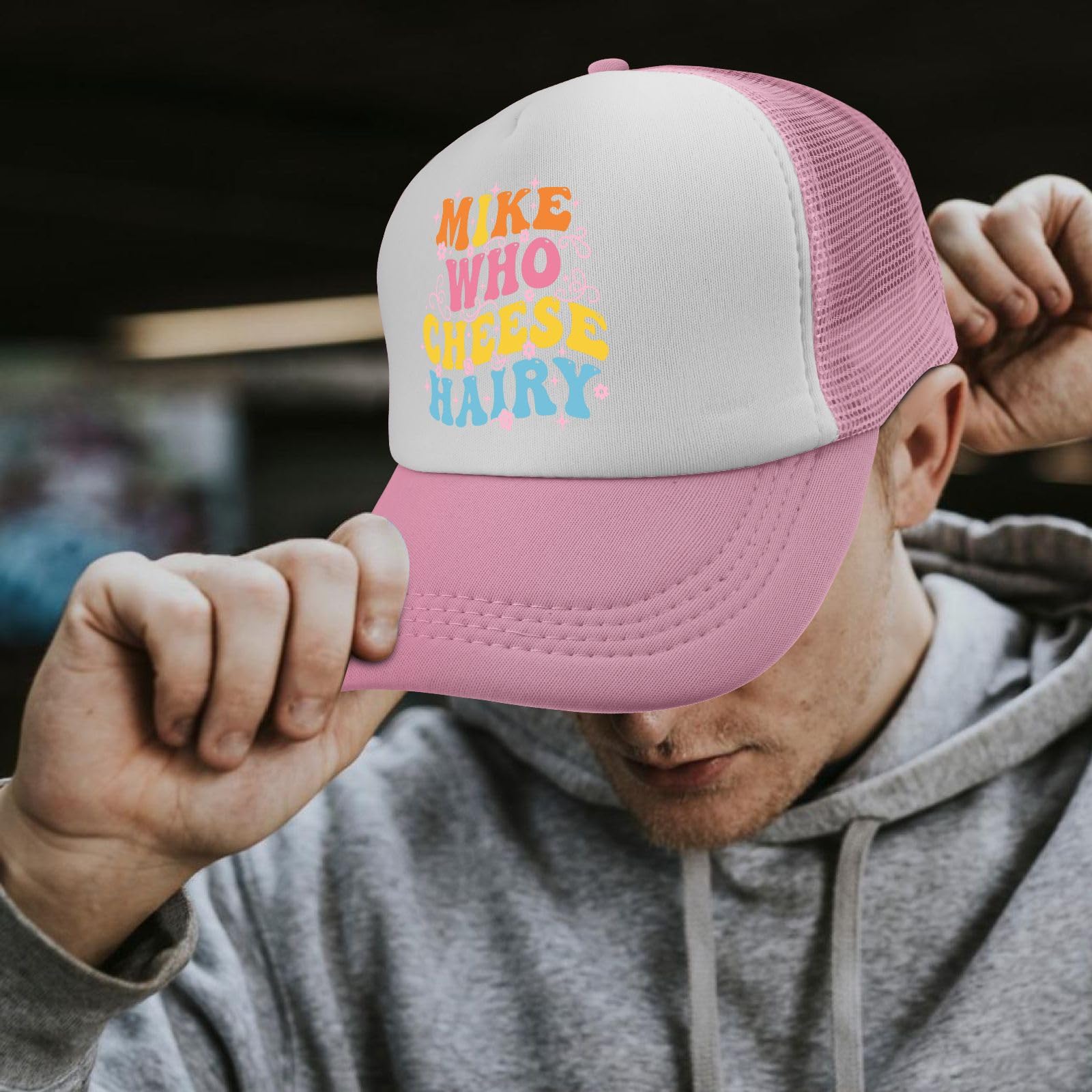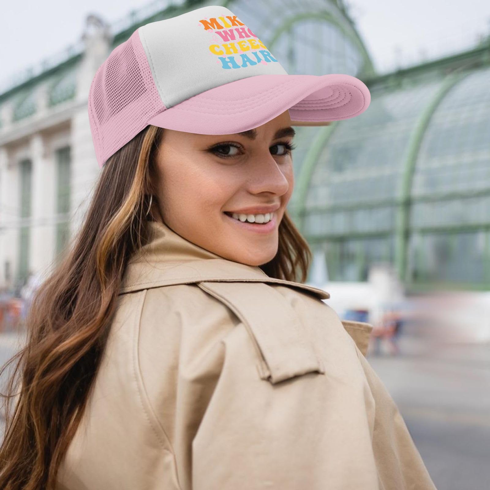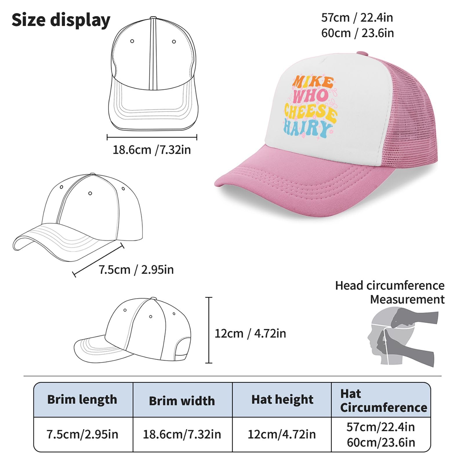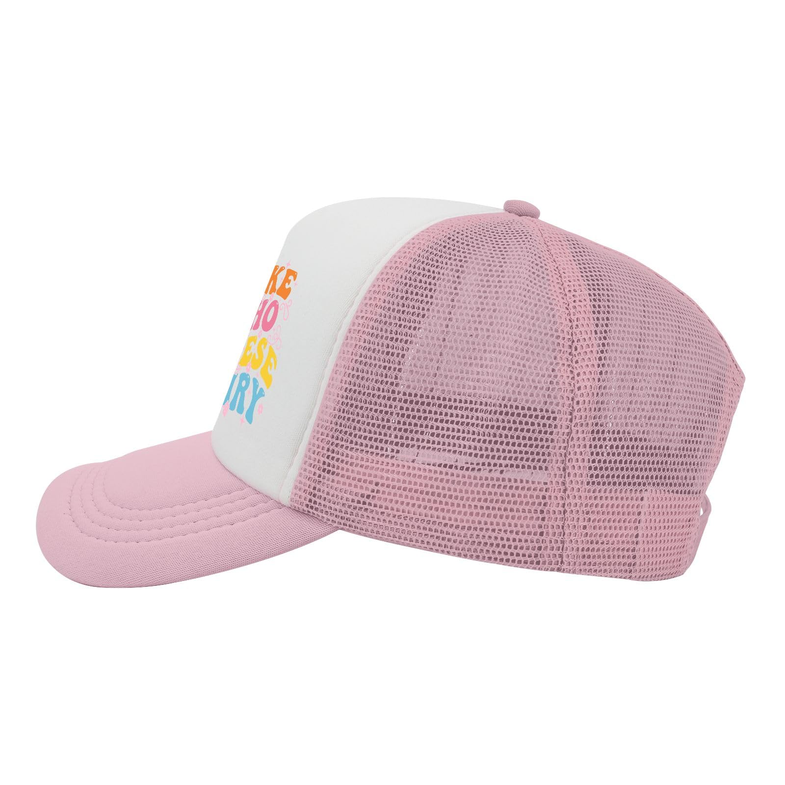 Description Stay cool and stylish with this charming trucker hat featuring an adorable elephant design against a vibrant rainbow background. The classic pink and white color combination offers versatility, while the mesh back panel provides excellent ventilation for breathable comfort on warm days. This baseball cap comes with thoughtful features including a built-in sweatband for moisture control and an adjustable buckle closure for the perfect fit. The structured design maintains its shape with a 7.32-inch brim width and 4.72-inch crown height, fitting head circumferences from 22.4 to 23.6 inches. The durable construction combines a solid front panel with breathable mesh backing, making it ideal for casual outings, sunny days, or adding a playful touch to your everyday wear. The whimsical elephant graphic with floral accents and rainbow stripes brings a cheerful element to this practical accessory, perfect for those who appreciate both function and fun in their headwear.