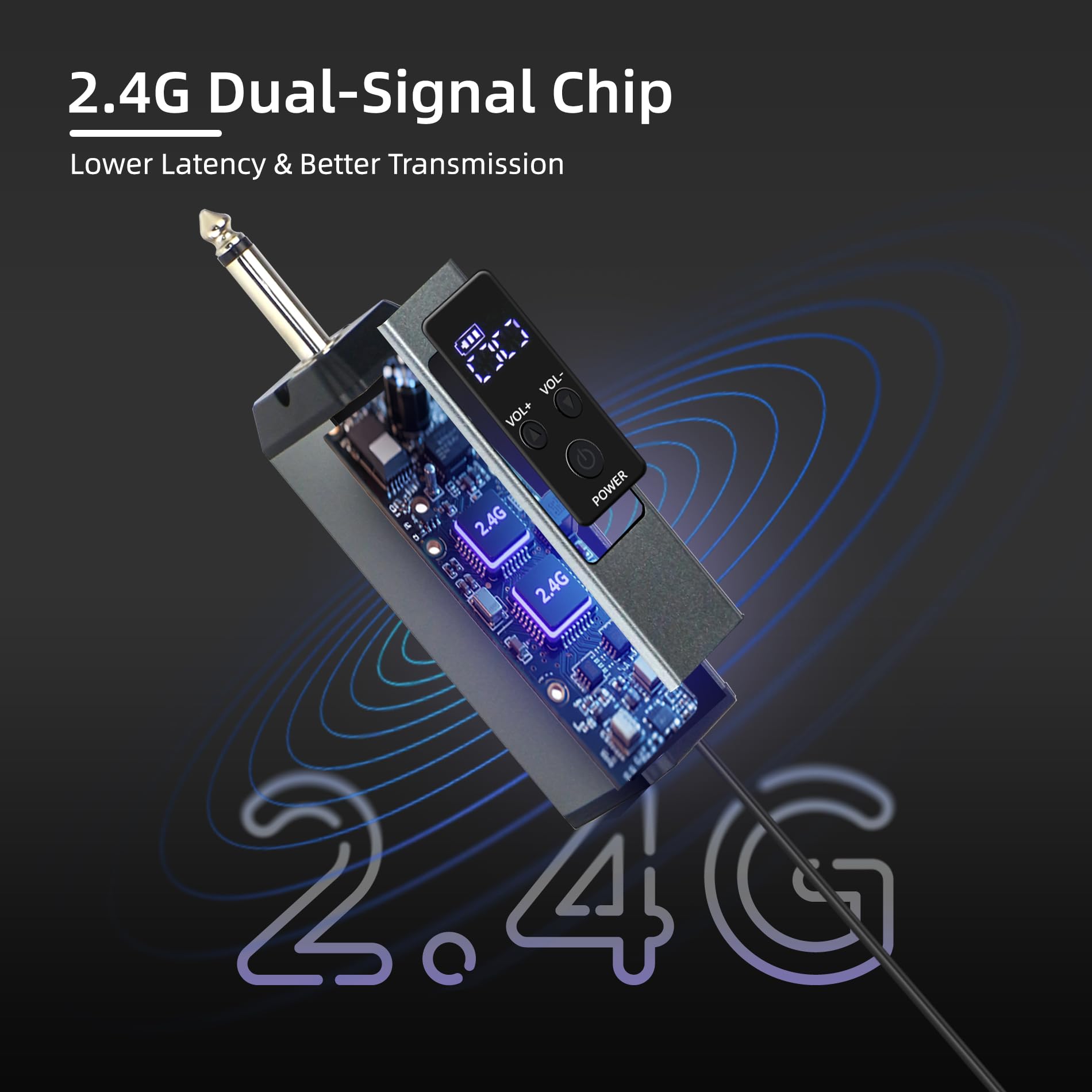 500ft Ultra-Long Range & 99 Adjustable Channels Unlike ordinary microphones with limited range, our wireless microphone system utilizes advanced 2.4G dual-chip technology to deliver a stable signal up to 150 meters (492ft). Equipped with 99 adjustable channels, it automatically avoids interference, ensuring crystal-clear audio for large stages, outdoor weddings, or church events without dropouts.