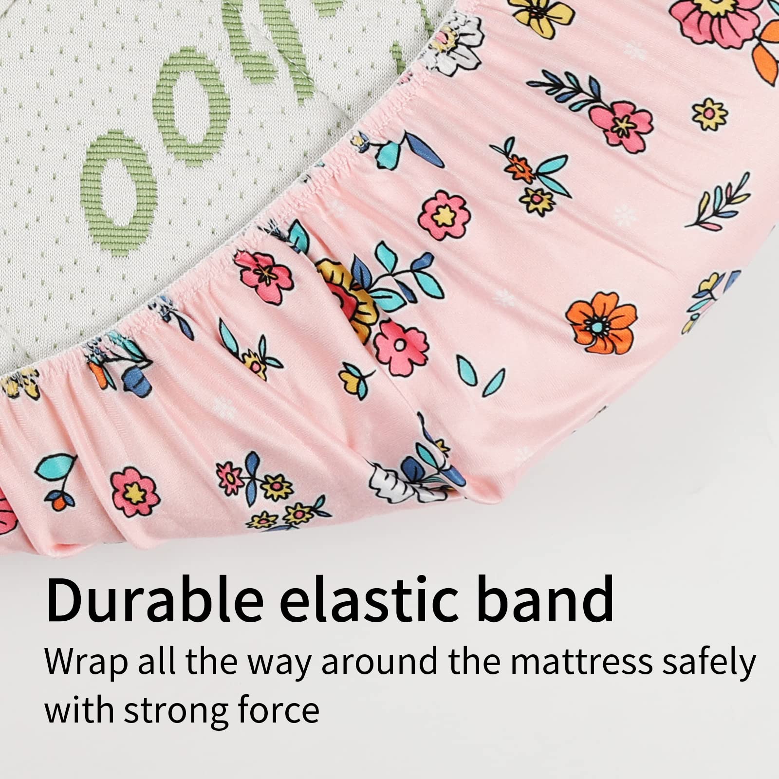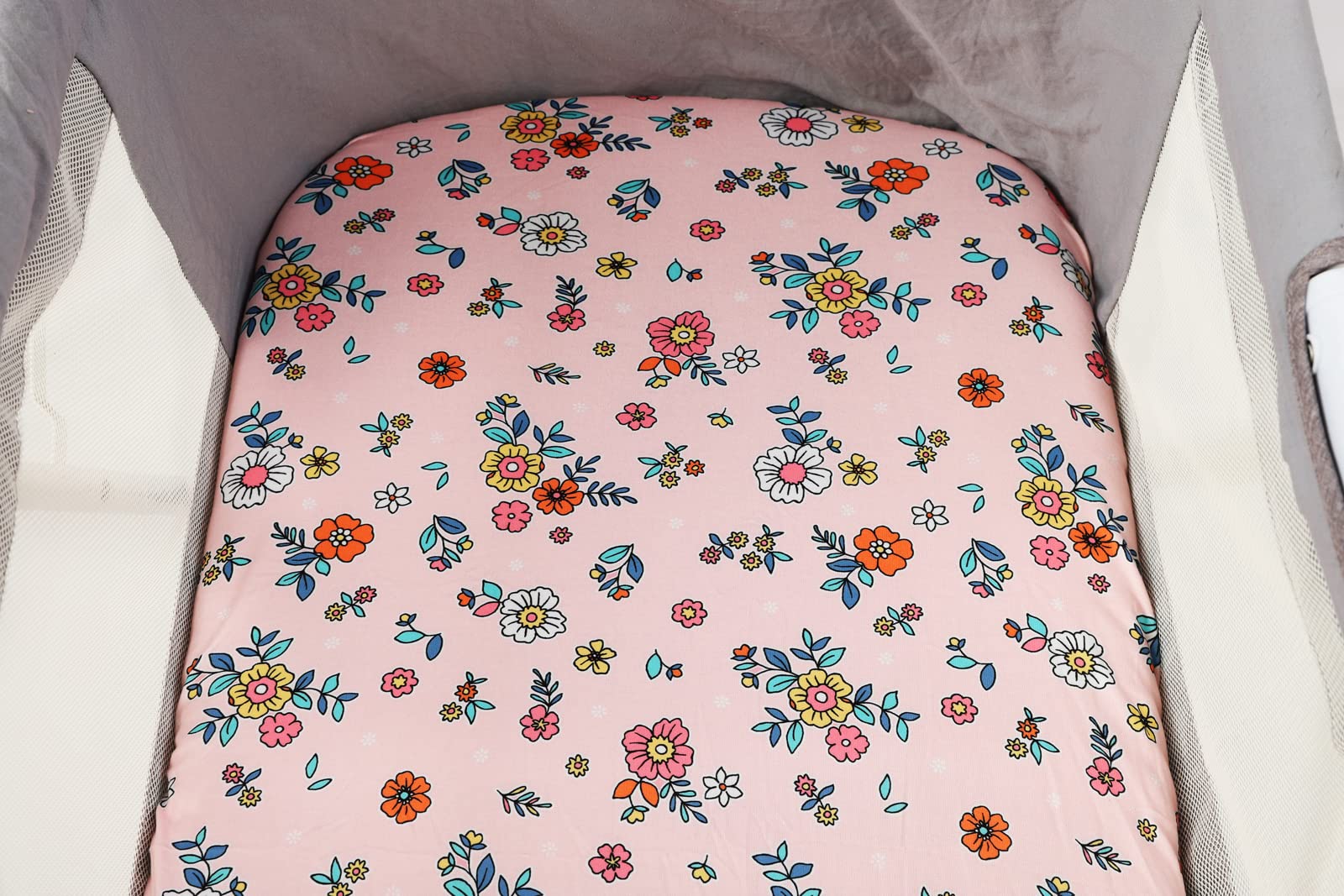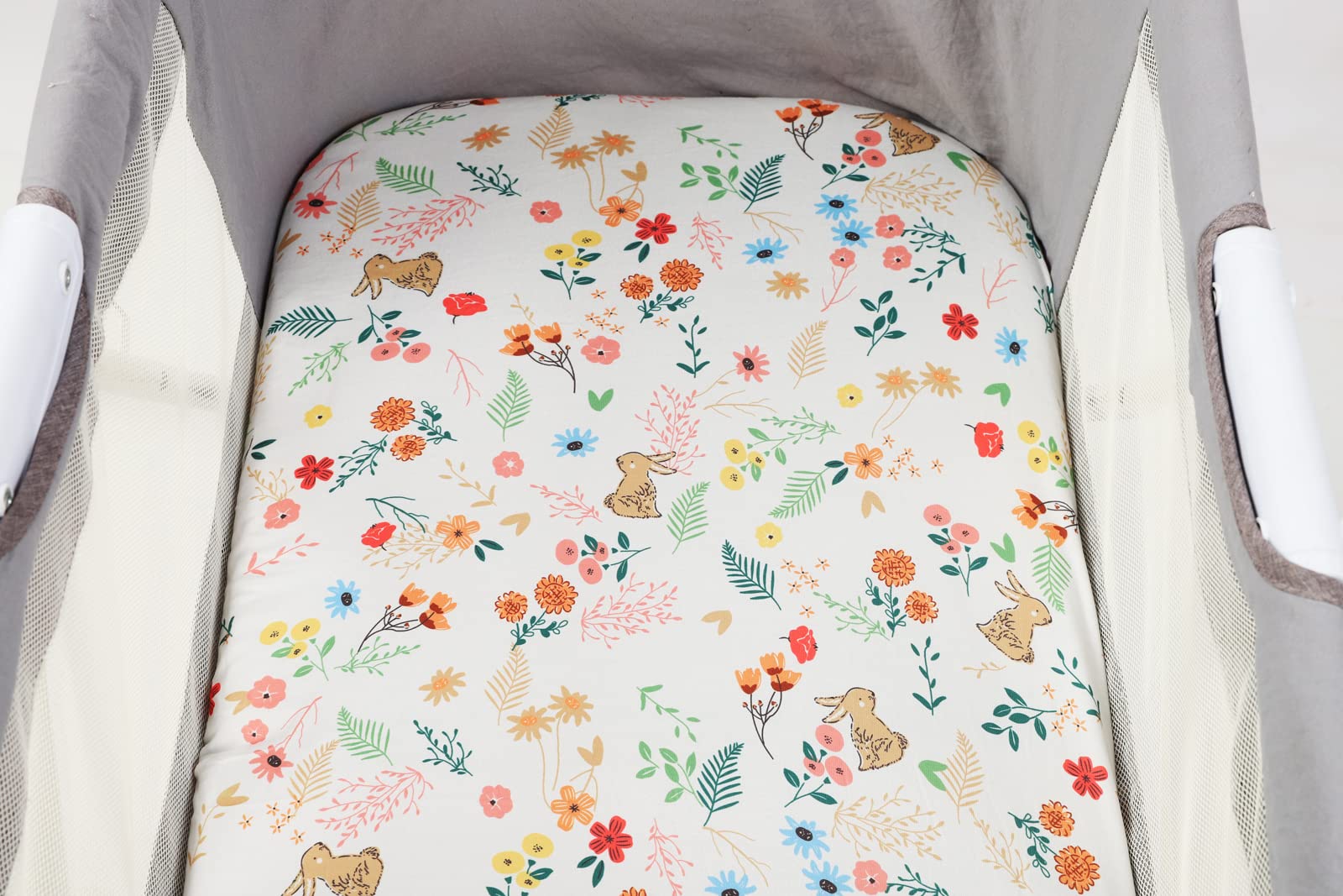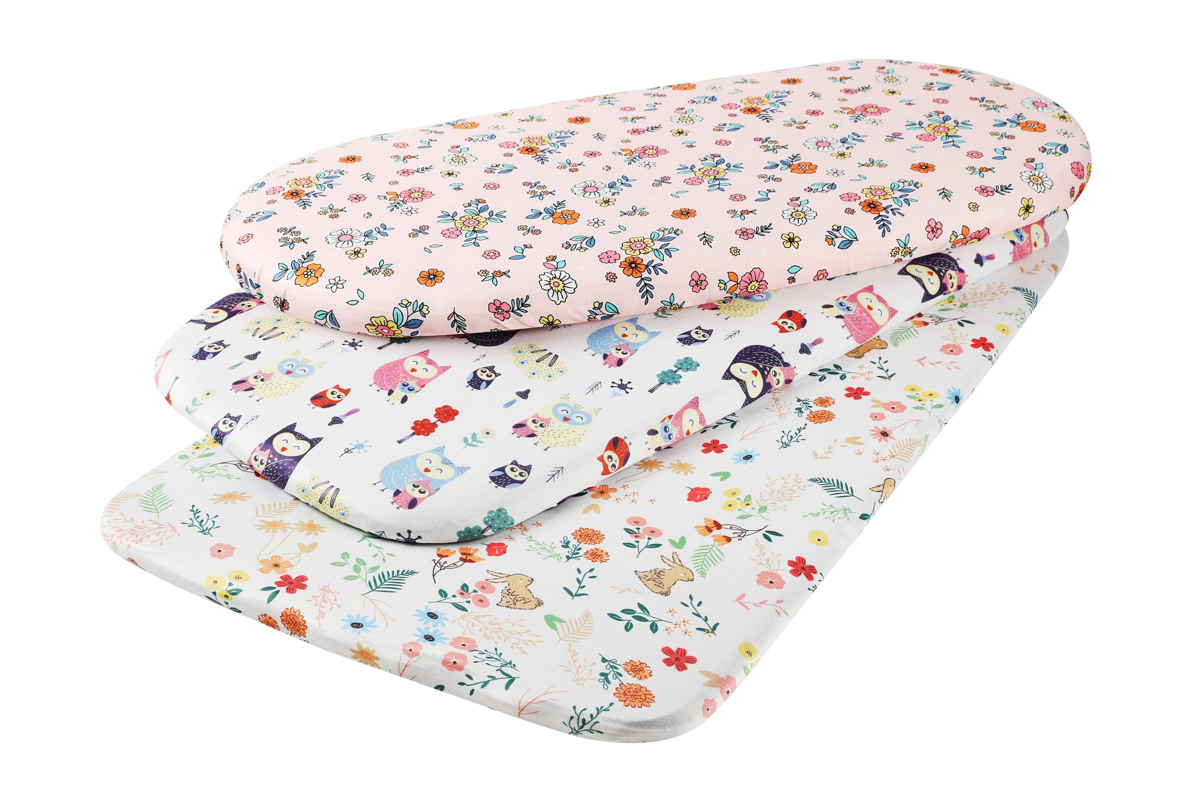 Bassinet Sheet Set 3 Pack for Baby Girl UNIVERSAL SIZE Each fitted sheet measures 16"x32"x4", this size allows you to fit our sheets on almost rectangle, hour glass and oval bassinet mattresses. Example: 31 x 15 x 1 inch oval bassinet mattresses; 29.5 x 18 x 1 inch hourglass bassinet mattresses; 32 x 16 x 2 inch rectangle bassinet mattresses and 29 x 14 x 2 inch rectangle bassinet mattresses. 360Β°ELASTIC BAND With elastic band around the edge provides a secure and snug fit, say goodbye to those sheets which are ill-fitting or bunched up because too loose or too tight. SWEET FLOWER PRINTING Printed with adorable patterns including flower, rabbit and owl, our bassinet sheets is perfect for baby girl. SOFT, SKIN-FRIENDLY FABRIC Our bassinet sheets are made of premium quality jersey material, hypoallergenic and breathable, gentle to touch, safe for baby delicate skin. It will help your little one sleep comfortably and peacefully! GREAT VALUE Our 3 pack sheets allows you to always have a clean sheet on hand. CARE TIPS: Warm gentle machine wash separately before use Don't bleach line dry only Warm iron if required Don't dry clean