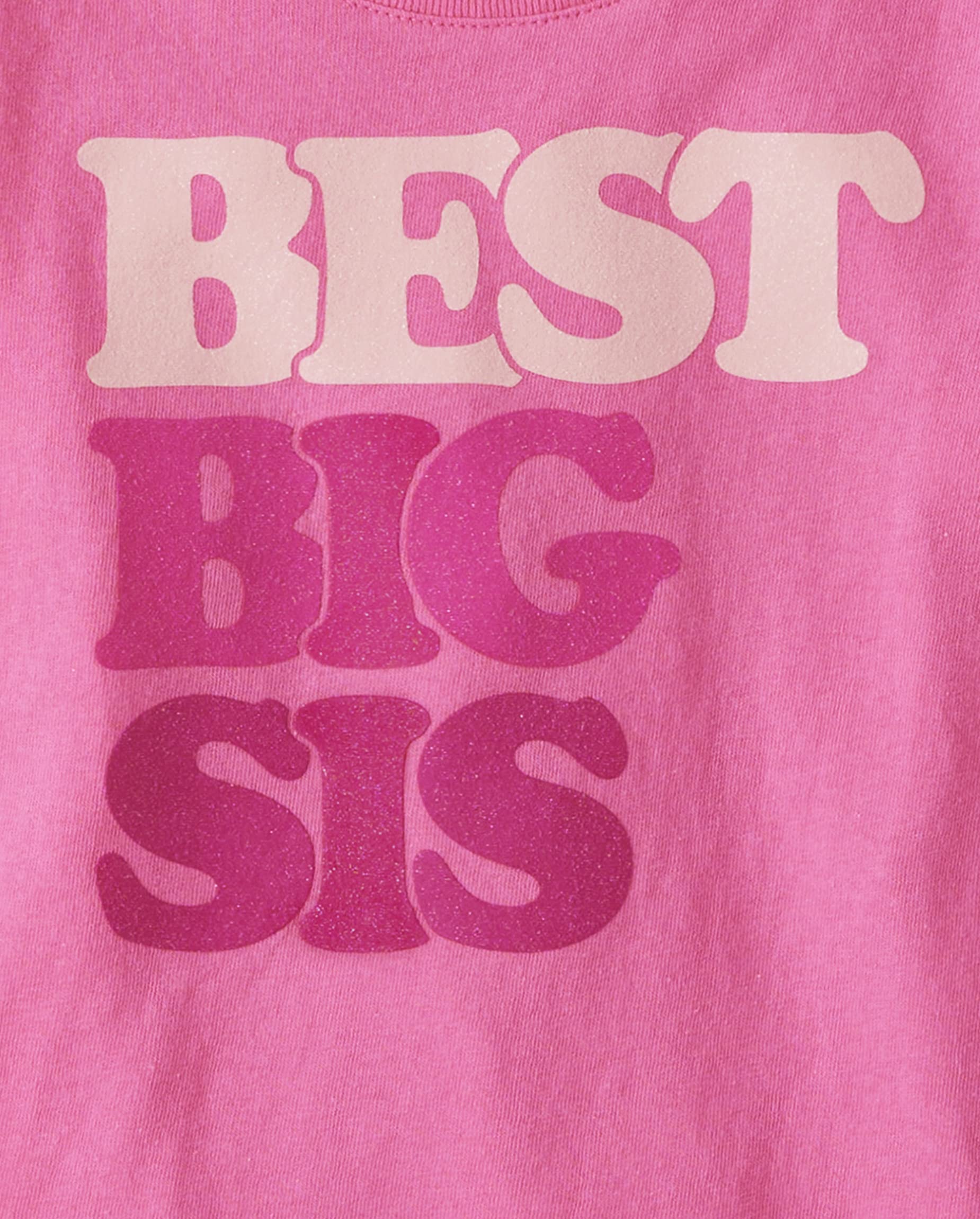 DESIGN — Features short sleeves, rib-knit crew neck and 'Best Big Sis' graphic design at front