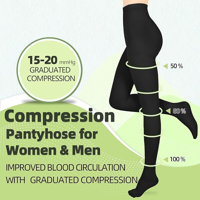 PREMIUM COMFORT: Our medical compression tights are made of 80% nylon and 20% spandex for optimal stretch and durability. These opaque closed toe medical compression tights reinforces the elasticated connection between the waist and crotch, helping to prevent waist slippage and crotch tearing, ensuring all-day comfort.