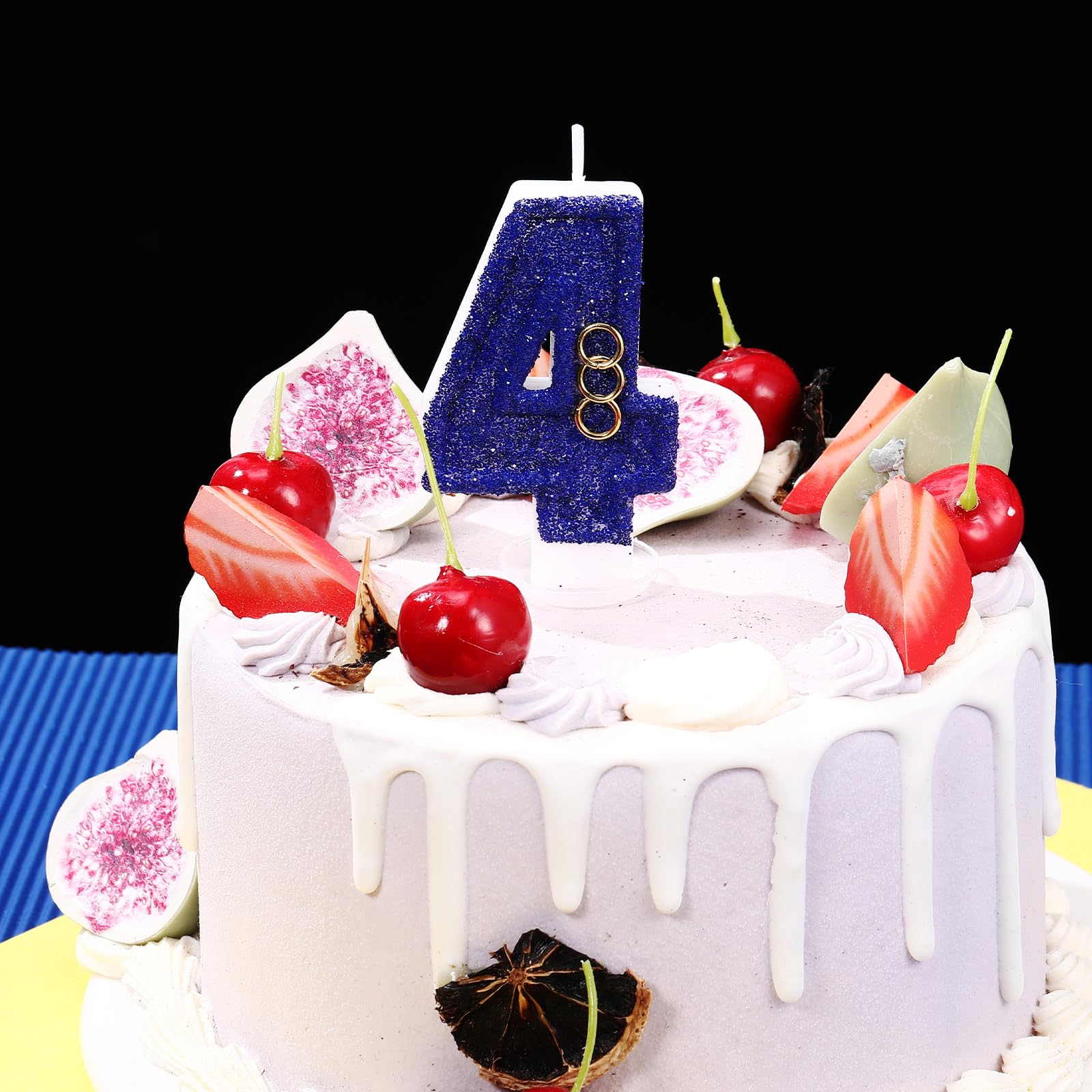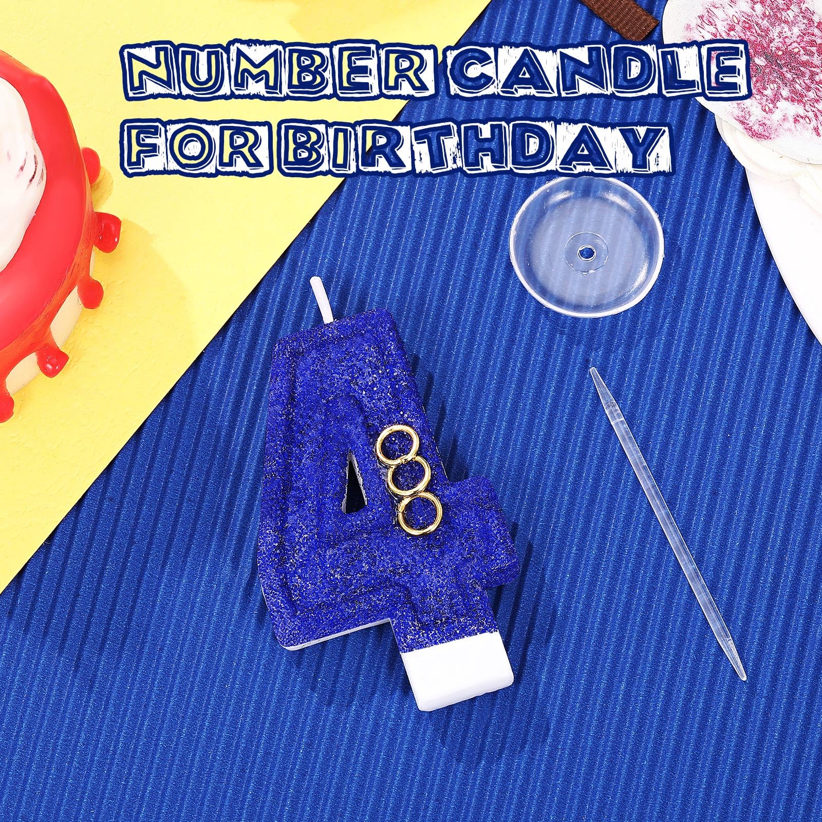 Blue gold rings Theme: embellished with a delightful blue gold rings 4th birthday decor, this blue candle stands out, adding a cute and eye catching effect to the party decor; The vivid blue and green colors provide an adorable decorative touch and enhance the sweet atmosphere of your girl's party