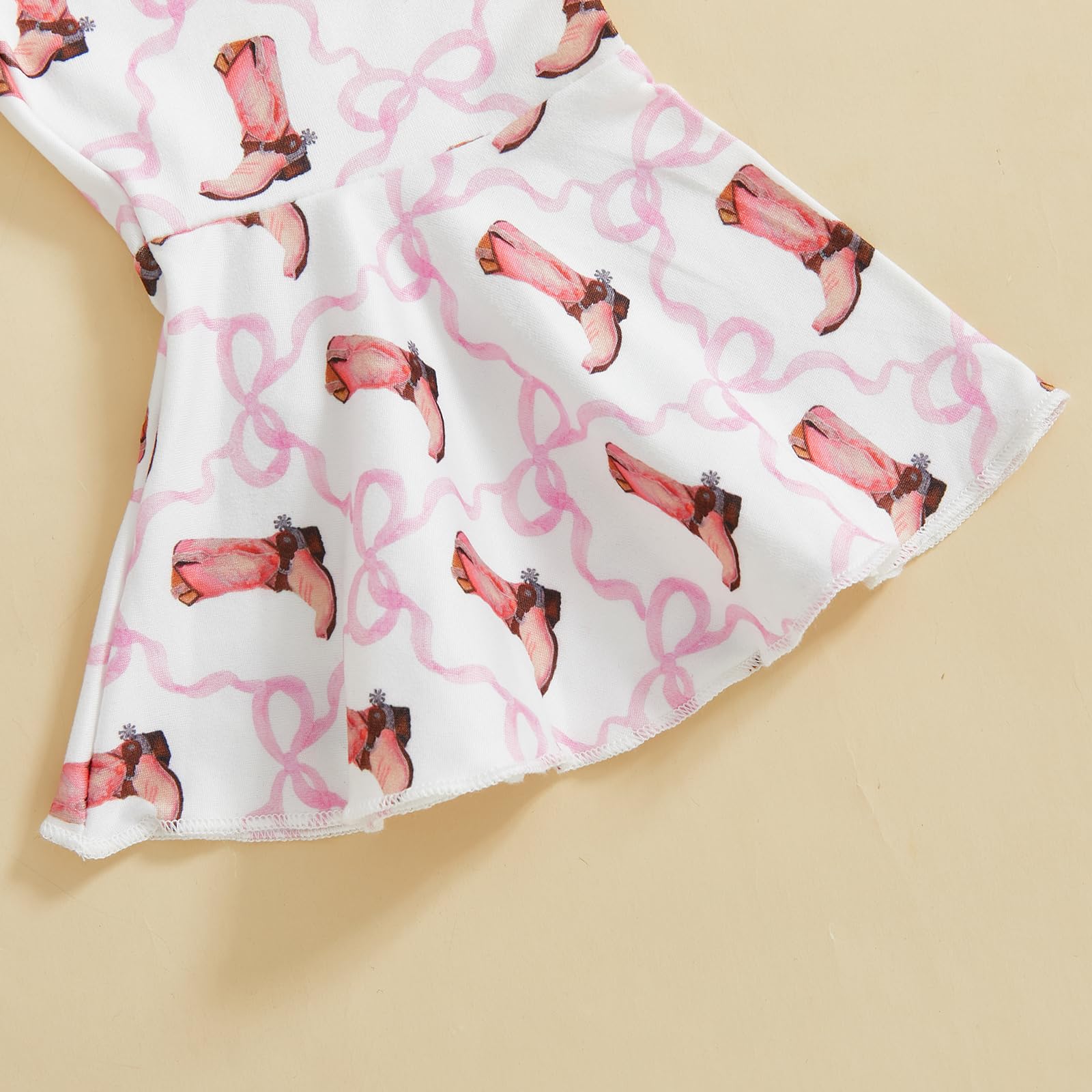 Present:Baby cowgirl clothes for girls ,western baby stuff boot and bow print; A great present for birthday, festivals, holiday, vacation or daily surprise; Super soft & fashion clothes for girls,baby cowgirl outfit ,western baby clothes bow and boot print.toddler cowgirl outfit ,cow print baby stuff pant set