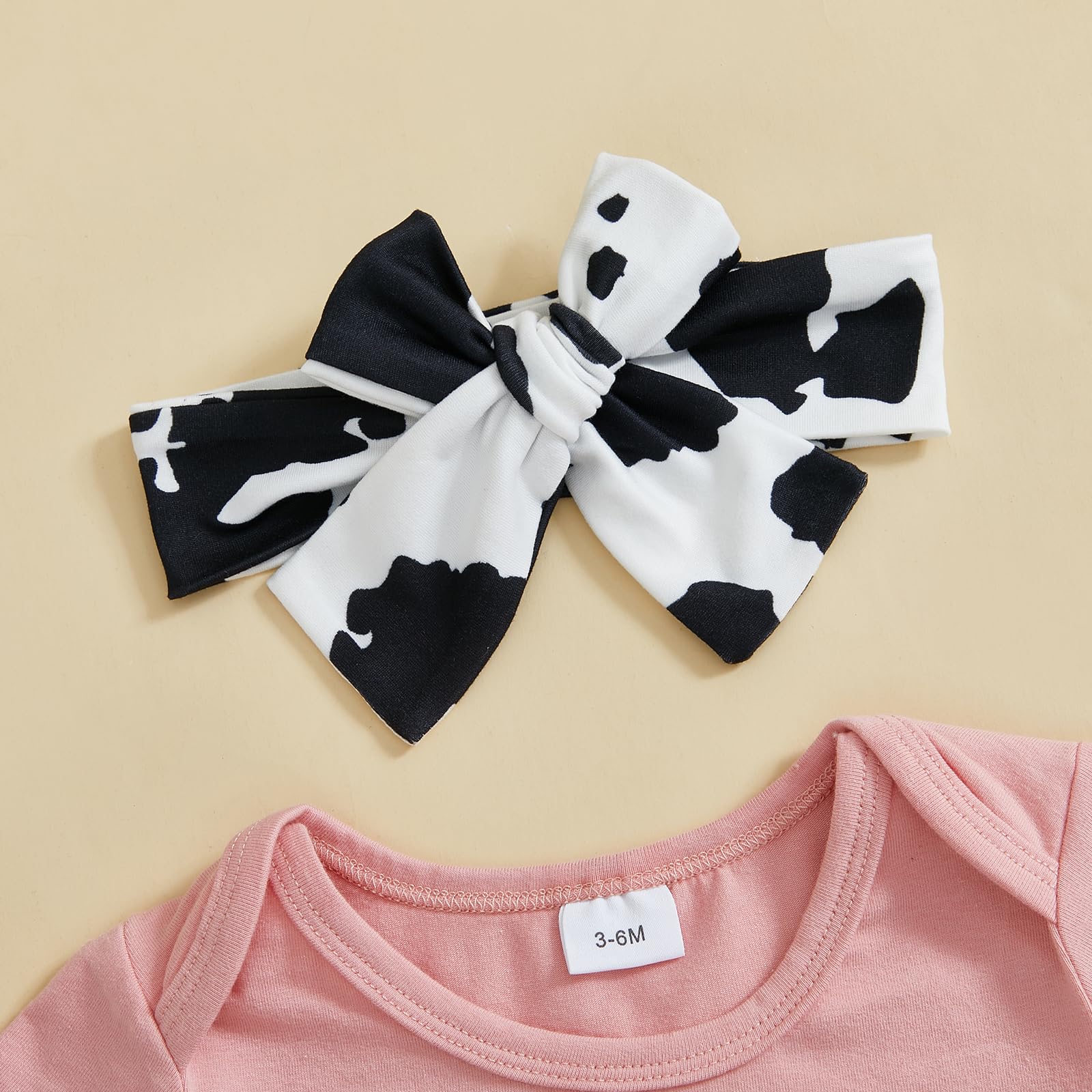 Design:Western baby girl clothes, Baby girl western outfit set; baby cowgirl outfit for newborn girl,Short sleeve round neck letter print romper; Elastic band bow boots/cow print,cute flared pants for infant girls; Skin-friendly and comfortable,cow baby stuff clothes infant baby,0-3 months baby cow girl clothes